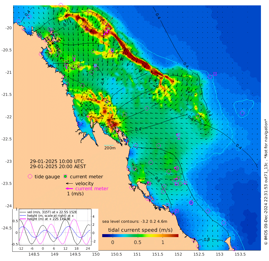 49cm/s 163T +10cm/s rms + 2cm/s 5T. Brampton I 18m 53cm/s 169T +9cm/s rms + 6cm/s 66T. Wigton I 38m 25cm/s -162T +7cm/s rms + 8cm/s 141T. Tern I 47m 65cm/s -162T +7cm/s rms + 12cm/s 54T. N Bugatti Rf 64m 73cm/s -150T +3cm/s rms + 13cm/s 178T. W Bugatti Rf 70m 30cm/s -171T +3cm/s rms + 3cm/s -130T. Creal Rf 69m 38cm/s -76T +7cm/s rms + 4cm/s 2T. North Rf 62m 39cm/s -33T +9cm/s rms + 2cm/s -56T. Cape Capricorn 26m 8cm/s -86T +5cm/s rms + 3cm/s 166T. L Musgrave I 42m 10cm/s -73T +9cm/s rms + 1cm/s -142T. Round Hill Hd 26m 7cm/s -173T +41cm/s rms + 48cm/s 116T. GBRELR 305m 26cm/s -77T +7cm/s rms + 6cm/s 123T. GBRCCH 92m 47cm/s -112T +8cm/s rms + 3cm/s -33T. GBRHIN 45m 25cm/s -97T +4cm/s rms + 2cm/s 41T. GBRHIS 46m 28cm/s -140T +16cm/s rms + 4cm/s -22T. GBROTE 59m 27cm Bell Cay 19cm Holbourne I -16cm Tern I 6cm Bugatti Rf -8cm Creal Rf 18cm White Tip I 60cm North Rf 85cm Rundle I 48cm L Musgrave I 41cm Saumarez Reef 31cm Kennedy Reef 35cm Unnamed Reef No. 2 25cm Abbot Point 17cm Bowen -8cm Tideway Reef 10cm Hayman Island -16cm Square Reef 10cm Double Bay -18cm Molle Island -3cm Cid Harbour -2cm Hook Island -13cm Border Island -11cm Haslewood Island -9cm Shute Harbour -31cm Thomas Island -15cm Credlin Reef -26cm East Repulse Island -27cm Blacksmith Island -49cm Laguna Quays -21cm Carlisle Island (Off) -17cm St. Bees Island -14cm Scawfell Island -20cm Penrith Island -47cm Mackay Outer Harbour -46cm Hay Point -43cm Prudhoe Island -5cm Middle Island (Percy Isles) 29cm Gannet Cay 28cm Elusive Reef -121cm Mcewin Islet 31cm Mumford Island 9cm Osborn Island 13cm Marquis Island 17cm Reef Point 27cm High Peak Island 58cm Port Clinton 76cm Peaked Island 69cm Karamea Bank 65cm Johnson Patch - NW 86cm Rosslyn Bay 92cm Middle Island (Keppel Isles) 91cm Port Alma 65cm Heron Island 67cm One Tree Islet 74cm Polmaise Reef 59cm Tryon Island 80cm Rock Cod Shoal 77cm Gatcombe Head 82cm Gladstone 86cm South Trees (Storm Surge) 76cm Clews Point 66cm Round Hill Head 46cm Lady Elliot Island 40cm Breaksea Spit 74cm Bundaberg (Burnett Heads) 82cm Elliot Heads 27cm Waddy Point (Fraser Island)