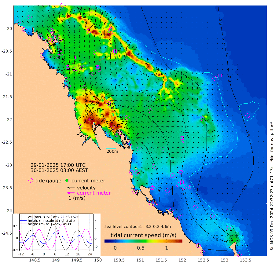 34cm/s -10T +10cm/s rms + 2cm/s 5T. Brampton I 18m 44cm/s -15T +9cm/s rms + 6cm/s 66T. Wigton I 38m 10cm/s 8T +7cm/s rms + 8cm/s 141T. Tern I 47m 43cm/s 5T +7cm/s rms + 12cm/s 54T. N Bugatti Rf 64m 63cm/s 29T +3cm/s rms + 13cm/s 178T. W Bugatti Rf 70m 25cm/s -7T +3cm/s rms + 3cm/s -130T. Creal Rf 69m 11cm/s 42T +7cm/s rms + 4cm/s 2T. North Rf 62m 15cm/s 161T +9cm/s rms + 2cm/s -56T. Cape Capricorn 26m 10cm/s -56T +5cm/s rms + 3cm/s 166T. L Musgrave I 42m 9cm/s -47T +9cm/s rms + 1cm/s -142T. Round Hill Hd 26m 5cm/s -7T +41cm/s rms + 48cm/s 116T. GBRELR 305m 25cm/s 99T +7cm/s rms + 6cm/s 123T. GBRCCH 92m 11cm/s 41T +8cm/s rms + 3cm/s -33T. GBRHIN 45m 4cm/s -12T +4cm/s rms + 2cm/s 41T. GBRHIS 46m 20cm/s 5T +16cm/s rms + 4cm/s -22T. GBROTE 59m -145cm Bell Cay -123cm Holbourne I -148cm Tern I -113cm Bugatti Rf -121cm Creal Rf -109cm White Tip I -127cm North Rf -161cm Rundle I -93cm L Musgrave I -93cm Saumarez Reef -117cm Kennedy Reef -116cm Unnamed Reef No. 2 -127cm Abbot Point -127cm Bowen -118cm Tideway Reef -129cm Hayman Island -140cm Square Reef -126cm Double Bay -127cm Molle Island -133cm Cid Harbour -116cm Hook Island -118cm Border Island -121cm Haslewood Island -124cm Shute Harbour -118cm Thomas Island -145cm Credlin Reef -135cm East Repulse Island -132cm Blacksmith Island -118cm Laguna Quays -144cm Carlisle Island (Off) -152cm St. Bees Island -142cm Scawfell Island -154cm Penrith Island -135cm Mackay Outer Harbour -144cm Hay Point -144cm Prudhoe Island -169cm Middle Island (Percy Isles) -132cm Gannet Cay -82cm Elusive Reef -104cm Mcewin Islet -205cm Mumford Island -198cm Osborn Island -205cm Marquis Island -193cm Reef Point -168cm High Peak Island -178cm Port Clinton -189cm Peaked Island -131cm Karamea Bank -156cm Johnson Patch - NW -189cm Rosslyn Bay -194cm Middle Island (Keppel Isles) -208cm Port Alma -127cm Heron Island -130cm One Tree Islet -139cm Polmaise Reef -135cm Tryon Island -146cm Rock Cod Shoal -151cm Gatcombe Head -172cm Gladstone -166cm South Trees (Storm Surge) -127cm Clews Point -117cm Round Hill Head -87cm Lady Elliot Island -79cm Breaksea Spit -126cm Bundaberg (Burnett Heads) -137cm Elliot Heads -60cm Waddy Point (Fraser Island)