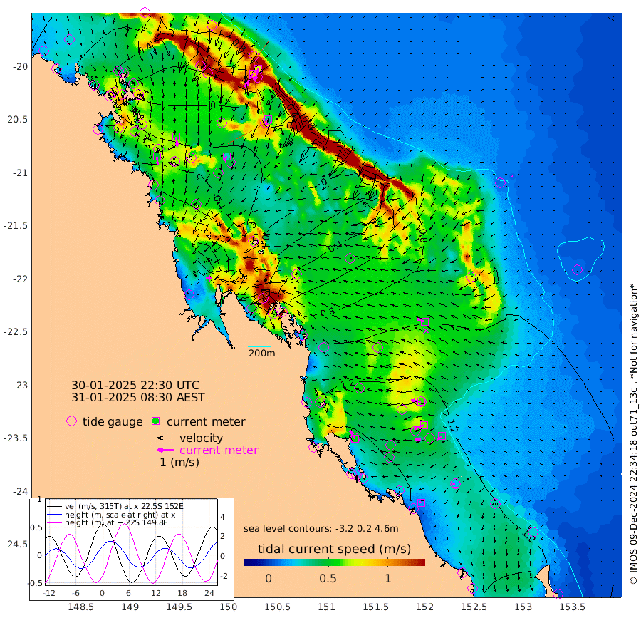 46cm/s 175T +10cm/s rms + 2cm/s 5T. Brampton I 18m 58cm/s 173T +9cm/s rms + 6cm/s 66T. Wigton I 38m 29cm/s -151T +7cm/s rms + 8cm/s 141T. Tern I 47m 75cm/s -162T +7cm/s rms + 12cm/s 54T. N Bugatti Rf 64m 91cm/s -149T +3cm/s rms + 13cm/s 178T. W Bugatti Rf 70m 36cm/s -164T +3cm/s rms + 3cm/s -130T. Creal Rf 69m 62cm/s -81T +7cm/s rms + 4cm/s 2T. North Rf 62m 56cm/s -33T +9cm/s rms + 2cm/s -56T. Cape Capricorn 26m 18cm/s -114T +5cm/s rms + 3cm/s 166T. L Musgrave I 42m 13cm/s -72T +9cm/s rms + 1cm/s -142T. Round Hill Hd 26m 7cm/s -118T +41cm/s rms + 48cm/s 116T. GBRELR 305m 51cm/s -69T +7cm/s rms + 6cm/s 123T. GBRCCH 92m 64cm/s -111T +8cm/s rms + 3cm/s -33T. GBRHIN 45m 37cm/s -95T +4cm/s rms + 2cm/s 41T. GBRHIS 46m 37cm/s -124T +16cm/s rms + 4cm/s -22T. GBROTE 59m 69cm Bell Cay 59cm Holbourne I 9cm Tern I 46cm Bugatti Rf 24cm Creal Rf 65cm White Tip I 129cm North Rf 155cm Rundle I 116cm L Musgrave I 95cm Saumarez Reef 69cm Kennedy Reef 88cm Unnamed Reef No. 2 62cm Abbot Point 52cm Bowen 27cm Tideway Reef 48cm Hayman Island 20cm Square Reef 44cm Double Bay 27cm Molle Island 21cm Cid Harbour 35cm Hook Island 12cm Border Island 11cm Haslewood Island 20cm Shute Harbour -7cm Thomas Island 15cm Credlin Reef -8cm East Repulse Island -18cm Blacksmith Island -36cm Laguna Quays -3cm Carlisle Island (Off) -21cm St. Bees Island -15cm Scawfell Island 2cm Penrith Island -31cm Mackay Outer Harbour -30cm Hay Point -17cm Prudhoe Island 28cm Middle Island (Percy Isles) 66cm Gannet Cay 92cm Elusive Reef -143cm Mcewin Islet 55cm Mumford Island 21cm Osborn Island 20cm Marquis Island 32cm Reef Point 60cm High Peak Island 112cm Port Clinton 135cm Peaked Island 141cm Karamea Bank 136cm Johnson Patch - NW 149cm Rosslyn Bay 158cm Middle Island (Keppel Isles) 146cm Port Alma 134cm Heron Island 149cm One Tree Islet 143cm Polmaise Reef 134cm Tryon Island 153cm Rock Cod Shoal 137cm Gatcombe Head 139cm Gladstone 147cm South Trees (Storm Surge) 146cm Clews Point 132cm Round Hill Head 116cm Lady Elliot Island 114cm Breaksea Spit 134cm Bundaberg (Burnett Heads) 138cm Elliot Heads 93cm Waddy Point (Fraser Island)