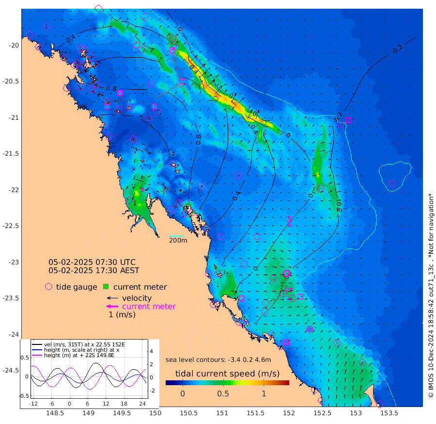 15cm/s -8T +10cm/s rms + 2cm/s 5T. Brampton I 18m 17cm/s -2T +9cm/s rms + 6cm/s 66T. Wigton I 38m 15cm/s 31T +7cm/s rms + 8cm/s 141T. Tern I 47m 21cm/s 27T +7cm/s rms + 12cm/s 54T. N Bugatti Rf 64m 24cm/s 42T +3cm/s rms + 13cm/s 178T. W Bugatti Rf 70m 14cm/s 31T +3cm/s rms + 3cm/s -130T. Creal Rf 69m 32cm/s 104T +7cm/s rms + 4cm/s 2T. North Rf 62m 26cm/s 139T +9cm/s rms + 2cm/s -56T. Cape Capricorn 26m 11cm/s 80T +5cm/s rms + 3cm/s 166T. L Musgrave I 42m 11cm/s 100T +9cm/s rms + 1cm/s -142T. Round Hill Hd 26m 4cm/s 81T +41cm/s rms + 48cm/s 116T. GBRELR 305m 18cm/s 109T +7cm/s rms + 6cm/s 123T. GBRCCH 92m 38cm/s 77T +8cm/s rms + 3cm/s -33T. GBRHIN 45m 25cm/s 87T +4cm/s rms + 2cm/s 41T. GBRHIS 46m 23cm/s 68T +16cm/s rms + 4cm/s -22T. GBROTE 59m 33cm Bell Cay 26cm Holbourne I 77cm Tern I 26cm Bugatti Rf 46cm Creal Rf 10cm White Tip I -21cm North Rf -18cm Rundle I -32cm L Musgrave I -33cm Saumarez Reef 7cm Kennedy Reef 3cm Unnamed Reef No. 2 27cm Abbot Point 33cm Bowen 41cm Tideway Reef 37cm Hayman Island 51cm Square Reef 46cm Double Bay 60cm Molle Island 53cm Cid Harbour 39cm Hook Island 49cm Border Island 59cm Haslewood Island 55cm Shute Harbour 69cm Thomas Island 66cm Credlin Reef 89cm East Repulse Island 75cm Blacksmith Island 92cm Laguna Quays 86cm Carlisle Island (Off) 86cm St. Bees Island 86cm Scawfell Island 82cm Penrith Island 100cm Mackay Outer Harbour 105cm Hay Point 94cm Prudhoe Island 72cm Middle Island (Percy Isles) 29cm Gannet Cay -23cm Elusive Reef 163cm Mcewin Islet 71cm Mumford Island 97cm Osborn Island 102cm Marquis Island 87cm Reef Point 50cm High Peak Island 24cm Port Clinton 4cm Peaked Island -26cm Karamea Bank -17cm Johnson Patch - NW 0cm Rosslyn Bay -2cm Middle Island (Keppel Isles) 10cm Port Alma -27cm Heron Island -38cm One Tree Islet -30cm Polmaise Reef -25cm Tryon Island -23cm Rock Cod Shoal -13cm Gatcombe Head -7cm Gladstone -14cm South Trees (Storm Surge) -37cm Clews Point -32cm Round Hill Head -38cm Lady Elliot Island -42cm Breaksea Spit -33cm Bundaberg (Burnett Heads) -35cm Elliot Heads -32cm Waddy Point (Fraser Island)