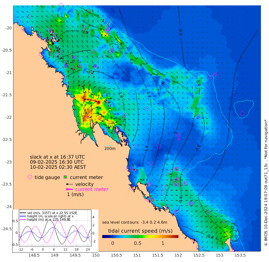 9cm/s -10T +10cm/s rms + 2cm/s 5T. Brampton I 18m 15cm/s -39T +9cm/s rms + 6cm/s 66T. Wigton I 38m 10cm/s -126T +7cm/s rms + 8cm/s 141T. Tern I 47m 16cm/s -42T +7cm/s rms + 12cm/s 54T. N Bugatti Rf 64m 27cm/s 14T +3cm/s rms + 13cm/s 178T. W Bugatti Rf 70m 12cm/s -49T +3cm/s rms + 3cm/s -130T. Creal Rf 69m 36cm/s -64T +7cm/s rms + 4cm/s 2T. North Rf 62m 19cm/s -54T +9cm/s rms + 2cm/s -56T. Cape Capricorn 26m 17cm/s -83T +5cm/s rms + 3cm/s 166T. L Musgrave I 42m 18cm/s -65T +9cm/s rms + 1cm/s -142T. Round Hill Hd 26m 6cm/s -53T +41cm/s rms + 48cm/s 116T. GBRELR 305m 6cm/s 33T +7cm/s rms + 6cm/s 123T. GBRCCH 92m 32cm/s -87T +8cm/s rms + 3cm/s -33T. GBRHIN 45m 25cm/s -86T +4cm/s rms + 2cm/s 41T. GBRHIS 46m 22cm/s -64T +16cm/s rms + 4cm/s -22T. GBROTE 59m -146cm Bell Cay -133cm Holbourne I -198cm Tern I -120cm Bugatti Rf -146cm Creal Rf -102cm White Tip I -76cm North Rf -102cm Rundle I -40cm L Musgrave I -49cm Saumarez Reef -114cm Kennedy Reef -102cm Unnamed Reef No. 2 -133cm Abbot Point -139cm Bowen -146cm Tideway Reef -144cm Hayman Island -174cm Square Reef -155cm Double Bay -160cm Molle Island -156cm Cid Harbour -143cm Hook Island -144cm Border Island -152cm Haslewood Island -158cm Shute Harbour -171cm Thomas Island -184cm Credlin Reef -193cm East Repulse Island -177cm Blacksmith Island -187cm Laguna Quays -196cm Carlisle Island (Off) -206cm St. Bees Island -182cm Scawfell Island -198cm Penrith Island -207cm Mackay Outer Harbour -219cm Hay Point -223cm Prudhoe Island -211cm Middle Island (Percy Isles) -126cm Gannet Cay -48cm Elusive Reef -233cm Mcewin Islet -223cm Mumford Island -230cm Osborn Island -238cm Marquis Island -219cm Reef Point -178cm High Peak Island -166cm Port Clinton -161cm Peaked Island -77cm Karamea Bank -108cm Johnson Patch - NW -143cm Rosslyn Bay -147cm Middle Island (Keppel Isles) -165cm Port Alma -68cm Heron Island -66cm One Tree Islet -78cm Polmaise Reef -80cm Tryon Island -86cm Rock Cod Shoal -98cm Gatcombe Head -120cm Gladstone -109cm South Trees (Storm Surge) -61cm Clews Point -55cm Round Hill Head -33cm Lady Elliot Island -23cm Breaksea Spit -63cm Bundaberg (Burnett Heads) -65cm Elliot Heads -13cm Waddy Point (Fraser Island)