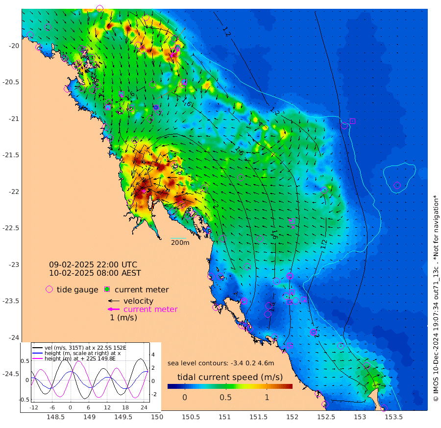 21cm/s -162T +10cm/s rms + 2cm/s 5T. Brampton I 18m 32cm/s 165T +9cm/s rms + 6cm/s 66T. Wigton I 38m 3cm/s -115T +7cm/s rms + 8cm/s 141T. Tern I 47m 36cm/s 179T +7cm/s rms + 12cm/s 54T. N Bugatti Rf 64m 64cm/s -154T +3cm/s rms + 13cm/s 178T. W Bugatti Rf 70m 18cm/s 173T +3cm/s rms + 3cm/s -130T. Creal Rf 69m 12cm/s -158T +7cm/s rms + 4cm/s 2T. North Rf 62m 15cm/s 6T +9cm/s rms + 2cm/s -56T. Cape Capricorn 26m 10cm/s 140T +5cm/s rms + 3cm/s 166T. L Musgrave I 42m 13cm/s 112T +9cm/s rms + 1cm/s -142T. Round Hill Hd 26m 2cm/s -110T +41cm/s rms + 48cm/s 116T. GBRELR 305m 32cm/s -70T +7cm/s rms + 6cm/s 123T. GBRCCH 92m 13cm/s 167T +8cm/s rms + 3cm/s -33T. GBRHIN 45m 7cm/s 109T +4cm/s rms + 2cm/s 41T. GBRHIS 46m 11cm/s 162T +16cm/s rms + 4cm/s -22T. GBROTE 59m 184cm Bell Cay 159cm Holbourne I 204cm Tern I 145cm Bugatti Rf 161cm Creal Rf 137cm White Tip I 150cm North Rf 185cm Rundle I 109cm L Musgrave I 95cm Saumarez Reef 142cm Kennedy Reef 144cm Unnamed Reef No. 2 156cm Abbot Point 158cm Bowen 156cm Tideway Reef 165cm Hayman Island 182cm Square Reef 177cm Double Bay 172cm Molle Island 159cm Cid Harbour 163cm Hook Island 148cm Border Island 150cm Haslewood Island 165cm Shute Harbour 169cm Thomas Island 191cm Credlin Reef 185cm East Repulse Island 165cm Blacksmith Island 173cm Laguna Quays 192cm Carlisle Island (Off) 196cm St. Bees Island 176cm Scawfell Island 203cm Penrith Island 200cm Mackay Outer Harbour 212cm Hay Point 226cm Prudhoe Island 236cm Middle Island (Percy Isles) 165cm Gannet Cay 103cm Elusive Reef 193cm Mcewin Islet 257cm Mumford Island 245cm Osborn Island 253cm Marquis Island 233cm Reef Point 207cm High Peak Island 228cm Port Clinton 229cm Peaked Island 152cm Karamea Bank 186cm Johnson Patch - NW 218cm Rosslyn Bay 224cm Middle Island (Keppel Isles) 235cm Port Alma 143cm Heron Island 157cm One Tree Islet 157cm Polmaise Reef 156cm Tryon Island 163cm Rock Cod Shoal 169cm Gatcombe Head 189cm Gladstone 183cm South Trees (Storm Surge) 142cm Clews Point 129cm Round Hill Head 104cm Lady Elliot Island 99cm Breaksea Spit 132cm Bundaberg (Burnett Heads) 132cm Elliot Heads 80cm Waddy Point (Fraser Island)