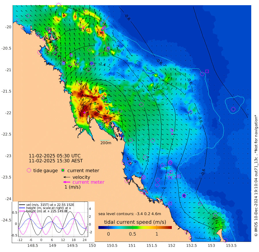 16cm/s 13T +10cm/s rms + 2cm/s 5T. Brampton I 18m 30cm/s -15T +9cm/s rms + 6cm/s 66T. Wigton I 38m 4cm/s -123T +7cm/s rms + 8cm/s 141T. Tern I 47m 33cm/s 6T +7cm/s rms + 12cm/s 54T. N Bugatti Rf 64m 48cm/s 21T +3cm/s rms + 13cm/s 178T. W Bugatti Rf 70m 14cm/s -38T +3cm/s rms + 3cm/s -130T. Creal Rf 69m 6cm/s 52T +7cm/s rms + 4cm/s 2T. North Rf 62m 14cm/s -162T +9cm/s rms + 2cm/s -56T. Cape Capricorn 26m 1cm/s -20T +5cm/s rms + 3cm/s 166T. L Musgrave I 42m 9cm/s -88T +9cm/s rms + 1cm/s -142T. Round Hill Hd 26m 1cm/s 16T +41cm/s rms + 48cm/s 116T. GBRELR 305m 22cm/s 118T +7cm/s rms + 6cm/s 123T. GBRCCH 92m 16cm/s -35T +8cm/s rms + 3cm/s -33T. GBRHIN 45m 12cm/s -85T +4cm/s rms + 2cm/s 41T. GBRHIS 46m 16cm/s -61T +16cm/s rms + 4cm/s -22T. GBROTE 59m -152cm Bell Cay -94cm Holbourne I -175cm Tern I -95cm Bugatti Rf -124cm Creal Rf -79cm White Tip I -104cm North Rf -139cm Rundle I -67cm L Musgrave I -51cm Saumarez Reef -77cm Kennedy Reef -78cm Unnamed Reef No. 2 -90cm Abbot Point -95cm Bowen -103cm Tideway Reef -108cm Hayman Island -129cm Square Reef -120cm Double Bay -103cm Molle Island -111cm Cid Harbour -104cm Hook Island -95cm Border Island -106cm Haslewood Island -116cm Shute Harbour -136cm Thomas Island -149cm Credlin Reef -146cm East Repulse Island -134cm Blacksmith Island -142cm Laguna Quays -152cm Carlisle Island (Off) -169cm St. Bees Island -151cm Scawfell Island -174cm Penrith Island -179cm Mackay Outer Harbour -195cm Hay Point -210cm Prudhoe Island -218cm Middle Island (Percy Isles) -139cm Gannet Cay -46cm Elusive Reef -209cm Mcewin Islet -232cm Mumford Island -227cm Osborn Island -239cm Marquis Island -216cm Reef Point -183cm High Peak Island -193cm Port Clinton -192cm Peaked Island -105cm Karamea Bank -147cm Johnson Patch - NW -177cm Rosslyn Bay -181cm Middle Island (Keppel Isles) -197cm Port Alma -98cm Heron Island -106cm One Tree Islet -115cm Polmaise Reef -111cm Tryon Island -114cm Rock Cod Shoal -131cm Gatcombe Head -151cm Gladstone -142cm South Trees (Storm Surge) -98cm Clews Point -87cm Round Hill Head -62cm Lady Elliot Island -56cm Breaksea Spit -89cm Bundaberg (Burnett Heads) -90cm Elliot Heads -47cm Waddy Point (Fraser Island)