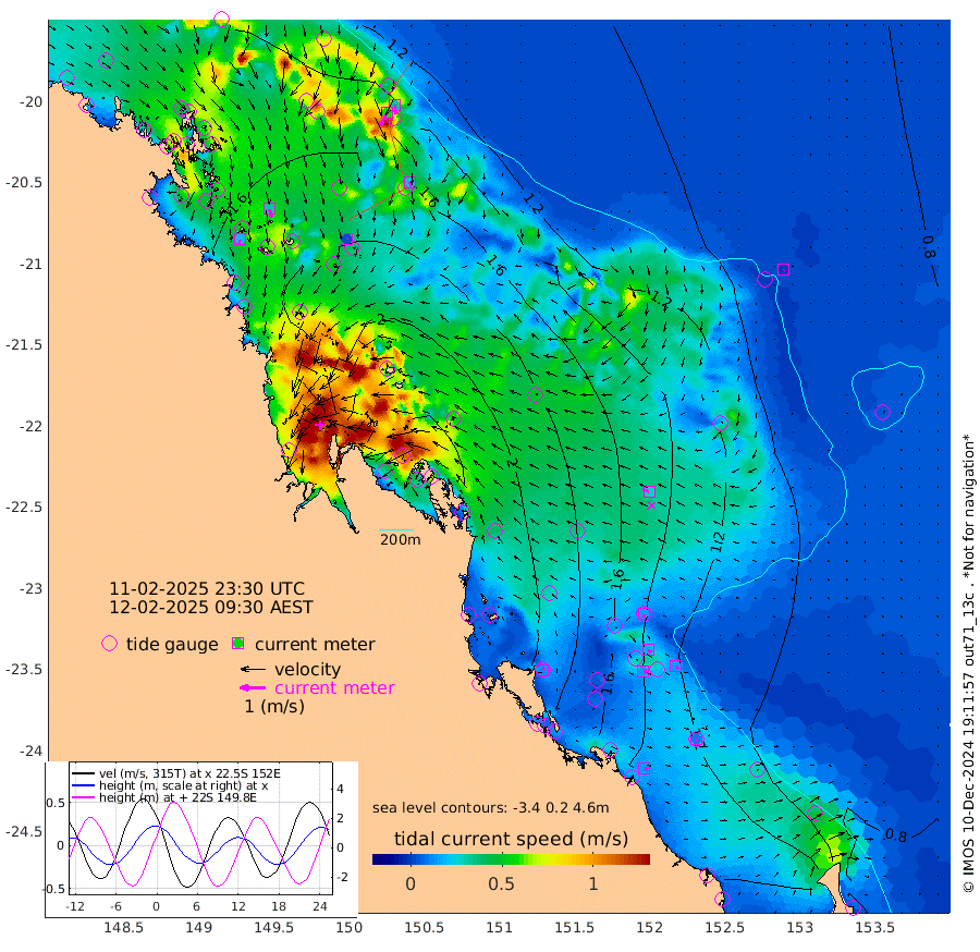 20cm/s -168T +10cm/s rms + 2cm/s 5T. Brampton I 18m 33cm/s 164T +9cm/s rms + 6cm/s 66T. Wigton I 38m 1cm/s 26T +7cm/s rms + 8cm/s 141T. Tern I 47m 33cm/s 176T +7cm/s rms + 12cm/s 54T. N Bugatti Rf 64m 58cm/s -155T +3cm/s rms + 13cm/s 178T. W Bugatti Rf 70m 18cm/s 161T +3cm/s rms + 3cm/s -130T. Creal Rf 69m 14cm/s 176T +7cm/s rms + 4cm/s 2T. North Rf 62m 12cm/s 23T +9cm/s rms + 2cm/s -56T. Cape Capricorn 26m 9cm/s 137T +5cm/s rms + 3cm/s 166T. L Musgrave I 42m 15cm/s 115T +9cm/s rms + 1cm/s -142T. Round Hill Hd 26m 1cm/s -145T +41cm/s rms + 48cm/s 116T. GBRELR 305m 27cm/s -71T +7cm/s rms + 6cm/s 123T. GBRCCH 92m 17cm/s 132T +8cm/s rms + 3cm/s -33T. GBRHIN 45m 14cm/s 99T +4cm/s rms + 2cm/s 41T. GBRHIS 46m 13cm/s 134T +16cm/s rms + 4cm/s -22T. GBROTE 59m 198cm Bell Cay 158cm Holbourne I 223cm Tern I 150cm Bugatti Rf 174cm Creal Rf 136cm White Tip I 152cm North Rf 190cm Rundle I 108cm L Musgrave I 99cm Saumarez Reef 137cm Kennedy Reef 136cm Unnamed Reef No. 2 151cm Abbot Point 154cm Bowen 161cm Tideway Reef 167cm Hayman Island 196cm Square Reef 179cm Double Bay 174cm Molle Island 164cm Cid Harbour 165cm Hook Island 151cm Border Island 157cm Haslewood Island 171cm Shute Harbour 181cm Thomas Island 203cm Credlin Reef 191cm East Repulse Island 179cm Blacksmith Island 188cm Laguna Quays 203cm Carlisle Island (Off) 216cm St. Bees Island 194cm Scawfell Island 224cm Penrith Island 222cm Mackay Outer Harbour 237cm Hay Point 256cm Prudhoe Island 268cm Middle Island (Percy Isles) 178cm Gannet Cay 95cm Elusive Reef 229cm Mcewin Islet 285cm Mumford Island 268cm Osborn Island 280cm Marquis Island 254cm Reef Point 227cm High Peak Island 246cm Port Clinton 247cm Peaked Island 151cm Karamea Bank 200cm Johnson Patch - NW 229cm Rosslyn Bay 234cm Middle Island (Keppel Isles) 251cm Port Alma 146cm Heron Island 160cm One Tree Islet 163cm Polmaise Reef 157cm Tryon Island 162cm Rock Cod Shoal 177cm Gatcombe Head 201cm Gladstone 191cm South Trees (Storm Surge) 143cm Clews Point 131cm Round Hill Head 103cm Lady Elliot Island 95cm Breaksea Spit 135cm Bundaberg (Burnett Heads) 138cm Elliot Heads 78cm Waddy Point (Fraser Island)