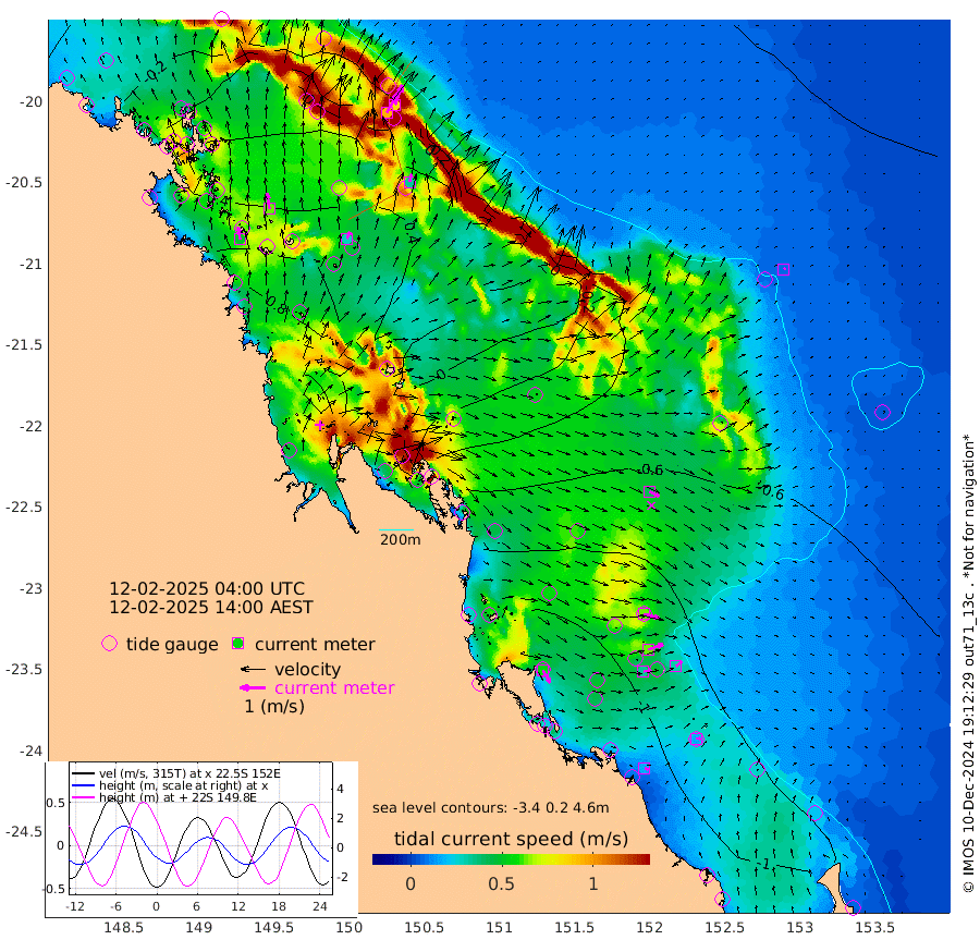 49cm/s -9T +10cm/s rms + 2cm/s 5T. Brampton I 18m 62cm/s -8T +9cm/s rms + 6cm/s 66T. Wigton I 38m 29cm/s 24T +7cm/s rms + 8cm/s 141T. Tern I 47m 84cm/s 20T +7cm/s rms + 12cm/s 54T. N Bugatti Rf 64m 94cm/s 30T +3cm/s rms + 13cm/s 178T. W Bugatti Rf 70m 32cm/s 14T +3cm/s rms + 3cm/s -130T. Creal Rf 69m 63cm/s 105T +7cm/s rms + 4cm/s 2T. North Rf 62m 57cm/s 150T +9cm/s rms + 2cm/s -56T. Cape Capricorn 26m 17cm/s 86T +5cm/s rms + 3cm/s 166T. L Musgrave I 42m 16cm/s 119T +9cm/s rms + 1cm/s -142T. Round Hill Hd 26m 7cm/s 51T +41cm/s rms + 48cm/s 116T. GBRELR 305m 43cm/s 114T +7cm/s rms + 6cm/s 123T. GBRCCH 92m 62cm/s 70T +8cm/s rms + 3cm/s -33T. GBRHIN 45m 32cm/s 83T +4cm/s rms + 2cm/s 41T. GBRHIS 46m 30cm/s 49T +16cm/s rms + 4cm/s -22T. GBROTE 59m -41cm Bell Cay -17cm Holbourne I 17cm Tern I -6cm Bugatti Rf 8cm Creal Rf -21cm White Tip I -88cm North Rf -118cm Rundle I -76cm L Musgrave I -50cm Saumarez Reef -36cm Kennedy Reef -39cm Unnamed Reef No. 2 -15cm Abbot Point -7cm Bowen 16cm Tideway Reef -5cm Hayman Island 24cm Square Reef -2cm Double Bay 28cm Molle Island 20cm Cid Harbour 8cm Hook Island 28cm Border Island 34cm Haslewood Island 20cm Shute Harbour 38cm Thomas Island 27cm Credlin Reef 53cm East Repulse Island 47cm Blacksmith Island 66cm Laguna Quays 47cm Carlisle Island (Off) 54cm St. Bees Island 41cm Scawfell Island 25cm Penrith Island 55cm Mackay Outer Harbour 51cm Hay Point 33cm Prudhoe Island -20cm Middle Island (Percy Isles) -45cm Gannet Cay -44cm Elusive Reef 135cm Mcewin Islet -52cm Mumford Island -13cm Osborn Island -5cm Marquis Island -16cm Reef Point -36cm High Peak Island -88cm Port Clinton -108cm Peaked Island -97cm Karamea Bank -105cm Johnson Patch - NW -117cm Rosslyn Bay -122cm Middle Island (Keppel Isles) -117cm Port Alma -91cm Heron Island -112cm One Tree Islet -112cm Polmaise Reef -92cm Tryon Island -104cm Rock Cod Shoal -105cm Gatcombe Head -107cm Gladstone -114cm South Trees (Storm Surge) -114cm Clews Point -94cm Round Hill Head -74cm Lady Elliot Island -75cm Breaksea Spit -97cm Bundaberg (Burnett Heads) -100cm Elliot Heads -57cm Waddy Point (Fraser Island)