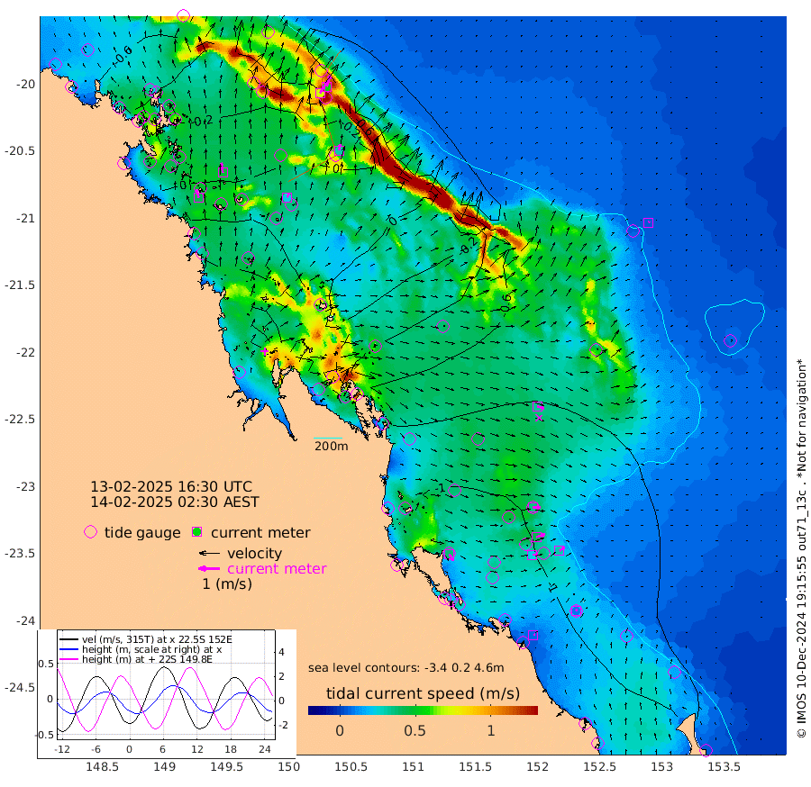 42cm/s -14T +10cm/s rms + 2cm/s 5T. Brampton I 18m 48cm/s -10T +9cm/s rms + 6cm/s 66T. Wigton I 38m 22cm/s 26T +7cm/s rms + 8cm/s 141T. Tern I 47m 56cm/s 14T +7cm/s rms + 12cm/s 54T. N Bugatti Rf 64m 73cm/s 33T +3cm/s rms + 13cm/s 178T. W Bugatti Rf 70m 30cm/s 13T +3cm/s rms + 3cm/s -130T. Creal Rf 69m 36cm/s 90T +7cm/s rms + 4cm/s 2T. North Rf 62m 37cm/s 146T +9cm/s rms + 2cm/s -56T. Cape Capricorn 26m 8cm/s 39T +5cm/s rms + 3cm/s 166T. L Musgrave I 42m 7cm/s 78T +9cm/s rms + 1cm/s -142T. Round Hill Hd 26m 5cm/s 30T +41cm/s rms + 48cm/s 116T. GBRELR 305m 33cm/s 105T +7cm/s rms + 6cm/s 123T. GBRCCH 92m 42cm/s 72T +8cm/s rms + 3cm/s -33T. GBRHIN 45m 24cm/s 81T +4cm/s rms + 2cm/s 41T. GBRHIS 46m 30cm/s 51T +16cm/s rms + 4cm/s -22T. GBROTE 59m -63cm Bell Cay -65cm Holbourne I -23cm Tern I -50cm Bugatti Rf -34cm Creal Rf -63cm White Tip I -99cm North Rf -122cm Rundle I -86cm L Musgrave I -83cm Saumarez Reef -73cm Kennedy Reef -75cm Unnamed Reef No. 2 -64cm Abbot Point -56cm Bowen -37cm Tideway Reef -53cm Hayman Island -44cm Square Reef -46cm Double Bay -36cm Molle Island -32cm Cid Harbour -41cm Hook Island -30cm Border Island -21cm Haslewood Island -30cm Shute Harbour -5cm Thomas Island -25cm Credlin Reef 5cm East Repulse Island -4cm Blacksmith Island 13cm Laguna Quays -7cm Carlisle Island (Off) -2cm St. Bees Island -12cm Scawfell Island -22cm Penrith Island 12cm Mackay Outer Harbour 11cm Hay Point -4cm Prudhoe Island -41cm Middle Island (Percy Isles) -58cm Gannet Cay -69cm Elusive Reef 102cm Mcewin Islet -77cm Mumford Island -37cm Osborn Island -32cm Marquis Island -35cm Reef Point -56cm High Peak Island -96cm Port Clinton -119cm Peaked Island -103cm Karamea Bank -113cm Johnson Patch - NW -121cm Rosslyn Bay -126cm Middle Island (Keppel Isles) -123cm Port Alma -103cm Heron Island -120cm One Tree Islet -116cm Polmaise Reef -98cm Tryon Island -110cm Rock Cod Shoal -109cm Gatcombe Head -114cm Gladstone -118cm South Trees (Storm Surge) -116cm Clews Point -102cm Round Hill Head -83cm Lady Elliot Island -79cm Breaksea Spit -107cm Bundaberg (Burnett Heads) -114cm Elliot Heads -63cm Waddy Point (Fraser Island)