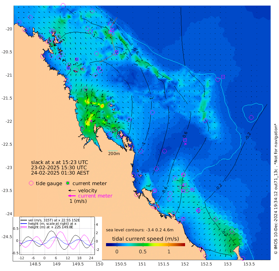 6cm/s -19T +10cm/s rms + 2cm/s 5T. Brampton I 18m 10cm/s -43T +9cm/s rms + 6cm/s 66T. Wigton I 38m 6cm/s -129T +7cm/s rms + 8cm/s 141T. Tern I 47m 11cm/s -46T +7cm/s rms + 12cm/s 54T. N Bugatti Rf 64m 21cm/s 20T +3cm/s rms + 13cm/s 178T. W Bugatti Rf 70m 8cm/s -41T +3cm/s rms + 3cm/s -130T. Creal Rf 69m 28cm/s -61T +7cm/s rms + 4cm/s 2T. North Rf 62m 16cm/s -47T +9cm/s rms + 2cm/s -56T. Cape Capricorn 26m 12cm/s -90T +5cm/s rms + 3cm/s 166T. L Musgrave I 42m 13cm/s -66T +9cm/s rms + 1cm/s -142T. Round Hill Hd 26m 4cm/s -57T +41cm/s rms + 48cm/s 116T. GBRELR 305m 5cm/s -6T +7cm/s rms + 6cm/s 123T. GBRCCH 92m 24cm/s -92T +8cm/s rms + 3cm/s -33T. GBRHIN 45m 18cm/s -87T +4cm/s rms + 2cm/s 41T. GBRHIS 46m 16cm/s -67T +16cm/s rms + 4cm/s -22T. GBROTE 59m -96cm Bell Cay -95cm Holbourne I -134cm Tern I -83cm Bugatti Rf -99cm Creal Rf -71cm White Tip I -45cm North Rf -62cm Rundle I -21cm L Musgrave I -26cm Saumarez Reef -84cm Kennedy Reef -67cm Unnamed Reef No. 2 -94cm Abbot Point -98cm Bowen -99cm Tideway Reef -104cm Hayman Island -125cm Square Reef -101cm Double Bay -117cm Molle Island -112cm Cid Harbour -98cm Hook Island -103cm Border Island -103cm Haslewood Island -110cm Shute Harbour -116cm Thomas Island -123cm Credlin Reef -125cm East Repulse Island -128cm Blacksmith Island -129cm Laguna Quays -128cm Carlisle Island (Off) -140cm St. Bees Island -135cm Scawfell Island -141cm Penrith Island -140cm Mackay Outer Harbour -147cm Hay Point -147cm Prudhoe Island -141cm Middle Island (Percy Isles) -82cm Gannet Cay -27cm Elusive Reef -156cm Mcewin Islet -167cm Mumford Island -165cm Osborn Island -165cm Marquis Island -150cm Reef Point -114cm High Peak Island -102cm Port Clinton -101cm Peaked Island -39cm Karamea Bank -67cm Johnson Patch - NW -88cm Rosslyn Bay -89cm Middle Island (Keppel Isles) -103cm Port Alma -39cm Heron Island -42cm One Tree Islet -47cm Polmaise Reef -47cm Tryon Island -43cm Rock Cod Shoal -59cm Gatcombe Head -73cm Gladstone -65cm South Trees (Storm Surge) -38cm Clews Point -30cm Round Hill Head -13cm Lady Elliot Island -10cm Breaksea Spit -35cm Bundaberg (Burnett Heads) -40cm Elliot Heads -4cm Waddy Point (Fraser Island)