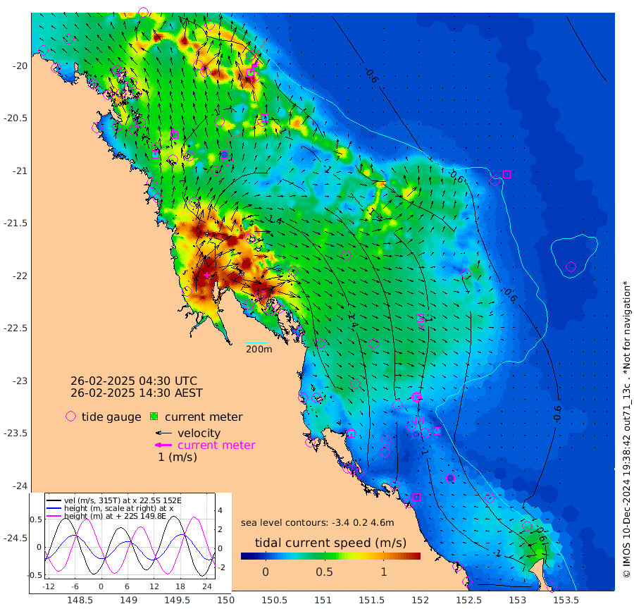 26cm/s 1T +10cm/s rms + 2cm/s 5T. Brampton I 18m 44cm/s -11T +9cm/s rms + 6cm/s 66T. Wigton I 38m 6cm/s 4T +7cm/s rms + 8cm/s 141T. Tern I 47m 49cm/s 10T +7cm/s rms + 12cm/s 54T. N Bugatti Rf 64m 63cm/s 24T +3cm/s rms + 13cm/s 178T. W Bugatti Rf 70m 21cm/s -13T +3cm/s rms + 3cm/s -130T. Creal Rf 69m 16cm/s 85T +7cm/s rms + 4cm/s 2T. North Rf 62m 22cm/s 170T +9cm/s rms + 2cm/s -56T. Cape Capricorn 26m 2cm/s -29T +5cm/s rms + 3cm/s 166T. L Musgrave I 42m 5cm/s -113T +9cm/s rms + 1cm/s -142T. Round Hill Hd 26m 2cm/s 20T +41cm/s rms + 48cm/s 116T. GBRELR 305m 28cm/s 116T +7cm/s rms + 6cm/s 123T. GBRCCH 92m 14cm/s 27T +8cm/s rms + 3cm/s -33T. GBRHIN 45m 5cm/s -60T +4cm/s rms + 2cm/s 41T. GBRHIS 46m 14cm/s -28T +16cm/s rms + 4cm/s -22T. GBROTE 59m -143cm Bell Cay -83cm Holbourne I -149cm Tern I -87cm Bugatti Rf -107cm Creal Rf -77cm White Tip I -112cm North Rf -150cm Rundle I -77cm L Musgrave I -57cm Saumarez Reef -82cm Kennedy Reef -79cm Unnamed Reef No. 2 -87cm Abbot Point -89cm Bowen -88cm Tideway Reef -102cm Hayman Island -112cm Square Reef -87cm Double Bay -92cm Molle Island -108cm Cid Harbour -86cm Hook Island -88cm Border Island -94cm Haslewood Island -101cm Shute Harbour -111cm Thomas Island -130cm Credlin Reef -125cm East Repulse Island -119cm Blacksmith Island -112cm Laguna Quays -128cm Carlisle Island (Off) -136cm St. Bees Island -133cm Scawfell Island -156cm Penrith Island -144cm Mackay Outer Harbour -158cm Hay Point -160cm Prudhoe Island -183cm Middle Island (Percy Isles) -133cm Gannet Cay -52cm Elusive Reef -147cm Mcewin Islet -222cm Mumford Island -222cm Osborn Island -227cm Marquis Island -209cm Reef Point -170cm High Peak Island -180cm Port Clinton -186cm Peaked Island -115cm Karamea Bank -149cm Johnson Patch - NW -183cm Rosslyn Bay -187cm Middle Island (Keppel Isles) -202cm Port Alma -109cm Heron Island -116cm One Tree Islet -125cm Polmaise Reef -126cm Tryon Island -128cm Rock Cod Shoal -142cm Gatcombe Head -160cm Gladstone -154cm South Trees (Storm Surge) -115cm Clews Point -101cm Round Hill Head -72cm Lady Elliot Island -67cm Breaksea Spit -103cm Bundaberg (Burnett Heads) -110cm Elliot Heads -54cm Waddy Point (Fraser Island)