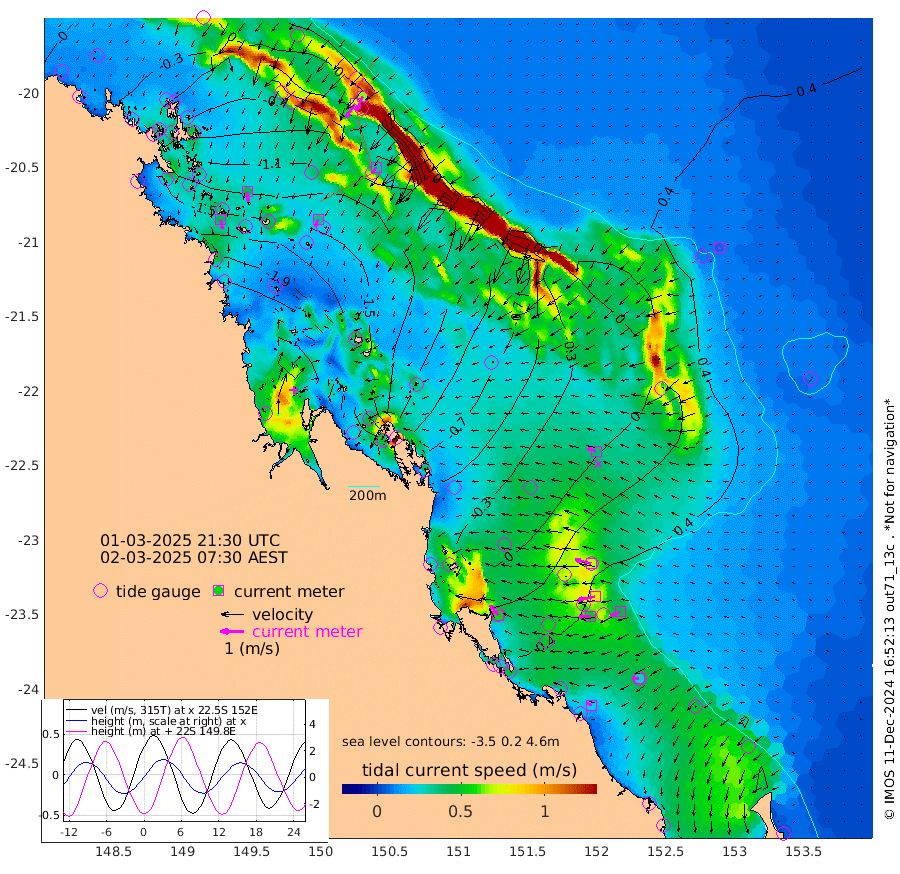 41cm/s 166T +10cm/s rms + 2cm/s 5T. Brampton I 18m 41cm/s 176T +9cm/s rms + 6cm/s 66T. Wigton I 38m 35cm/s -152T +7cm/s rms + 8cm/s 141T. Tern I 47m 67cm/s -155T +7cm/s rms + 12cm/s 54T. N Bugatti Rf 64m 71cm/s -147T +3cm/s rms + 13cm/s 178T. W Bugatti Rf 70m 33cm/s -149T +3cm/s rms + 3cm/s -130T. Creal Rf 69m 69cm/s -76T +7cm/s rms + 4cm/s 2T. North Rf 62m 56cm/s -39T +9cm/s rms + 2cm/s -56T. Cape Capricorn 26m 26cm/s -94T +5cm/s rms + 3cm/s 166T. L Musgrave I 42m 23cm/s -71T +9cm/s rms + 1cm/s -142T. Round Hill Hd 26m 7cm/s -122T +41cm/s rms + 48cm/s 116T. GBRELR 305m 38cm/s -71T +7cm/s rms + 6cm/s 123T. GBRCCH 92m 79cm/s -102T +8cm/s rms + 3cm/s -33T. GBRHIN 45m 51cm/s -93T +4cm/s rms + 2cm/s 41T. GBRHIS 46m 45cm/s -111T +16cm/s rms + 4cm/s -22T. GBROTE 59m -62cm Bell Cay -22cm Holbourne I -144cm Tern I -44cm Bugatti Rf -89cm Creal Rf -10cm White Tip I 38cm North Rf 40cm Rundle I 53cm L Musgrave I 44cm Saumarez Reef -1cm Kennedy Reef 16cm Unnamed Reef No. 2 -19cm Abbot Point -34cm Bowen -69cm Tideway Reef -50cm Hayman Island -97cm Square Reef -49cm Double Bay -77cm Molle Island -92cm Cid Harbour -58cm Hook Island -90cm Border Island -97cm Haslewood Island -88cm Shute Harbour -131cm Thomas Island -126cm Credlin Reef -152cm East Repulse Island -152cm Blacksmith Island -171cm Laguna Quays -151cm Carlisle Island (Off) -175cm St. Bees Island -156cm Scawfell Island -155cm Penrith Island -193cm Mackay Outer Harbour -204cm Hay Point -185cm Prudhoe Island -150cm Middle Island (Percy Isles) -55cm Gannet Cay 41cm Elusive Reef -348cm Mcewin Islet -134cm Mumford Island -188cm Osborn Island -201cm Marquis Island -167cm Reef Point -99cm High Peak Island -42cm Port Clinton -11cm Peaked Island 49cm Karamea Bank 16cm Johnson Patch - NW 2cm Rosslyn Bay 11cm Middle Island (Keppel Isles) -20cm Port Alma 46cm Heron Island 62cm One Tree Islet 48cm Polmaise Reef 31cm Tryon Island 49cm Rock Cod Shoal 26cm Gatcombe Head 7cm Gladstone 24cm South Trees (Storm Surge) 63cm Clews Point 52cm Round Hill Head 57cm Lady Elliot Island 59cm Breaksea Spit 53cm Bundaberg (Burnett Heads) 52cm Elliot Heads 47cm Waddy Point (Fraser Island)