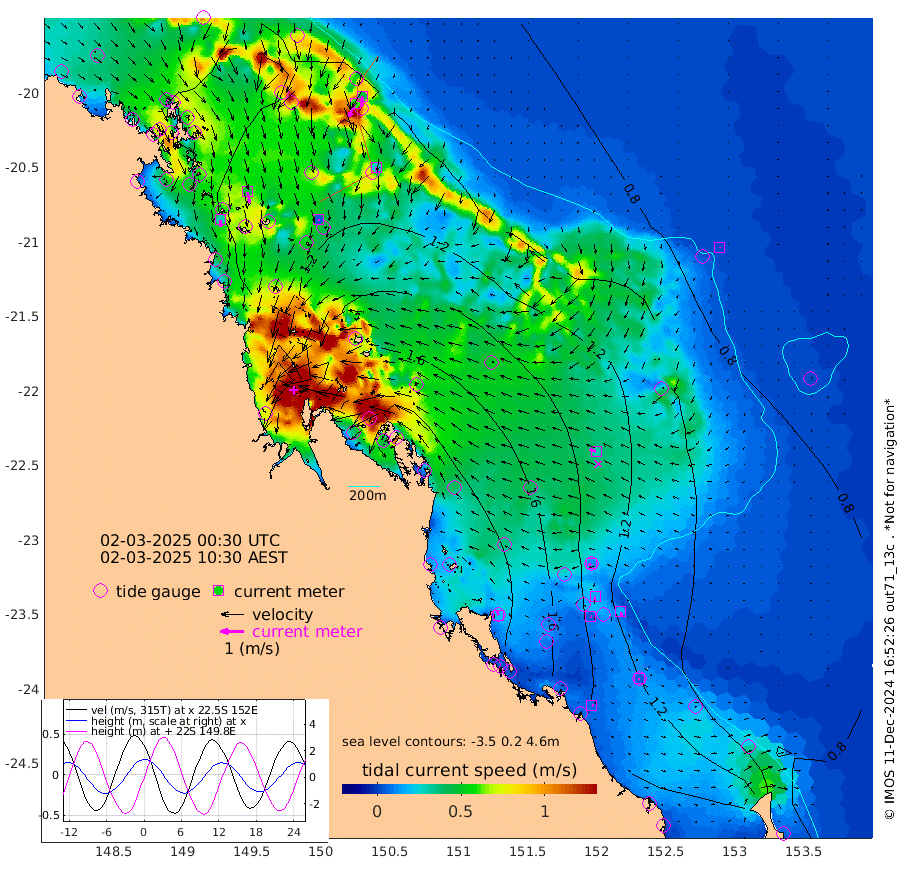 30cm/s 175T +10cm/s rms + 2cm/s 5T. Brampton I 18m 47cm/s 167T +9cm/s rms + 6cm/s 66T. Wigton I 38m 6cm/s 164T +7cm/s rms + 8cm/s 141T. Tern I 47m 45cm/s -173T +7cm/s rms + 12cm/s 54T. N Bugatti Rf 64m 62cm/s -154T +3cm/s rms + 13cm/s 178T. W Bugatti Rf 70m 26cm/s 167T +3cm/s rms + 3cm/s -130T. Creal Rf 69m 13cm/s -118T +7cm/s rms + 4cm/s 2T. North Rf 62m 20cm/s -14T +9cm/s rms + 2cm/s -56T. Cape Capricorn 26m 4cm/s -172T +5cm/s rms + 3cm/s 166T. L Musgrave I 42m 7cm/s 112T +9cm/s rms + 1cm/s -142T. Round Hill Hd 26m 3cm/s -179T +41cm/s rms + 48cm/s 116T. GBRELR 305m 29cm/s -71T +7cm/s rms + 6cm/s 123T. GBRCCH 92m 15cm/s -173T +8cm/s rms + 3cm/s -33T. GBRHIN 45m 4cm/s 126T +4cm/s rms + 2cm/s 41T. GBRHIS 46m 16cm/s 163T +16cm/s rms + 4cm/s -22T. GBROTE 59m 169cm Bell Cay 109cm Holbourne I 171cm Tern I 111cm Bugatti Rf 132cm Creal Rf 99cm White Tip I 141cm North Rf 182cm Rundle I 102cm L Musgrave I 90cm Saumarez Reef 98cm Kennedy Reef 101cm Unnamed Reef No. 2 106cm Abbot Point 108cm Bowen 109cm Tideway Reef 121cm Hayman Island 137cm Square Reef 118cm Double Bay 116cm Molle Island 122cm Cid Harbour 112cm Hook Island 104cm Border Island 116cm Haslewood Island 119cm Shute Harbour 127cm Thomas Island 152cm Credlin Reef 140cm East Repulse Island 131cm Blacksmith Island 128cm Laguna Quays 152cm Carlisle Island (Off) 161cm St. Bees Island 145cm Scawfell Island 174cm Penrith Island 161cm Mackay Outer Harbour 176cm Hay Point 186cm Prudhoe Island 217cm Middle Island (Percy Isles) 156cm Gannet Cay 74cm Elusive Reef 159cm Mcewin Islet 236cm Mumford Island 228cm Osborn Island 244cm Marquis Island 221cm Reef Point 197cm High Peak Island 218cm Port Clinton 221cm Peaked Island 145cm Karamea Bank 186cm Johnson Patch - NW 216cm Rosslyn Bay 221cm Middle Island (Keppel Isles) 240cm Port Alma 141cm Heron Island 144cm One Tree Islet 155cm Polmaise Reef 149cm Tryon Island 159cm Rock Cod Shoal 173cm Gatcombe Head 197cm Gladstone 188cm South Trees (Storm Surge) 139cm Clews Point 129cm Round Hill Head 98cm Lady Elliot Island 87cm Breaksea Spit 137cm Bundaberg (Burnett Heads) 145cm Elliot Heads 70cm Waddy Point (Fraser Island)