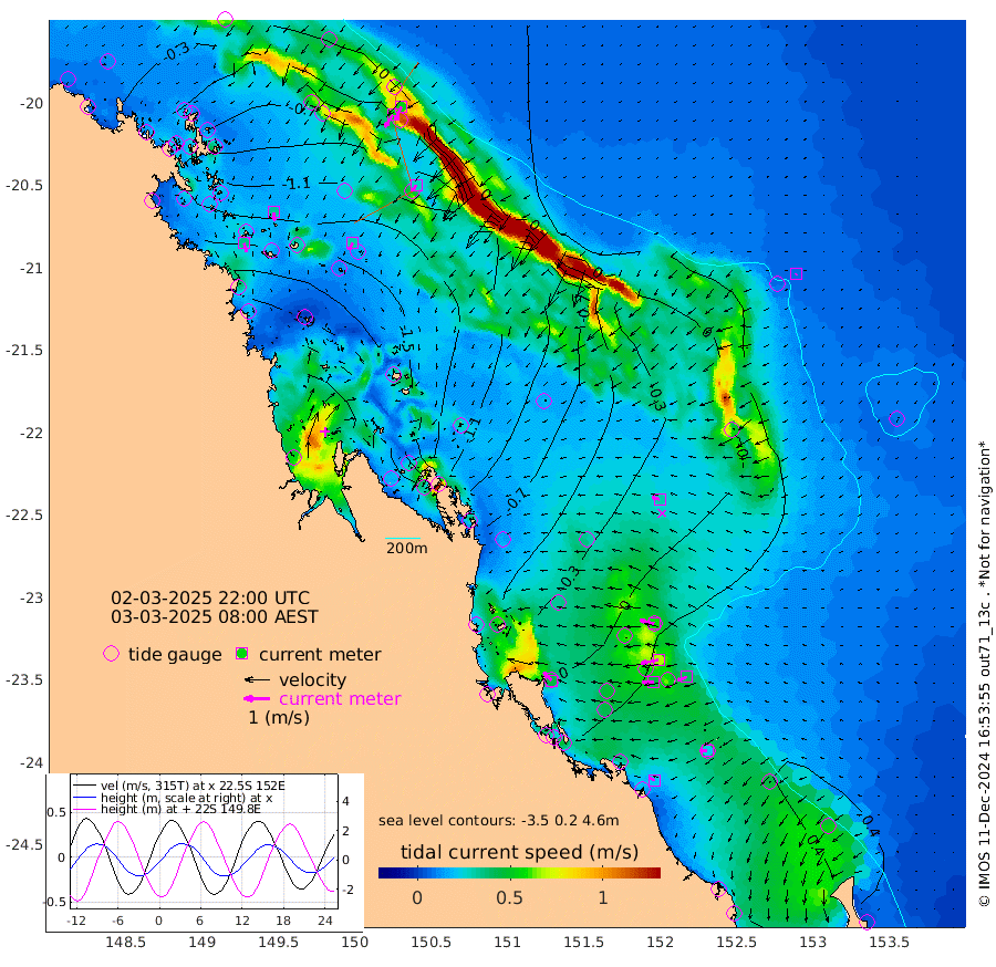 35cm/s 162T +10cm/s rms + 2cm/s 5T. Brampton I 18m 33cm/s 176T +9cm/s rms + 6cm/s 66T. Wigton I 38m 31cm/s -154T +7cm/s rms + 8cm/s 141T. Tern I 47m 55cm/s -154T +7cm/s rms + 12cm/s 54T. N Bugatti Rf 64m 57cm/s -147T +3cm/s rms + 13cm/s 178T. W Bugatti Rf 70m 28cm/s -149T +3cm/s rms + 3cm/s -130T. Creal Rf 69m 58cm/s -76T +7cm/s rms + 4cm/s 2T. North Rf 62m 46cm/s -42T +9cm/s rms + 2cm/s -56T. Cape Capricorn 26m 24cm/s -92T +5cm/s rms + 3cm/s 166T. L Musgrave I 42m 21cm/s -72T +9cm/s rms + 1cm/s -142T. Round Hill Hd 26m 6cm/s -129T +41cm/s rms + 48cm/s 116T. GBRELR 305m 29cm/s -73T +7cm/s rms + 6cm/s 123T. GBRCCH 92m 69cm/s -101T +8cm/s rms + 3cm/s -33T. GBRHIN 45m 45cm/s -93T +4cm/s rms + 2cm/s 41T. GBRHIS 46m 40cm/s -111T +16cm/s rms + 4cm/s -22T. GBROTE 59m -71cm Bell Cay -28cm Holbourne I -143cm Tern I -48cm Bugatti Rf -90cm Creal Rf -17cm White Tip I 18cm North Rf 16cm Rundle I 35cm L Musgrave I 35cm Saumarez Reef -9cm Kennedy Reef 4cm Unnamed Reef No. 2 -25cm Abbot Point -39cm Bowen -69cm Tideway Reef -54cm Hayman Island -93cm Square Reef -56cm Double Bay -79cm Molle Island -90cm Cid Harbour -62cm Hook Island -88cm Border Island -96cm Haslewood Island -89cm Shute Harbour -127cm Thomas Island -126cm Credlin Reef -150cm East Repulse Island -145cm Blacksmith Island -163cm Laguna Quays -150cm Carlisle Island (Off) -168cm St. Bees Island -150cm Scawfell Island -152cm Penrith Island -187cm Mackay Outer Harbour -198cm Hay Point -180cm Prudhoe Island -154cm Middle Island (Percy Isles) -66cm Gannet Cay 28cm Elusive Reef -332cm Mcewin Islet -139cm Mumford Island -191cm Osborn Island -205cm Marquis Island -172cm Reef Point -107cm High Peak Island -60cm Port Clinton -29cm Peaked Island 28cm Karamea Bank -3cm Johnson Patch - NW -20cm Rosslyn Bay -13cm Middle Island (Keppel Isles) -42cm Port Alma 26cm Heron Island 40cm One Tree Islet 27cm Polmaise Reef 12cm Tryon Island 25cm Rock Cod Shoal 5cm Gatcombe Head -14cm Gladstone 2cm South Trees (Storm Surge) 42cm Clews Point 32cm Round Hill Head 40cm Lady Elliot Island 42cm Breaksea Spit 33cm Bundaberg (Burnett Heads) 34cm Elliot Heads 33cm Waddy Point (Fraser Island)