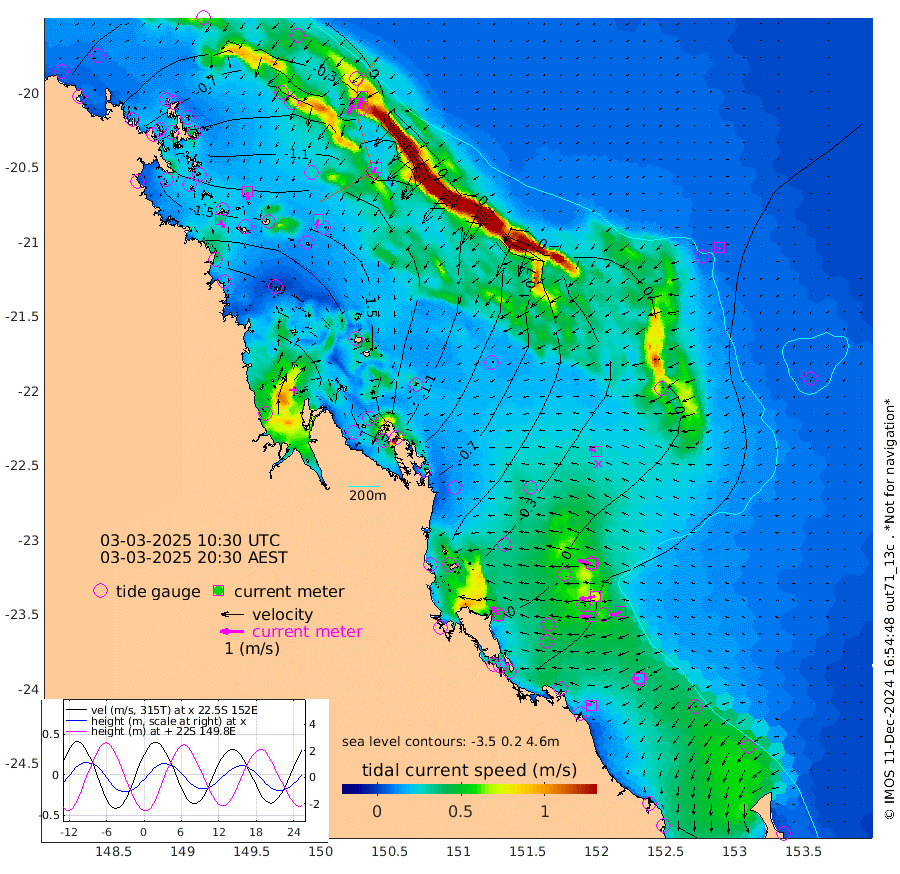 36cm/s 160T +10cm/s rms + 2cm/s 5T. Brampton I 18m 34cm/s 175T +9cm/s rms + 6cm/s 66T. Wigton I 38m 28cm/s -154T +7cm/s rms + 8cm/s 141T. Tern I 47m 51cm/s -156T +7cm/s rms + 12cm/s 54T. N Bugatti Rf 64m 53cm/s -144T +3cm/s rms + 13cm/s 178T. W Bugatti Rf 70m 25cm/s -153T +3cm/s rms + 3cm/s -130T. Creal Rf 69m 57cm/s -75T +7cm/s rms + 4cm/s 2T. North Rf 62m 47cm/s -39T +9cm/s rms + 2cm/s -56T. Cape Capricorn 26m 18cm/s -103T +5cm/s rms + 3cm/s 166T. L Musgrave I 42m 21cm/s -78T +9cm/s rms + 1cm/s -142T. Round Hill Hd 26m 7cm/s -136T +41cm/s rms + 48cm/s 116T. GBRELR 305m 30cm/s -70T +7cm/s rms + 6cm/s 123T. GBRCCH 92m 70cm/s -100T +8cm/s rms + 3cm/s -33T. GBRHIN 45m 44cm/s -92T +4cm/s rms + 2cm/s 41T. GBRHIS 46m 41cm/s -110T +16cm/s rms + 4cm/s -22T. GBROTE 59m -70cm Bell Cay -42cm Holbourne I -140cm Tern I -53cm Bugatti Rf -90cm Creal Rf -26cm White Tip I 16cm North Rf 15cm Rundle I 32cm L Musgrave I 39cm Saumarez Reef -21cm Kennedy Reef -7cm Unnamed Reef No. 2 -37cm Abbot Point -50cm Bowen -73cm Tideway Reef -64cm Hayman Island -95cm Square Reef -70cm Double Bay -104cm Molle Island -94cm Cid Harbour -73cm Hook Island -86cm Border Island -99cm Haslewood Island -94cm Shute Harbour -128cm Thomas Island -119cm Credlin Reef -150cm East Repulse Island -145cm Blacksmith Island -164cm Laguna Quays -147cm Carlisle Island (Off) -162cm St. Bees Island -147cm Scawfell Island -150cm Penrith Island -183cm Mackay Outer Harbour -192cm Hay Point -173cm Prudhoe Island -152cm Middle Island (Percy Isles) -63cm Gannet Cay 21cm Elusive Reef -313cm Mcewin Islet -132cm Mumford Island -176cm Osborn Island -189cm Marquis Island -161cm Reef Point -100cm High Peak Island -57cm Port Clinton -19cm Peaked Island 28cm Karamea Bank -5cm Johnson Patch - NW -16cm Rosslyn Bay -8cm Middle Island (Keppel Isles) -34cm Port Alma 23cm Heron Island 38cm One Tree Islet 29cm Polmaise Reef 10cm Tryon Island 26cm Rock Cod Shoal 4cm Gatcombe Head -8cm Gladstone 5cm South Trees (Storm Surge) 42cm Clews Point 33cm Round Hill Head 37cm Lady Elliot Island 35cm Breaksea Spit 32cm Bundaberg (Burnett Heads) 32cm Elliot Heads 30cm Waddy Point (Fraser Island)