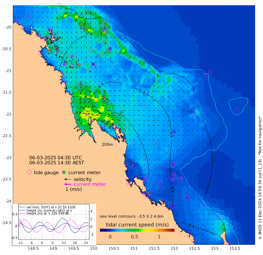 12cm/s 174T +10cm/s rms + 2cm/s 5T. Brampton I 18m 16cm/s 167T +9cm/s rms + 6cm/s 66T. Wigton I 38m 2cm/s 138T +7cm/s rms + 8cm/s 141T. Tern I 47m 17cm/s -164T +7cm/s rms + 12cm/s 54T. N Bugatti Rf 64m 16cm/s -152T +3cm/s rms + 13cm/s 178T. W Bugatti Rf 70m 6cm/s 169T +3cm/s rms + 3cm/s -130T. Creal Rf 69m 3cm/s -45T +7cm/s rms + 4cm/s 2T. North Rf 62m 8cm/s -20T +9cm/s rms + 2cm/s -56T. Cape Capricorn 26m 2cm/s -6T +5cm/s rms + 3cm/s 166T. L Musgrave I 42m 0cm/s 10T +9cm/s rms + 1cm/s -142T. Round Hill Hd 26m 1cm/s 135T +41cm/s rms + 48cm/s 116T. GBRELR 305m 5cm/s -69T +7cm/s rms + 6cm/s 123T. GBRCCH 92m 4cm/s 161T +8cm/s rms + 3cm/s -33T. GBRHIN 45m 4cm/s 96T +4cm/s rms + 2cm/s 41T. GBRHIS 46m 7cm/s 127T +16cm/s rms + 4cm/s -22T. GBROTE 59m 41cm Bell Cay 15cm Holbourne I 39cm Tern I 13cm Bugatti Rf 23cm Creal Rf 7cm White Tip I 29cm North Rf 45cm Rundle I 16cm L Musgrave I -3cm Saumarez Reef 10cm Kennedy Reef 8cm Unnamed Reef No. 2 5cm Abbot Point 7cm Bowen 5cm Tideway Reef 12cm Hayman Island 4cm Square Reef 29cm Double Bay 17cm Molle Island 9cm Cid Harbour 17cm Hook Island 5cm Border Island 13cm Haslewood Island 15cm Shute Harbour 19cm Thomas Island 20cm Credlin Reef 24cm East Repulse Island 19cm Blacksmith Island 24cm Laguna Quays 30cm Carlisle Island (Off) 33cm St. Bees Island 27cm Scawfell Island 34cm Penrith Island 39cm Mackay Outer Harbour 45cm Hay Point 44cm Prudhoe Island 73cm Middle Island (Percy Isles) 48cm Gannet Cay 2cm Elusive Reef 78cm Mcewin Islet 61cm Mumford Island 66cm Osborn Island 76cm Marquis Island 65cm Reef Point 56cm High Peak Island 69cm Port Clinton 48cm Peaked Island 28cm Karamea Bank 48cm Johnson Patch - NW 59cm Rosslyn Bay 55cm Middle Island (Keppel Isles) 72cm Port Alma 29cm Heron Island 25cm One Tree Islet 35cm Polmaise Reef 26cm Tryon Island 35cm Rock Cod Shoal 48cm Gatcombe Head 58cm Gladstone 53cm South Trees (Storm Surge) 28cm Clews Point 27cm Round Hill Head 12cm Lady Elliot Island 10cm Breaksea Spit 33cm Bundaberg (Burnett Heads) 34cm Elliot Heads 3cm Waddy Point (Fraser Island)