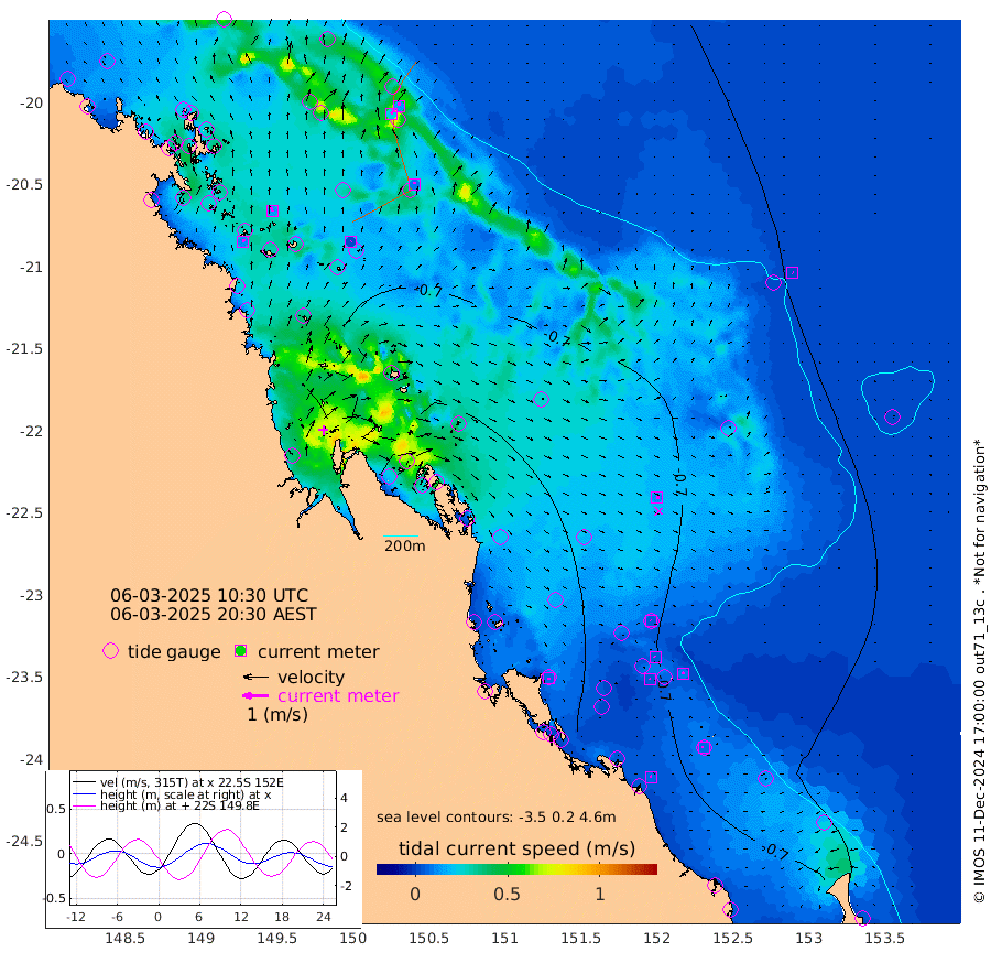 11cm/s 28T +10cm/s rms + 2cm/s 5T. Brampton I 18m 15cm/s -14T +9cm/s rms + 6cm/s 66T. Wigton I 38m 3cm/s 58T +7cm/s rms + 8cm/s 141T. Tern I 47m 13cm/s 0T +7cm/s rms + 12cm/s 54T. N Bugatti Rf 64m 23cm/s 34T +3cm/s rms + 13cm/s 178T. W Bugatti Rf 70m 8cm/s 6T +3cm/s rms + 3cm/s -130T. Creal Rf 69m 4cm/s -28T +7cm/s rms + 4cm/s 2T. North Rf 62m 6cm/s 174T +9cm/s rms + 2cm/s -56T. Cape Capricorn 26m 7cm/s -73T +5cm/s rms + 3cm/s 166T. L Musgrave I 42m 6cm/s -66T +9cm/s rms + 1cm/s -142T. Round Hill Hd 26m 1cm/s 118T +41cm/s rms + 48cm/s 116T. GBRELR 305m 12cm/s 100T +7cm/s rms + 6cm/s 123T. GBRCCH 92m 5cm/s -40T +8cm/s rms + 3cm/s -33T. GBRHIN 45m 4cm/s -63T +4cm/s rms + 2cm/s 41T. GBRHIS 46m 9cm/s -21T +16cm/s rms + 4cm/s -22T. GBROTE 59m -81cm Bell Cay -65cm Holbourne I -83cm Tern I -59cm Bugatti Rf -65cm Creal Rf -55cm White Tip I -68cm North Rf -85cm Rundle I -51cm L Musgrave I -33cm Saumarez Reef -65cm Kennedy Reef -59cm Unnamed Reef No. 2 -57cm Abbot Point -59cm Bowen -58cm Tideway Reef -62cm Hayman Island -61cm Square Reef -75cm Double Bay -74cm Molle Island -60cm Cid Harbour -69cm Hook Island -56cm Border Island -58cm Haslewood Island -64cm Shute Harbour -66cm Thomas Island -72cm Credlin Reef -74cm East Repulse Island -69cm Blacksmith Island -70cm Laguna Quays -79cm Carlisle Island (Off) -80cm St. Bees Island -64cm Scawfell Island -81cm Penrith Island -84cm Mackay Outer Harbour -90cm Hay Point -87cm Prudhoe Island -117cm Middle Island (Percy Isles) -81cm Gannet Cay -47cm Elusive Reef -116cm Mcewin Islet -106cm Mumford Island -111cm Osborn Island -118cm Marquis Island -109cm Reef Point -95cm High Peak Island -110cm Port Clinton -91cm Peaked Island -68cm Karamea Bank -91cm Johnson Patch - NW -101cm Rosslyn Bay -98cm Middle Island (Keppel Isles) -114cm Port Alma -67cm Heron Island -69cm One Tree Islet -73cm Polmaise Reef -72cm Tryon Island -76cm Rock Cod Shoal -83cm Gatcombe Head -96cm Gladstone -91cm South Trees (Storm Surge) -65cm Clews Point -61cm Round Hill Head -47cm Lady Elliot Island -50cm Breaksea Spit -69cm Bundaberg (Burnett Heads) -70cm Elliot Heads -33cm Waddy Point (Fraser Island)