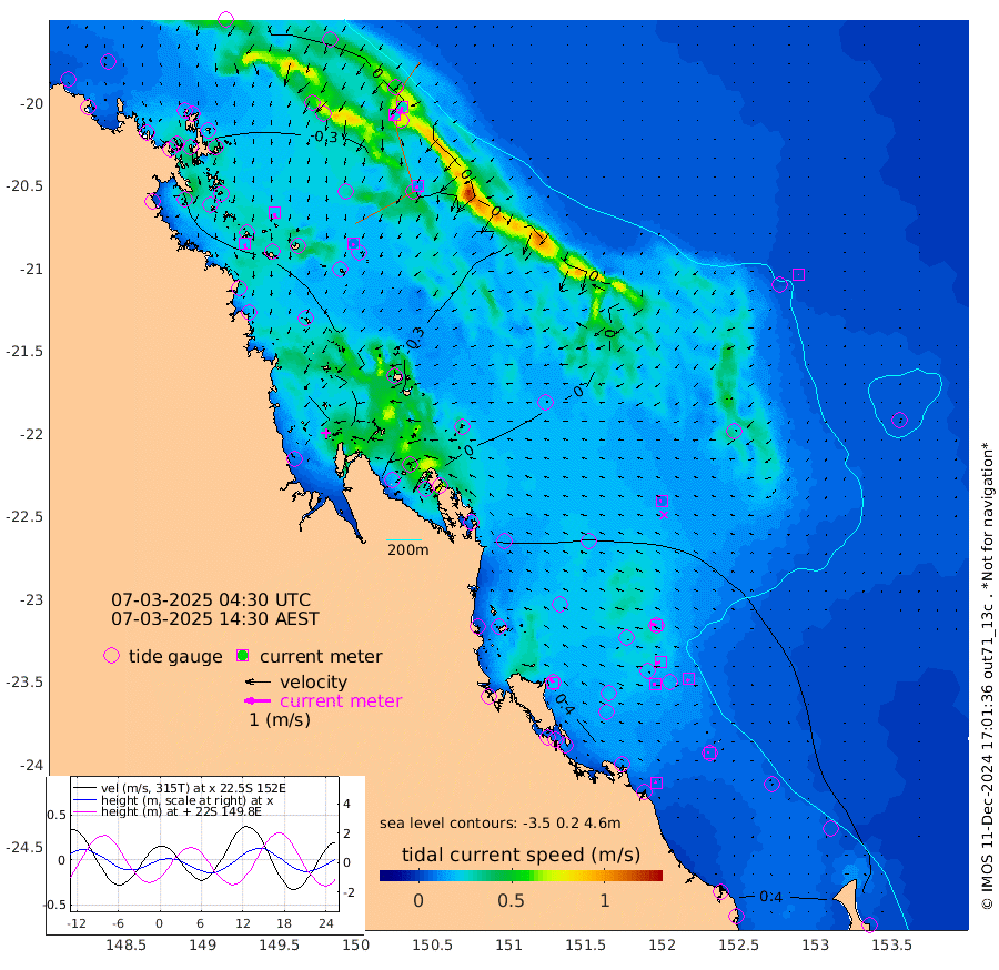 21cm/s 166T +10cm/s rms + 2cm/s 5T. Brampton I 18m 22cm/s 171T +9cm/s rms + 6cm/s 66T. Wigton I 38m 10cm/s -161T +7cm/s rms + 8cm/s 141T. Tern I 47m 28cm/s -157T +7cm/s rms + 12cm/s 54T. N Bugatti Rf 64m 26cm/s -144T +3cm/s rms + 13cm/s 178T. W Bugatti Rf 70m 11cm/s -157T +3cm/s rms + 3cm/s -130T. Creal Rf 69m 20cm/s -66T +7cm/s rms + 4cm/s 2T. North Rf 62m 21cm/s -37T +9cm/s rms + 2cm/s -56T. Cape Capricorn 26m 6cm/s -77T +5cm/s rms + 3cm/s 166T. L Musgrave I 42m 8cm/s -74T +9cm/s rms + 1cm/s -142T. Round Hill Hd 26m 2cm/s -144T +41cm/s rms + 48cm/s 116T. GBRELR 305m 9cm/s -76T +7cm/s rms + 6cm/s 123T. GBRCCH 92m 22cm/s -106T +8cm/s rms + 3cm/s -33T. GBRHIN 45m 12cm/s -93T +4cm/s rms + 2cm/s 41T. GBRHIS 46m 11cm/s -137T +16cm/s rms + 4cm/s -22T. GBROTE 59m -6cm Bell Cay -15cm Holbourne I -34cm Tern I -21cm Bugatti Rf -27cm Creal Rf -15cm White Tip I 16cm North Rf 27cm Rundle I 15cm L Musgrave I -3cm Saumarez Reef -7cm Kennedy Reef -9cm Unnamed Reef No. 2 -24cm Abbot Point -27cm Bowen -37cm Tideway Reef -28cm Hayman Island -50cm Square Reef -15cm Double Bay -33cm Molle Island -41cm Cid Harbour -24cm Hook Island -41cm Border Island -39cm Haslewood Island -36cm Shute Harbour -45cm Thomas Island -46cm Credlin Reef -52cm East Repulse Island -49cm Blacksmith Island -53cm Laguna Quays -45cm Carlisle Island (Off) -49cm St. Bees Island -48cm Scawfell Island -43cm Penrith Island -48cm Mackay Outer Harbour -47cm Hay Point -45cm Prudhoe Island -5cm Middle Island (Percy Isles) 6cm Gannet Cay 0cm Elusive Reef -48cm Mcewin Islet -16cm Mumford Island -26cm Osborn Island -23cm Marquis Island -21cm Reef Point -6cm High Peak Island 21cm Port Clinton 8cm Peaked Island 18cm Karamea Bank 25cm Johnson Patch - NW 24cm Rosslyn Bay 21cm Middle Island (Keppel Isles) 29cm Port Alma 20cm Heron Island 20cm One Tree Islet 25cm Polmaise Reef 11cm Tryon Island 22cm Rock Cod Shoal 28cm Gatcombe Head 31cm Gladstone 32cm South Trees (Storm Surge) 25cm Clews Point 23cm Round Hill Head 13cm Lady Elliot Island 14cm Breaksea Spit 29cm Bundaberg (Burnett Heads) 30cm Elliot Heads 4cm Waddy Point (Fraser Island)