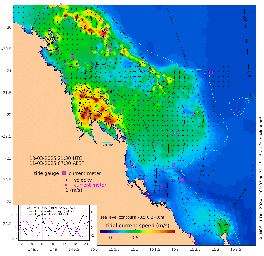 24cm/s -172T +10cm/s rms + 2cm/s 5T. Brampton I 18m 36cm/s 166T +9cm/s rms + 6cm/s 66T. Wigton I 38m 6cm/s -145T +7cm/s rms + 8cm/s 141T. Tern I 47m 42cm/s -175T +7cm/s rms + 12cm/s 54T. N Bugatti Rf 64m 69cm/s -153T +3cm/s rms + 13cm/s 178T. W Bugatti Rf 70m 21cm/s 176T +3cm/s rms + 3cm/s -130T. Creal Rf 69m 14cm/s -132T +7cm/s rms + 4cm/s 2T. North Rf 62m 18cm/s -4T +9cm/s rms + 2cm/s -56T. Cape Capricorn 26m 7cm/s 152T +5cm/s rms + 3cm/s 166T. L Musgrave I 42m 10cm/s 110T +9cm/s rms + 1cm/s -142T. Round Hill Hd 26m 2cm/s -129T +41cm/s rms + 48cm/s 116T. GBRELR 305m 32cm/s -71T +7cm/s rms + 6cm/s 123T. GBRCCH 92m 14cm/s -165T +8cm/s rms + 3cm/s -33T. GBRHIN 45m 3cm/s 133T +4cm/s rms + 2cm/s 41T. GBRHIS 46m 11cm/s 179T +16cm/s rms + 4cm/s -22T. GBROTE 59m 167cm Bell Cay 147cm Holbourne I 177cm Tern I 130cm Bugatti Rf 142cm Creal Rf 126cm White Tip I 141cm North Rf 176cm Rundle I 104cm L Musgrave I 92cm Saumarez Reef 131cm Kennedy Reef 134cm Unnamed Reef No. 2 144cm Abbot Point 144cm Bowen 140cm Tideway Reef 150cm Hayman Island 163cm Square Reef 163cm Double Bay 154cm Molle Island 138cm Cid Harbour 146cm Hook Island 129cm Border Island 131cm Haslewood Island 146cm Shute Harbour 145cm Thomas Island 166cm Credlin Reef 155cm East Repulse Island 138cm Blacksmith Island 145cm Laguna Quays 164cm Carlisle Island (Off) 166cm St. Bees Island 151cm Scawfell Island 178cm Penrith Island 169cm Mackay Outer Harbour 180cm Hay Point 197cm Prudhoe Island 211cm Middle Island (Percy Isles) 150cm Gannet Cay 96cm Elusive Reef 149cm Mcewin Islet 233cm Mumford Island 212cm Osborn Island 218cm Marquis Island 202cm Reef Point 186cm High Peak Island 212cm Port Clinton 216cm Peaked Island 143cm Karamea Bank 176cm Johnson Patch - NW 204cm Rosslyn Bay 211cm Middle Island (Keppel Isles) 219cm Port Alma 135cm Heron Island 151cm One Tree Islet 150cm Polmaise Reef 143cm Tryon Island 154cm Rock Cod Shoal 161cm Gatcombe Head 178cm Gladstone 172cm South Trees (Storm Surge) 137cm Clews Point 122cm Round Hill Head 98cm Lady Elliot Island 93cm Breaksea Spit 127cm Bundaberg (Burnett Heads) 127cm Elliot Heads 75cm Waddy Point (Fraser Island)
