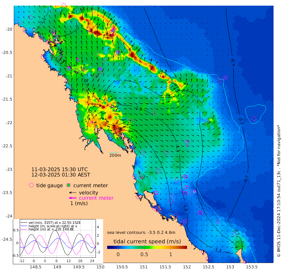 34cm/s -8T +10cm/s rms + 2cm/s 5T. Brampton I 18m 41cm/s -15T +9cm/s rms + 6cm/s 66T. Wigton I 38m 11cm/s 17T +7cm/s rms + 8cm/s 141T. Tern I 47m 50cm/s 5T +7cm/s rms + 12cm/s 54T. N Bugatti Rf 64m 73cm/s 29T +3cm/s rms + 13cm/s 178T. W Bugatti Rf 70m 26cm/s 2T +3cm/s rms + 3cm/s -130T. Creal Rf 69m 14cm/s 60T +7cm/s rms + 4cm/s 2T. North Rf 62m 22cm/s 161T +9cm/s rms + 2cm/s -56T. Cape Capricorn 26m 5cm/s -31T +5cm/s rms + 3cm/s 166T. L Musgrave I 42m 5cm/s -47T +9cm/s rms + 1cm/s -142T. Round Hill Hd 26m 4cm/s 6T +41cm/s rms + 48cm/s 116T. GBRELR 305m 27cm/s 103T +7cm/s rms + 6cm/s 123T. GBRCCH 92m 17cm/s 58T +8cm/s rms + 3cm/s -33T. GBRHIN 45m 5cm/s 53T +4cm/s rms + 2cm/s 41T. GBRHIS 46m 20cm/s 14T +16cm/s rms + 4cm/s -22T. GBROTE 59m -123cm Bell Cay -117cm Holbourne I -121cm Tern I -95cm Bugatti Rf -99cm Creal Rf -95cm White Tip I -112cm North Rf -145cm Rundle I -82cm L Musgrave I -79cm Saumarez Reef -112cm Kennedy Reef -106cm Unnamed Reef No. 2 -113cm Abbot Point -110cm Bowen -100cm Tideway Reef -112cm Hayman Island -116cm Square Reef -118cm Double Bay -104cm Molle Island -97cm Cid Harbour -107cm Hook Island -91cm Border Island -88cm Haslewood Island -102cm Shute Harbour -92cm Thomas Island -112cm Credlin Reef -96cm East Repulse Island -86cm Blacksmith Island -86cm Laguna Quays -106cm Carlisle Island (Off) -105cm St. Bees Island -94cm Scawfell Island -117cm Penrith Island -101cm Mackay Outer Harbour -109cm Hay Point -127cm Prudhoe Island -147cm Middle Island (Percy Isles) -111cm Gannet Cay -74cm Elusive Reef -61cm Mcewin Islet -173cm Mumford Island -146cm Osborn Island -147cm Marquis Island -139cm Reef Point -135cm High Peak Island -165cm Port Clinton -175cm Peaked Island -116cm Karamea Bank -140cm Johnson Patch - NW -165cm Rosslyn Bay -171cm Middle Island (Keppel Isles) -179cm Port Alma -108cm Heron Island -123cm One Tree Islet -125cm Polmaise Reef -110cm Tryon Island -125cm Rock Cod Shoal -131cm Gatcombe Head -147cm Gladstone -143cm South Trees (Storm Surge) -116cm Clews Point -101cm Round Hill Head -77cm Lady Elliot Island -69cm Breaksea Spit -109cm Bundaberg (Burnett Heads) -110cm Elliot Heads -51cm Waddy Point (Fraser Island)
