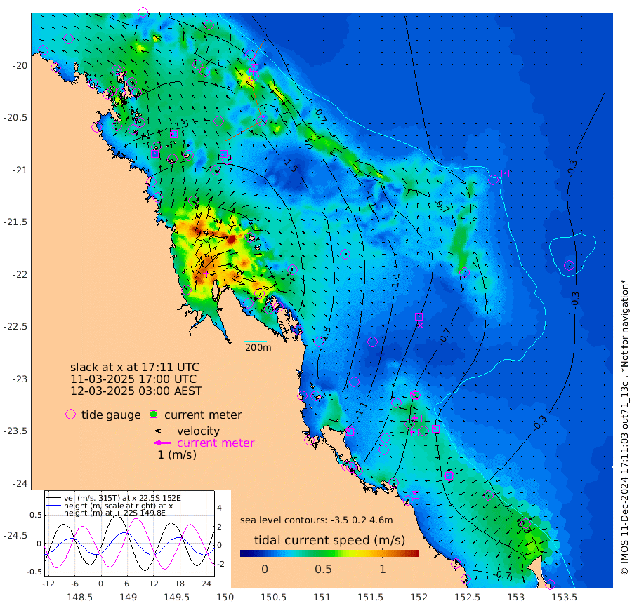 8cm/s -10T +10cm/s rms + 2cm/s 5T. Brampton I 18m 16cm/s -38T +9cm/s rms + 6cm/s 66T. Wigton I 38m 13cm/s -132T +7cm/s rms + 8cm/s 141T. Tern I 47m 17cm/s -48T +7cm/s rms + 12cm/s 54T. N Bugatti Rf 64m 27cm/s 14T +3cm/s rms + 13cm/s 178T. W Bugatti Rf 70m 14cm/s -54T +3cm/s rms + 3cm/s -130T. Creal Rf 69m 35cm/s -63T +7cm/s rms + 4cm/s 2T. North Rf 62m 18cm/s -60T +9cm/s rms + 2cm/s -56T. Cape Capricorn 26m 14cm/s -83T +5cm/s rms + 3cm/s 166T. L Musgrave I 42m 18cm/s -66T +9cm/s rms + 1cm/s -142T. Round Hill Hd 26m 6cm/s -55T +41cm/s rms + 48cm/s 116T. GBRELR 305m 4cm/s 40T +7cm/s rms + 6cm/s 123T. GBRCCH 92m 34cm/s -85T +8cm/s rms + 3cm/s -33T. GBRHIN 45m 26cm/s -87T +4cm/s rms + 2cm/s 41T. GBRHIS 46m 24cm/s -66T +16cm/s rms + 4cm/s -22T. GBROTE 59m -150cm Bell Cay -122cm Holbourne I -202cm Tern I -115cm Bugatti Rf -147cm Creal Rf -93cm White Tip I -77cm North Rf -106cm Rundle I -39cm L Musgrave I -51cm Saumarez Reef -101cm Kennedy Reef -89cm Unnamed Reef No. 2 -119cm Abbot Point -126cm Bowen -139cm Tideway Reef -135cm Hayman Island -172cm Square Reef -145cm Double Bay -140cm Molle Island -146cm Cid Harbour -137cm Hook Island -135cm Border Island -143cm Haslewood Island -150cm Shute Harbour -169cm Thomas Island -184cm Credlin Reef -186cm East Repulse Island -170cm Blacksmith Island -185cm Laguna Quays -193cm Carlisle Island (Off) -211cm St. Bees Island -181cm Scawfell Island -201cm Penrith Island -212cm Mackay Outer Harbour -225cm Hay Point -238cm Prudhoe Island -223cm Middle Island (Percy Isles) -130cm Gannet Cay -40cm Elusive Reef -248cm Mcewin Islet -234cm Mumford Island -236cm Osborn Island -248cm Marquis Island -222cm Reef Point -183cm High Peak Island -176cm Port Clinton -175cm Peaked Island -77cm Karamea Bank -115cm Johnson Patch - NW -148cm Rosslyn Bay -152cm Middle Island (Keppel Isles) -173cm Port Alma -68cm Heron Island -69cm One Tree Islet -81cm Polmaise Reef -78cm Tryon Island -84cm Rock Cod Shoal -101cm Gatcombe Head -125cm Gladstone -112cm South Trees (Storm Surge) -63cm Clews Point -56cm Round Hill Head -33cm Lady Elliot Island -20cm Breaksea Spit -63cm Bundaberg (Burnett Heads) -64cm Elliot Heads -14cm Waddy Point (Fraser Island)