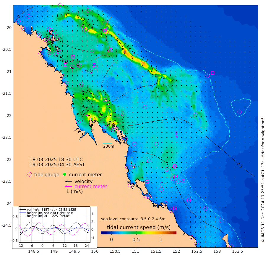 26cm/s -20T +10cm/s rms + 2cm/s 5T. Brampton I 18m 34cm/s -11T +9cm/s rms + 6cm/s 66T. Wigton I 38m 9cm/s -4T +7cm/s rms + 8cm/s 141T. Tern I 47m 32cm/s 17T +7cm/s rms + 12cm/s 54T. N Bugatti Rf 64m 33cm/s 32T +3cm/s rms + 13cm/s 178T. W Bugatti Rf 70m 18cm/s -10T +3cm/s rms + 3cm/s -130T. Creal Rf 69m 24cm/s 105T +7cm/s rms + 4cm/s 2T. North Rf 62m 22cm/s 146T +9cm/s rms + 2cm/s -56T. Cape Capricorn 26m 9cm/s 82T +5cm/s rms + 3cm/s 166T. L Musgrave I 42m 8cm/s 103T +9cm/s rms + 1cm/s -142T. Round Hill Hd 26m 3cm/s 10T +41cm/s rms + 48cm/s 116T. GBRELR 305m 17cm/s 111T +7cm/s rms + 6cm/s 123T. GBRCCH 92m 25cm/s 67T +8cm/s rms + 3cm/s -33T. GBRHIN 45m 12cm/s 82T +4cm/s rms + 2cm/s 41T. GBRHIS 46m 13cm/s 40T +16cm/s rms + 4cm/s -22T. GBROTE 59m -31cm Bell Cay 11cm Holbourne I -5cm Tern I -1cm Bugatti Rf -4cm Creal Rf -1cm White Tip I -45cm North Rf -62cm Rundle I -37cm L Musgrave I -35cm Saumarez Reef 4cm Kennedy Reef 0cm Unnamed Reef No. 2 7cm Abbot Point 9cm Bowen 13cm Tideway Reef 3cm Hayman Island 5cm Square Reef 26cm Double Bay 28cm Molle Island -2cm Cid Harbour 20cm Hook Island 8cm Border Island 5cm Haslewood Island 12cm Shute Harbour 13cm Thomas Island -1cm Credlin Reef 15cm East Repulse Island 2cm Blacksmith Island 22cm Laguna Quays 8cm Carlisle Island (Off) 2cm St. Bees Island -4cm Scawfell Island -8cm Penrith Island 11cm Mackay Outer Harbour 6cm Hay Point 7cm Prudhoe Island -21cm Middle Island (Percy Isles) -32cm Gannet Cay -8cm Elusive Reef 36cm Mcewin Islet -45cm Mumford Island -41cm Osborn Island -45cm Marquis Island -42cm Reef Point -38cm High Peak Island -47cm Port Clinton -63cm Peaked Island -49cm Karamea Bank -58cm Johnson Patch - NW -68cm Rosslyn Bay -71cm Middle Island (Keppel Isles) -77cm Port Alma -50cm Heron Island -48cm One Tree Islet -58cm Polmaise Reef -51cm Tryon Island -57cm Rock Cod Shoal -60cm Gatcombe Head -69cm Gladstone -67cm South Trees (Storm Surge) -55cm Clews Point -52cm Round Hill Head -36cm Lady Elliot Island -28cm Breaksea Spit -55cm Bundaberg (Burnett Heads) -65cm Elliot Heads -24cm Waddy Point (Fraser Island)