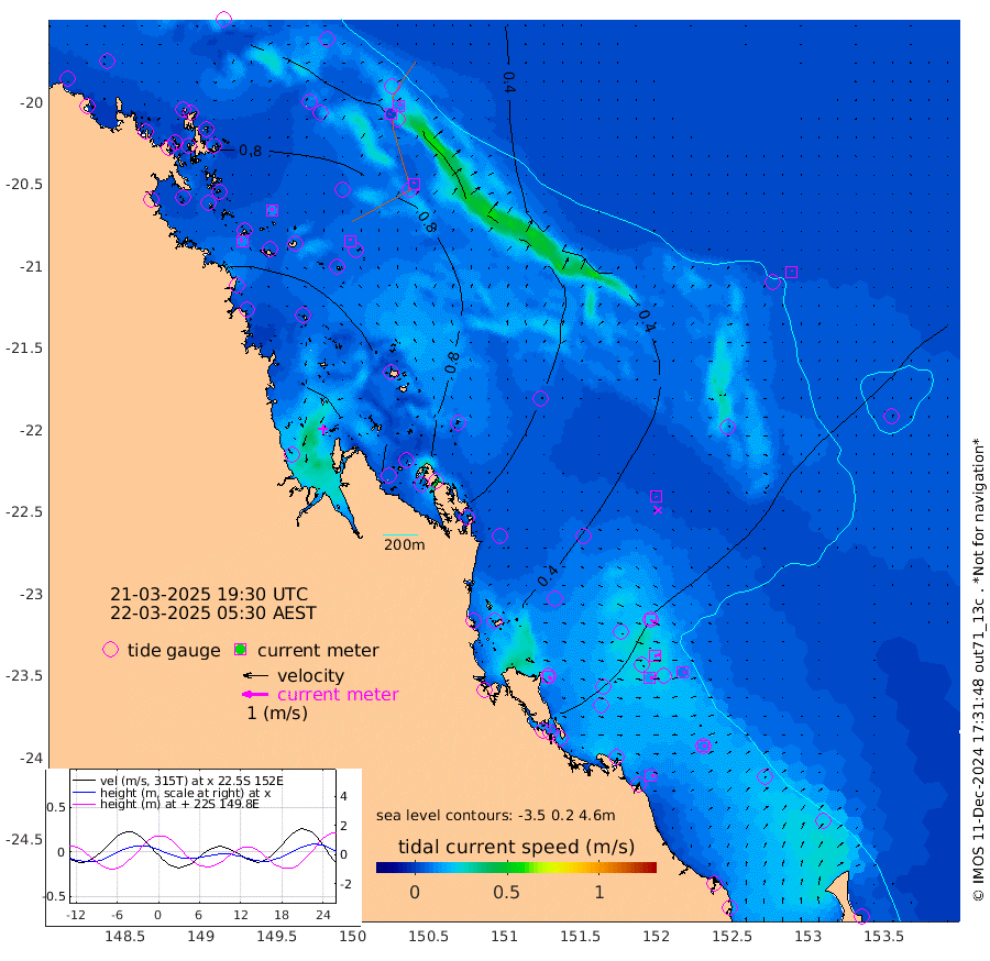 13cm/s -39T +10cm/s rms + 2cm/s 5T. Brampton I 18m 11cm/s -4T +9cm/s rms + 6cm/s 66T. Wigton I 38m 6cm/s -6T +7cm/s rms + 8cm/s 141T. Tern I 47m 12cm/s 38T +7cm/s rms + 12cm/s 54T. N Bugatti Rf 64m 2cm/s -140T +3cm/s rms + 13cm/s 178T. W Bugatti Rf 70m 5cm/s 5T +3cm/s rms + 3cm/s -130T. Creal Rf 69m 20cm/s 122T +7cm/s rms + 4cm/s 2T. North Rf 62m 16cm/s 132T +9cm/s rms + 2cm/s -56T. Cape Capricorn 26m 12cm/s 96T +5cm/s rms + 3cm/s 166T. L Musgrave I 42m 12cm/s 108T +9cm/s rms + 1cm/s -142T. Round Hill Hd 26m 2cm/s -5T +41cm/s rms + 48cm/s 116T. GBRELR 305m 2cm/s 153T +7cm/s rms + 6cm/s 123T. GBRCCH 92m 21cm/s 80T +8cm/s rms + 3cm/s -33T. GBRHIN 45m 13cm/s 92T +4cm/s rms + 2cm/s 41T. GBRHIS 46m 9cm/s 69T +16cm/s rms + 4cm/s -22T. GBROTE 59m 56cm Bell Cay 74cm Holbourne I 86cm Tern I 62cm Bugatti Rf 67cm Creal Rf 57cm White Tip I 25cm North Rf 27cm Rundle I 14cm L Musgrave I 11cm Saumarez Reef 65cm Kennedy Reef 55cm Unnamed Reef No. 2 71cm Abbot Point 75cm Bowen 77cm Tideway Reef 77cm Hayman Island 89cm Square Reef 84cm Double Bay 98cm Molle Island 76cm Cid Harbour 78cm Hook Island 78cm Border Island 72cm Haslewood Island 82cm Shute Harbour 84cm Thomas Island 83cm Credlin Reef 88cm East Repulse Island 87cm Blacksmith Island 96cm Laguna Quays 87cm Carlisle Island (Off) 88cm St. Bees Island 86cm Scawfell Island 94cm Penrith Island 98cm Mackay Outer Harbour 100cm Hay Point 100cm Prudhoe Island 88cm Middle Island (Percy Isles) 47cm Gannet Cay 31cm Elusive Reef 121cm Mcewin Islet 95cm Mumford Island 94cm Osborn Island 88cm Marquis Island 82cm Reef Point 62cm High Peak Island 54cm Port Clinton 45cm Peaked Island 18cm Karamea Bank 34cm Johnson Patch - NW 39cm Rosslyn Bay 37cm Middle Island (Keppel Isles) 41cm Port Alma 19cm Heron Island 28cm One Tree Islet 22cm Polmaise Reef 26cm Tryon Island 17cm Rock Cod Shoal 25cm Gatcombe Head 27cm Gladstone 24cm South Trees (Storm Surge) 17cm Clews Point 12cm Round Hill Head 10cm Lady Elliot Island 16cm Breaksea Spit 12cm Bundaberg (Burnett Heads) 9cm Elliot Heads 11cm Waddy Point (Fraser Island)