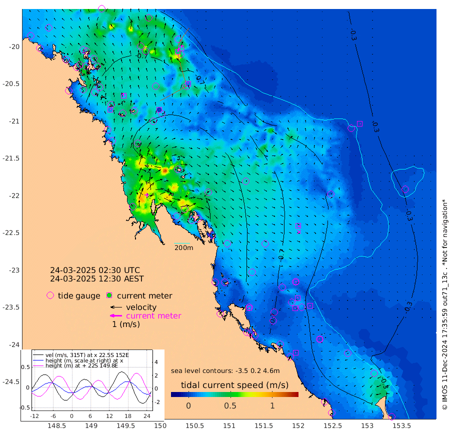 11cm/s 22T +10cm/s rms + 2cm/s 5T. Brampton I 18m 20cm/s -9T +9cm/s rms + 6cm/s 66T. Wigton I 38m 1cm/s 53T +7cm/s rms + 8cm/s 141T. Tern I 47m 28cm/s 9T +7cm/s rms + 12cm/s 54T. N Bugatti Rf 64m 36cm/s 25T +3cm/s rms + 13cm/s 178T. W Bugatti Rf 70m 9cm/s -13T +3cm/s rms + 3cm/s -130T. Creal Rf 69m 8cm/s 73T +7cm/s rms + 4cm/s 2T. North Rf 62m 12cm/s -177T +9cm/s rms + 2cm/s -56T. Cape Capricorn 26m 5cm/s -64T +5cm/s rms + 3cm/s 166T. L Musgrave I 42m 5cm/s -106T +9cm/s rms + 1cm/s -142T. Round Hill Hd 26m 1cm/s 96T +41cm/s rms + 48cm/s 116T. GBRELR 305m 17cm/s 121T +7cm/s rms + 6cm/s 123T. GBRCCH 92m 7cm/s 2T +8cm/s rms + 3cm/s -33T. GBRHIN 45m 4cm/s -82T +4cm/s rms + 2cm/s 41T. GBRHIS 46m 6cm/s -66T +16cm/s rms + 4cm/s -22T. GBROTE 59m -90cm Bell Cay -62cm Holbourne I -103cm Tern I -63cm Bugatti Rf -74cm Creal Rf -56cm White Tip I -65cm North Rf -85cm Rundle I -43cm L Musgrave I -27cm Saumarez Reef -62cm Kennedy Reef -57cm Unnamed Reef No. 2 -66cm Abbot Point -68cm Bowen -67cm Tideway Reef -76cm Hayman Island -83cm Square Reef -64cm Double Bay -79cm Molle Island -79cm Cid Harbour -64cm Hook Island -70cm Border Island -68cm Haslewood Island -76cm Shute Harbour -83cm Thomas Island -92cm Credlin Reef -91cm East Repulse Island -87cm Blacksmith Island -86cm Laguna Quays -90cm Carlisle Island (Off) -85cm St. Bees Island -91cm Scawfell Island -112cm Penrith Island -105cm Mackay Outer Harbour -113cm Hay Point -112cm Prudhoe Island -121cm Middle Island (Percy Isles) -84cm Gannet Cay -36cm Elusive Reef -115cm Mcewin Islet -148cm Mumford Island -151cm Osborn Island -146cm Marquis Island -138cm Reef Point -106cm High Peak Island -108cm Port Clinton -108cm Peaked Island -65cm Karamea Bank -85cm Johnson Patch - NW -107cm Rosslyn Bay -108cm Middle Island (Keppel Isles) -116cm Port Alma -61cm Heron Island -69cm One Tree Islet -72cm Polmaise Reef -74cm Tryon Island -72cm Rock Cod Shoal -81cm Gatcombe Head -89cm Gladstone -85cm South Trees (Storm Surge) -67cm Clews Point -55cm Round Hill Head -38cm Lady Elliot Island -39cm Breaksea Spit -53cm Bundaberg (Burnett Heads) -54cm Elliot Heads -33cm Waddy Point (Fraser Island)