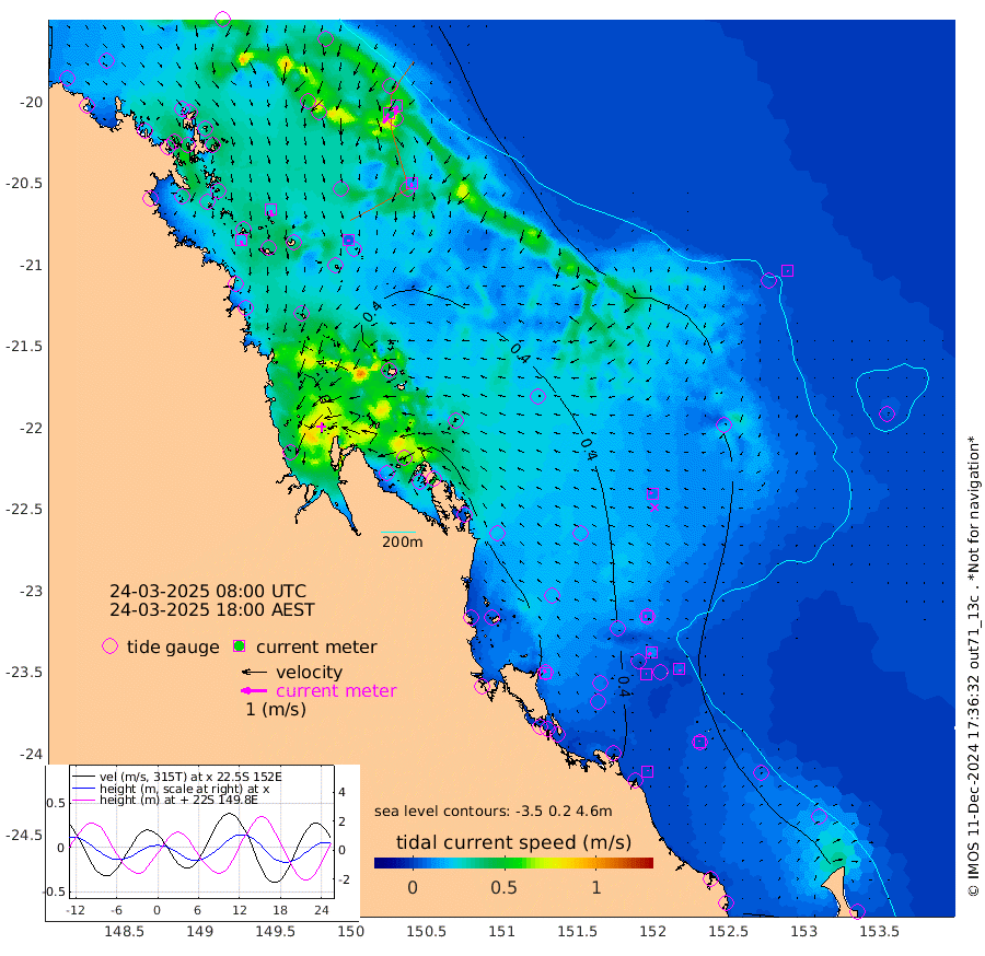 21cm/s 169T +10cm/s rms + 2cm/s 5T. Brampton I 18m 26cm/s 167T +9cm/s rms + 6cm/s 66T. Wigton I 38m 6cm/s -175T +7cm/s rms + 8cm/s 141T. Tern I 47m 36cm/s -169T +7cm/s rms + 12cm/s 54T. N Bugatti Rf 64m 41cm/s -153T +3cm/s rms + 13cm/s 178T. W Bugatti Rf 70m 14cm/s -180T +3cm/s rms + 3cm/s -130T. Creal Rf 69m 9cm/s -81T +7cm/s rms + 4cm/s 2T. North Rf 62m 14cm/s -21T +9cm/s rms + 2cm/s -56T. Cape Capricorn 26m 2cm/s 9T +5cm/s rms + 3cm/s 166T. L Musgrave I 42m 3cm/s -31T +9cm/s rms + 1cm/s -142T. Round Hill Hd 26m 3cm/s 173T +41cm/s rms + 48cm/s 116T. GBRELR 305m 10cm/s -69T +7cm/s rms + 6cm/s 123T. GBRCCH 92m 13cm/s -138T +8cm/s rms + 3cm/s -33T. GBRHIN 45m 1cm/s -94T +4cm/s rms + 2cm/s 41T. GBRHIS 46m 7cm/s 153T +16cm/s rms + 4cm/s -22T. GBROTE 59m 43cm Bell Cay 25cm Holbourne I 42cm Tern I 20cm Bugatti Rf 24cm Creal Rf 18cm White Tip I 31cm North Rf 50cm Rundle I 15cm L Musgrave I 0cm Saumarez Reef 31cm Kennedy Reef 21cm Unnamed Reef No. 2 28cm Abbot Point 27cm Bowen 18cm Tideway Reef 34cm Hayman Island 22cm Square Reef 23cm Double Bay 23cm Molle Island 30cm Cid Harbour 21cm Hook Island 21cm Border Island 21cm Haslewood Island 26cm Shute Harbour 24cm Thomas Island 31cm Credlin Reef 32cm East Repulse Island 31cm Blacksmith Island 24cm Laguna Quays 32cm Carlisle Island (Off) 36cm St. Bees Island 42cm Scawfell Island 46cm Penrith Island 35cm Mackay Outer Harbour 41cm Hay Point 36cm Prudhoe Island 54cm Middle Island (Percy Isles) 44cm Gannet Cay 4cm Elusive Reef 35cm Mcewin Islet 86cm Mumford Island 85cm Osborn Island 83cm Marquis Island 77cm Reef Point 54cm High Peak Island 59cm Port Clinton 59cm Peaked Island 31cm Karamea Bank 42cm Johnson Patch - NW 64cm Rosslyn Bay 64cm Middle Island (Keppel Isles) 73cm Port Alma 28cm Heron Island 31cm One Tree Islet 38cm Polmaise Reef 33cm Tryon Island 37cm Rock Cod Shoal 48cm Gatcombe Head 55cm Gladstone 53cm South Trees (Storm Surge) 37cm Clews Point 27cm Round Hill Head 9cm Lady Elliot Island 8cm Breaksea Spit 30cm Bundaberg (Burnett Heads) 33cm Elliot Heads 3cm Waddy Point (Fraser Island)