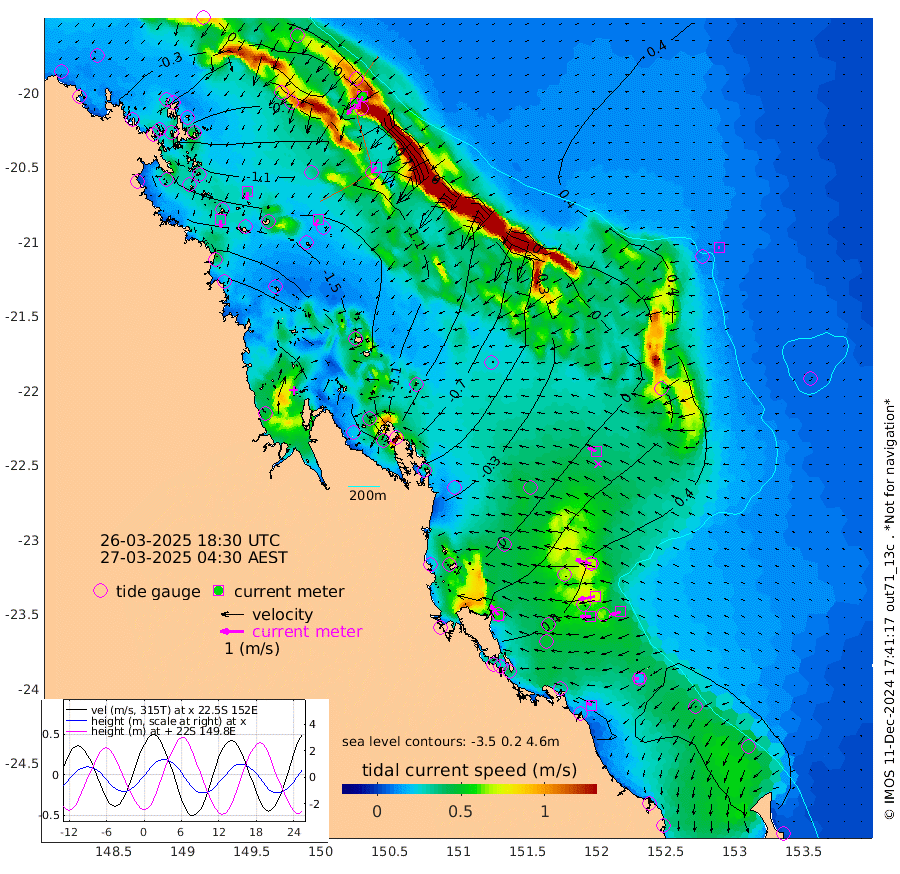 33cm/s 175T +10cm/s rms + 2cm/s 5T. Brampton I 18m 35cm/s -178T +9cm/s rms + 6cm/s 66T. Wigton I 38m 32cm/s -146T +7cm/s rms + 8cm/s 141T. Tern I 47m 57cm/s -152T +7cm/s rms + 12cm/s 54T. N Bugatti Rf 64m 57cm/s -145T +3cm/s rms + 13cm/s 178T. W Bugatti Rf 70m 28cm/s -141T +3cm/s rms + 3cm/s -130T. Creal Rf 69m 68cm/s -75T +7cm/s rms + 4cm/s 2T. North Rf 62m 55cm/s -38T +9cm/s rms + 2cm/s -56T. Cape Capricorn 26m 18cm/s -103T +5cm/s rms + 3cm/s 166T. L Musgrave I 42m 22cm/s -69T +9cm/s rms + 1cm/s -142T. Round Hill Hd 26m 7cm/s -99T +41cm/s rms + 48cm/s 116T. GBRELR 305m 38cm/s -67T +7cm/s rms + 6cm/s 123T. GBRCCH 92m 73cm/s -100T +8cm/s rms + 3cm/s -33T. GBRHIN 45m 46cm/s -92T +4cm/s rms + 2cm/s 41T. GBRHIS 46m 41cm/s -106T +16cm/s rms + 4cm/s -22T. GBROTE 59m -57cm Bell Cay -28cm Holbourne I -137cm Tern I -43cm Bugatti Rf -87cm Creal Rf -11cm White Tip I 40cm North Rf 41cm Rundle I 55cm L Musgrave I 32cm Saumarez Reef -7cm Kennedy Reef 15cm Unnamed Reef No. 2 -24cm Abbot Point -37cm Bowen -70cm Tideway Reef -52cm Hayman Island -106cm Square Reef -48cm Double Bay -67cm Molle Island -89cm Cid Harbour -56cm Hook Island -84cm Border Island -91cm Haslewood Island -85cm Shute Harbour -125cm Thomas Island -118cm Credlin Reef -134cm East Repulse Island -144cm Blacksmith Island -158cm Laguna Quays -133cm Carlisle Island (Off) -170cm St. Bees Island -149cm Scawfell Island -143cm Penrith Island -176cm Mackay Outer Harbour -185cm Hay Point -182cm Prudhoe Island -138cm Middle Island (Percy Isles) -42cm Gannet Cay 46cm Elusive Reef -287cm Mcewin Islet -134cm Mumford Island -163cm Osborn Island -173cm Marquis Island -143cm Reef Point -87cm High Peak Island -35cm Port Clinton -23cm Peaked Island 53cm Karamea Bank 16cm Johnson Patch - NW 7cm Rosslyn Bay 12cm Middle Island (Keppel Isles) -12cm Port Alma 49cm Heron Island 60cm One Tree Islet 47cm Polmaise Reef 37cm Tryon Island 58cm Rock Cod Shoal 32cm Gatcombe Head 15cm Gladstone 31cm South Trees (Storm Surge) 62cm Clews Point 55cm Round Hill Head 60cm Lady Elliot Island 65cm Breaksea Spit 55cm Bundaberg (Burnett Heads) 52cm Elliot Heads 53cm Waddy Point (Fraser Island)