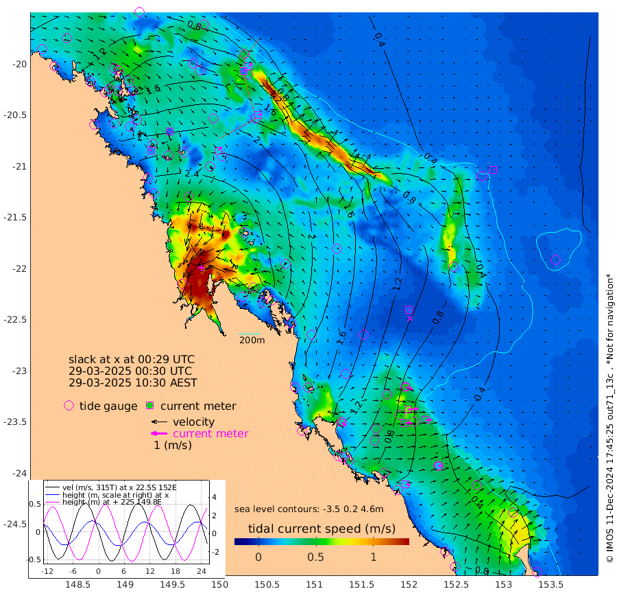 11cm/s -27T +10cm/s rms + 2cm/s 5T. Brampton I 18m 7cm/s 103T +9cm/s rms + 6cm/s 66T. Wigton I 38m 25cm/s 37T +7cm/s rms + 8cm/s 141T. Tern I 47m 23cm/s 53T +7cm/s rms + 12cm/s 54T. N Bugatti Rf 64m 10cm/s 83T +3cm/s rms + 13cm/s 178T. W Bugatti Rf 70m 19cm/s 86T +3cm/s rms + 3cm/s -130T. Creal Rf 69m 50cm/s 113T +7cm/s rms + 4cm/s 2T. North Rf 62m 34cm/s 129T +9cm/s rms + 2cm/s -56T. Cape Capricorn 26m 18cm/s 95T +5cm/s rms + 3cm/s 166T. L Musgrave I 42m 24cm/s 106T +9cm/s rms + 1cm/s -142T. Round Hill Hd 26m 5cm/s 83T +41cm/s rms + 48cm/s 116T. GBRELR 305m 8cm/s 114T +7cm/s rms + 6cm/s 123T. GBRCCH 92m 62cm/s 86T +8cm/s rms + 3cm/s -33T. GBRHIN 45m 46cm/s 91T +4cm/s rms + 2cm/s 41T. GBRHIS 46m 37cm/s 88T +16cm/s rms + 4cm/s -22T. GBROTE 59m 185cm Bell Cay 115cm Holbourne I 256cm Tern I 128cm Bugatti Rf 181cm Creal Rf 92cm White Tip I 80cm North Rf 110cm Rundle I 38cm L Musgrave I 41cm Saumarez Reef 85cm Kennedy Reef 73cm Unnamed Reef No. 2 111cm Abbot Point 124cm Bowen 151cm Tideway Reef 144cm Hayman Island 200cm Square Reef 137cm Double Bay 166cm Molle Island 180cm Cid Harbour 142cm Hook Island 163cm Border Island 179cm Haslewood Island 174cm Shute Harbour 213cm Thomas Island 228cm Credlin Reef 238cm East Repulse Island 232cm Blacksmith Island 246cm Laguna Quays 246cm Carlisle Island (Off) 266cm St. Bees Island 244cm Scawfell Island 267cm Penrith Island 287cm Mackay Outer Harbour 306cm Hay Point 302cm Prudhoe Island 289cm Middle Island (Percy Isles) 164cm Gannet Cay 27cm Elusive Reef 389cm Mcewin Islet 298cm Mumford Island 329cm Osborn Island 347cm Marquis Island 305cm Reef Point 233cm High Peak Island 201cm Port Clinton 185cm Peaked Island 73cm Karamea Bank 131cm Johnson Patch - NW 165cm Rosslyn Bay 164cm Middle Island (Keppel Isles) 199cm Port Alma 72cm Heron Island 64cm One Tree Islet 81cm Polmaise Reef 90cm Tryon Island 83cm Rock Cod Shoal 111cm Gatcombe Head 143cm Gladstone 123cm South Trees (Storm Surge) 57cm Clews Point 57cm Round Hill Head 30cm Lady Elliot Island 18cm Breaksea Spit 62cm Bundaberg (Burnett Heads) 68cm Elliot Heads 16cm Waddy Point (Fraser Island)