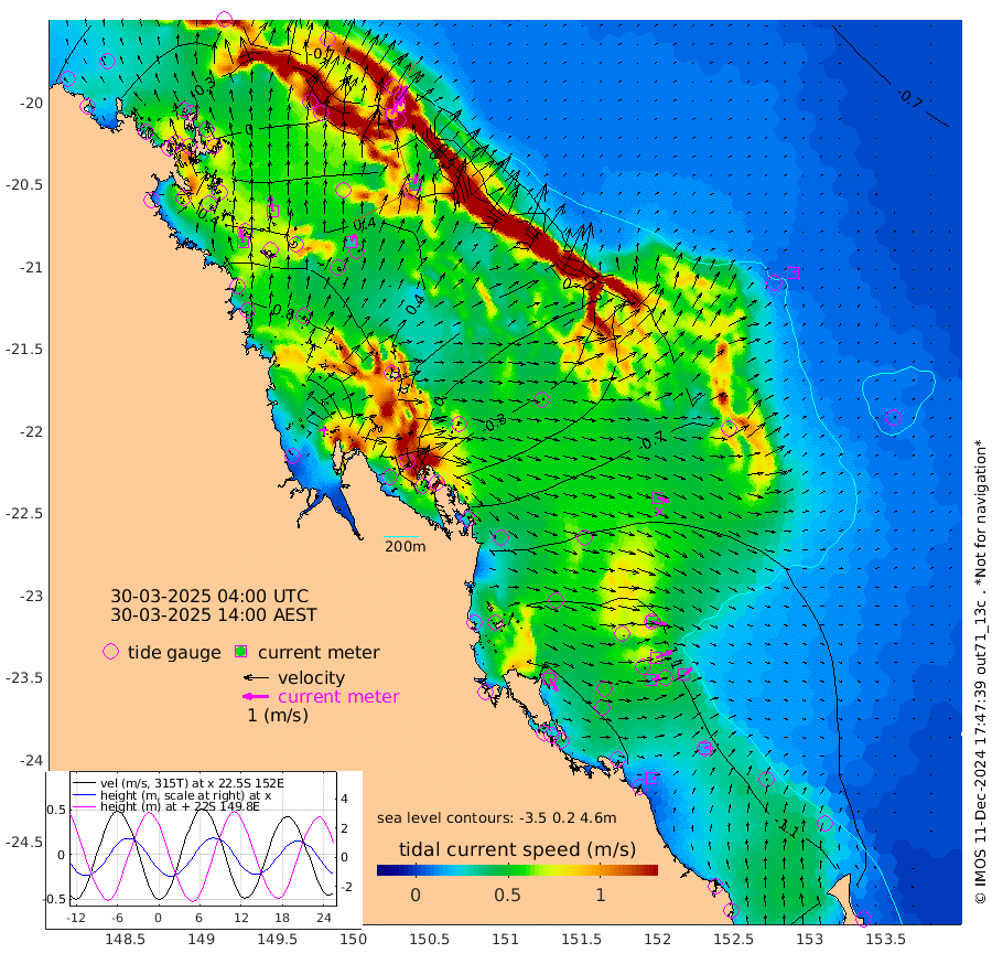 54cm/s -10T +10cm/s rms + 2cm/s 5T. Brampton I 18m 64cm/s -9T +9cm/s rms + 6cm/s 66T. Wigton I 38m 32cm/s 25T +7cm/s rms + 8cm/s 141T. Tern I 47m 83cm/s 18T +7cm/s rms + 12cm/s 54T. N Bugatti Rf 64m 97cm/s 30T +3cm/s rms + 13cm/s 178T. W Bugatti Rf 70m 39cm/s 13T +3cm/s rms + 3cm/s -130T. Creal Rf 69m 58cm/s 101T +7cm/s rms + 4cm/s 2T. North Rf 62m 55cm/s 147T +9cm/s rms + 2cm/s -56T. Cape Capricorn 26m 17cm/s 79T +5cm/s rms + 3cm/s 166T. L Musgrave I 42m 12cm/s 101T +9cm/s rms + 1cm/s -142T. Round Hill Hd 26m 7cm/s 37T +41cm/s rms + 48cm/s 116T. GBRELR 305m 47cm/s 107T +7cm/s rms + 6cm/s 123T. GBRCCH 92m 67cm/s 68T +8cm/s rms + 3cm/s -33T. GBRHIN 45m 36cm/s 82T +4cm/s rms + 2cm/s 41T. GBRHIS 46m 38cm/s 50T +16cm/s rms + 4cm/s -22T. GBROTE 59m -55cm Bell Cay -49cm Holbourne I 6cm Tern I -36cm Bugatti Rf -13cm Creal Rf -55cm White Tip I -113cm North Rf -141cm Rundle I -99cm L Musgrave I -85cm Saumarez Reef -68cm Kennedy Reef -77cm Unnamed Reef No. 2 -55cm Abbot Point -44cm Bowen -18cm Tideway Reef -39cm Hayman Island -10cm Square Reef -41cm Double Bay -7cm Molle Island -10cm Cid Harbour -26cm Hook Island 1cm Border Island 4cm Haslewood Island -9cm Shute Harbour 19cm Thomas Island 0cm Credlin Reef 26cm East Repulse Island 27cm Blacksmith Island 51cm Laguna Quays 20cm Carlisle Island (Off) 17cm St. Bees Island 23cm Scawfell Island 10cm Penrith Island 47cm Mackay Outer Harbour 46cm Hay Point 29cm Prudhoe Island -19cm Middle Island (Percy Isles) -54cm Gannet Cay -77cm Elusive Reef 161cm Mcewin Islet -50cm Mumford Island -6cm Osborn Island -5cm Marquis Island -18cm Reef Point -49cm High Peak Island -102cm Port Clinton -130cm Peaked Island -125cm Karamea Bank -125cm Johnson Patch - NW -137cm Rosslyn Bay -145cm Middle Island (Keppel Isles) -136cm Port Alma -119cm Heron Island -133cm One Tree Islet -132cm Polmaise Reef -117cm Tryon Island -134cm Rock Cod Shoal -125cm Gatcombe Head -128cm Gladstone -135cm South Trees (Storm Surge) -134cm Clews Point -116cm Round Hill Head -99cm Lady Elliot Island -97cm Breaksea Spit -123cm Bundaberg (Burnett Heads) -129cm Elliot Heads -74cm Waddy Point (Fraser Island)