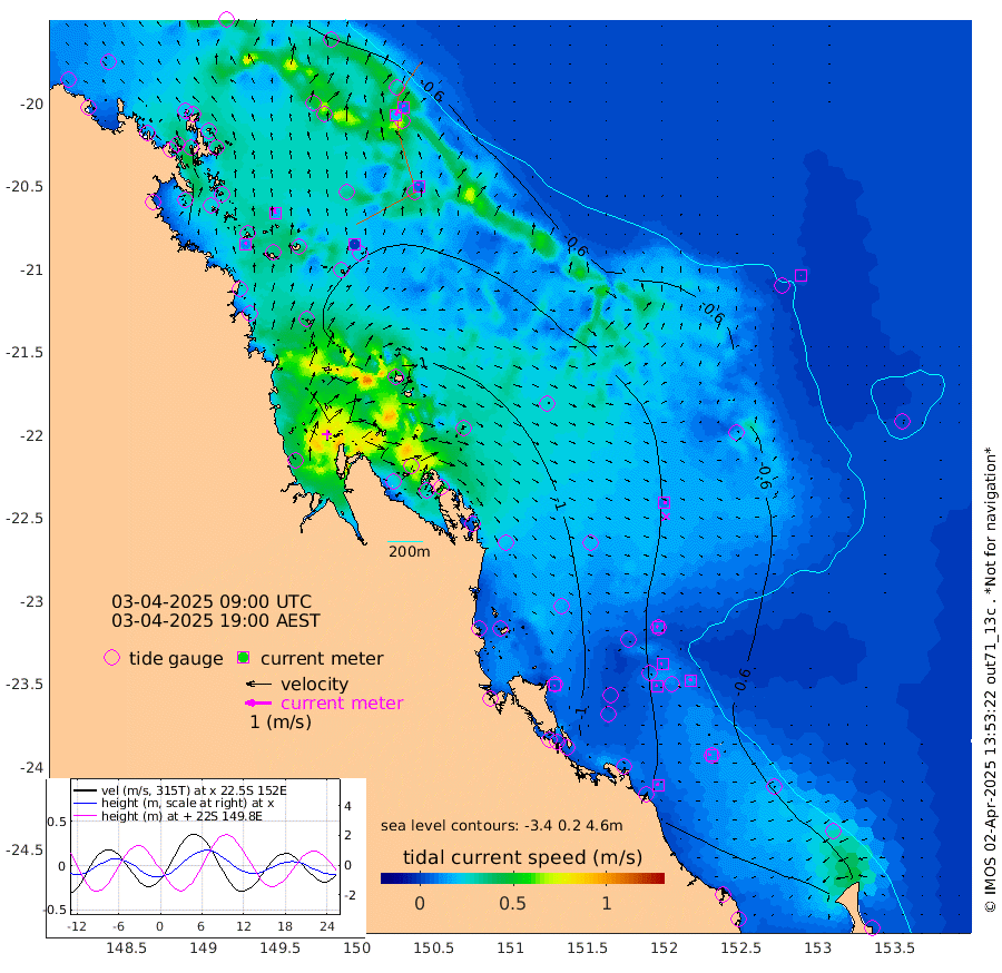 11cm/s 15T +10cm/s rms + 2cm/s 5T. Brampton I 18m 17cm/s -15T +9cm/s rms + 6cm/s 66T. Wigton I 38m 1cm/s 37T +7cm/s rms + 8cm/s 141T. Tern I 47m 10cm/s -7T +7cm/s rms + 12cm/s 54T. N Bugatti Rf 64m 19cm/s 32T +3cm/s rms + 13cm/s 178T. W Bugatti Rf 70m 8cm/s -11T +3cm/s rms + 3cm/s -130T. Creal Rf 69m 9cm/s -53T +7cm/s rms + 4cm/s 2T. North Rf 62m 5cm/s -157T +9cm/s rms + 2cm/s -56T. Cape Capricorn 26m 11cm/s -77T +5cm/s rms + 3cm/s 166T. L Musgrave I 42m 9cm/s -66T +9cm/s rms + 1cm/s -142T. Round Hill Hd 26m 0cm/s -26T +41cm/s rms + 48cm/s 116T. GBRELR 305m 10cm/s 95T +7cm/s rms + 6cm/s 123T. GBRCCH 92m 8cm/s -73T +8cm/s rms + 3cm/s -33T. GBRHIN 45m 8cm/s -73T +4cm/s rms + 2cm/s 41T. GBRHIS 46m 11cm/s -28T +16cm/s rms + 4cm/s -22T. GBROTE 59m -95cm Bell Cay -70cm Holbourne I -102cm Tern I -67cm Bugatti Rf -79cm Creal Rf -59cm White Tip I -73cm North Rf -93cm Rundle I -53cm L Musgrave I -42cm Saumarez Reef -68cm Kennedy Reef -60cm Unnamed Reef No. 2 -61cm Abbot Point -64cm Bowen -67cm Tideway Reef -67cm Hayman Island -77cm Square Reef -79cm Double Bay -79cm Molle Island -71cm Cid Harbour -76cm Hook Island -67cm Border Island -69cm Haslewood Island -74cm Shute Harbour -80cm Thomas Island -88cm Credlin Reef -86cm East Repulse Island -84cm Blacksmith Island -86cm Laguna Quays -95cm Carlisle Island (Off) -100cm St. Bees Island -81cm Scawfell Island -99cm Penrith Island -104cm Mackay Outer Harbour -112cm Hay Point -112cm Prudhoe Island -141cm Middle Island (Percy Isles) -93cm Gannet Cay -46cm Elusive Reef -140cm Mcewin Islet -129cm Mumford Island -133cm Osborn Island -143cm Marquis Island -129cm Reef Point -114cm High Peak Island -126cm Port Clinton -110cm Peaked Island -73cm Karamea Bank -104cm Johnson Patch - NW -115cm Rosslyn Bay -112cm Middle Island (Keppel Isles) -132cm Port Alma -73cm Heron Island -75cm One Tree Islet -80cm Polmaise Reef -78cm Tryon Island -81cm Rock Cod Shoal -92cm Gatcombe Head -109cm Gladstone -102cm South Trees (Storm Surge) -70cm Clews Point -67cm Round Hill Head -50cm Lady Elliot Island -49cm Breaksea Spit -76cm Bundaberg (Burnett Heads) -78cm Elliot Heads -33cm Waddy Point (Fraser Island)