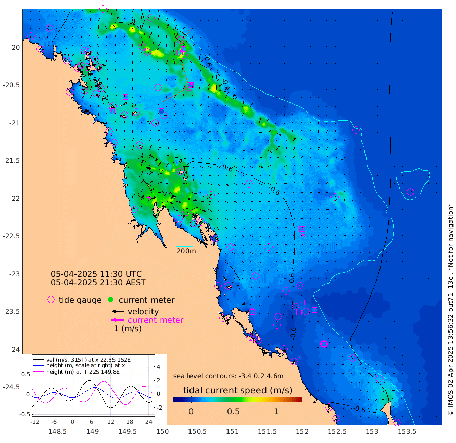 13cm/s 9T +10cm/s rms + 2cm/s 5T. Brampton I 18m 15cm/s -15T +9cm/s rms + 6cm/s 66T. Wigton I 38m 5cm/s 35T +7cm/s rms + 8cm/s 141T. Tern I 47m 17cm/s 3T +7cm/s rms + 12cm/s 54T. N Bugatti Rf 64m 30cm/s 34T +3cm/s rms + 13cm/s 178T. W Bugatti Rf 70m 10cm/s 19T +3cm/s rms + 3cm/s -130T. Creal Rf 69m 4cm/s 10T +7cm/s rms + 4cm/s 2T. North Rf 62m 9cm/s 165T +9cm/s rms + 2cm/s -56T. Cape Capricorn 26m 10cm/s -80T +5cm/s rms + 3cm/s 166T. L Musgrave I 42m 4cm/s -73T +9cm/s rms + 1cm/s -142T. Round Hill Hd 26m 1cm/s 35T +41cm/s rms + 48cm/s 116T. GBRELR 305m 11cm/s 94T +7cm/s rms + 6cm/s 123T. GBRCCH 92m 4cm/s 52T +8cm/s rms + 3cm/s -33T. GBRHIN 45m 2cm/s 10T +4cm/s rms + 2cm/s 41T. GBRHIS 46m 10cm/s 10T +16cm/s rms + 4cm/s -22T. GBROTE 59m -60cm Bell Cay -66cm Holbourne I -60cm Tern I -48cm Bugatti Rf -47cm Creal Rf -49cm White Tip I -53cm North Rf -69cm Rundle I -39cm L Musgrave I -27cm Saumarez Reef -65cm Kennedy Reef -58cm Unnamed Reef No. 2 -59cm Abbot Point -59cm Bowen -51cm Tideway Reef -57cm Hayman Island -49cm Square Reef -69cm Double Bay -67cm Molle Island -47cm Cid Harbour -63cm Hook Island -49cm Border Island -46cm Haslewood Island -55cm Shute Harbour -47cm Thomas Island -54cm Credlin Reef -55cm East Repulse Island -44cm Blacksmith Island -49cm Laguna Quays -60cm Carlisle Island (Off) -48cm St. Bees Island -40cm Scawfell Island -57cm Penrith Island -56cm Mackay Outer Harbour -59cm Hay Point -59cm Prudhoe Island -81cm Middle Island (Percy Isles) -61cm Gannet Cay -43cm Elusive Reef -66cm Mcewin Islet -77cm Mumford Island -76cm Osborn Island -77cm Marquis Island -73cm Reef Point -68cm High Peak Island -86cm Port Clinton -70cm Peaked Island -55cm Karamea Bank -67cm Johnson Patch - NW -80cm Rosslyn Bay -79cm Middle Island (Keppel Isles) -89cm Port Alma -51cm Heron Island -57cm One Tree Islet -57cm Polmaise Reef -51cm Tryon Island -62cm Rock Cod Shoal -65cm Gatcombe Head -74cm Gladstone -72cm South Trees (Storm Surge) -53cm Clews Point -47cm Round Hill Head -35cm Lady Elliot Island -36cm Breaksea Spit -56cm Bundaberg (Burnett Heads) -53cm Elliot Heads -22cm Waddy Point (Fraser Island)