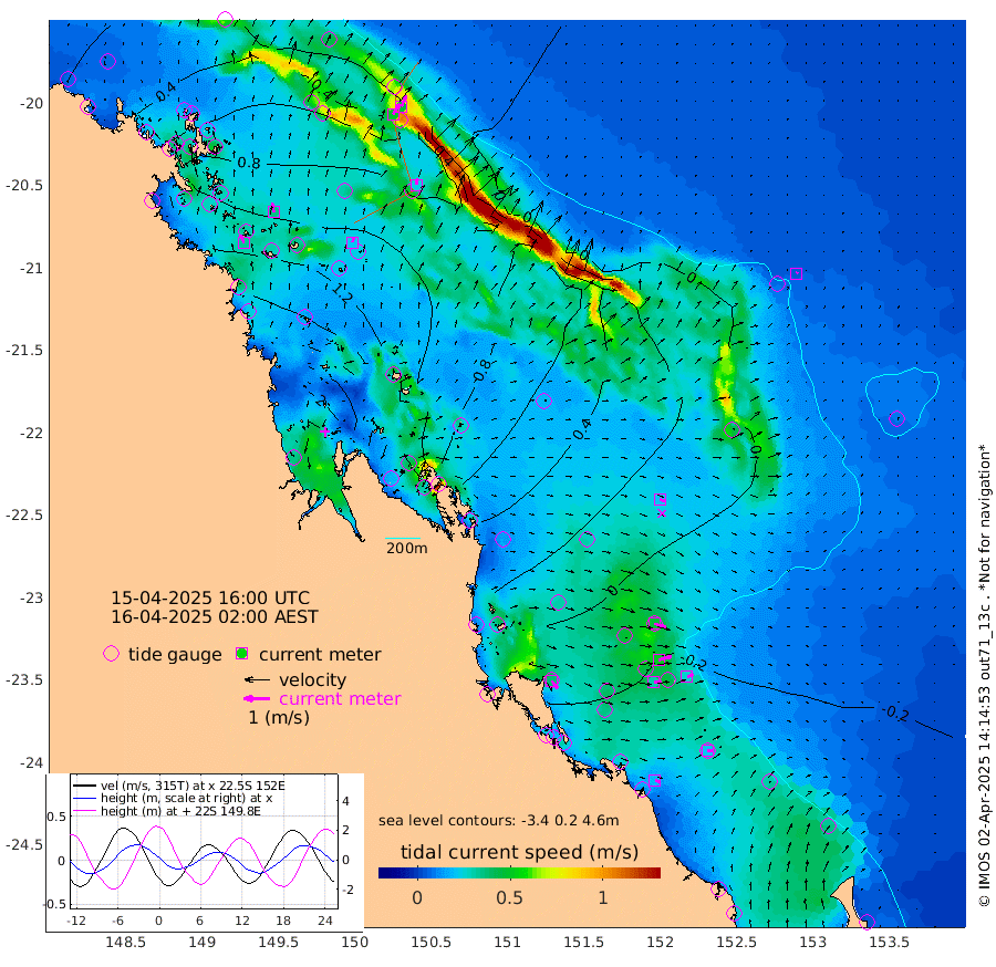 34cm/s -21T +10cm/s rms + 2cm/s 5T. Brampton I 18m 35cm/s -9T +9cm/s rms + 6cm/s 66T. Wigton I 38m 20cm/s 12T +7cm/s rms + 8cm/s 141T. Tern I 47m 48cm/s 22T +7cm/s rms + 12cm/s 54T. N Bugatti Rf 64m 49cm/s 32T +3cm/s rms + 13cm/s 178T. W Bugatti Rf 70m 24cm/s 9T +3cm/s rms + 3cm/s -130T. Creal Rf 69m 47cm/s 108T +7cm/s rms + 4cm/s 2T. North Rf 62m 37cm/s 141T +9cm/s rms + 2cm/s -56T. Cape Capricorn 26m 21cm/s 92T +5cm/s rms + 3cm/s 166T. L Musgrave I 42m 19cm/s 112T +9cm/s rms + 1cm/s -142T. Round Hill Hd 26m 6cm/s 25T +41cm/s rms + 48cm/s 116T. GBRELR 305m 21cm/s 109T +7cm/s rms + 6cm/s 123T. GBRCCH 92m 52cm/s 74T +8cm/s rms + 3cm/s -33T. GBRHIN 45m 31cm/s 89T +4cm/s rms + 2cm/s 41T. GBRHIS 46m 26cm/s 64T +16cm/s rms + 4cm/s -22T. GBROTE 59m 41cm Bell Cay 43cm Holbourne I 93cm Tern I 45cm Bugatti Rf 66cm Creal Rf 29cm White Tip I -15cm North Rf -23cm Rundle I -22cm L Musgrave I -24cm Saumarez Reef 28cm Kennedy Reef 15cm Unnamed Reef No. 2 31cm Abbot Point 40cm Bowen 61cm Tideway Reef 46cm Hayman Island 75cm Square Reef 68cm Double Bay 81cm Molle Island 58cm Cid Harbour 67cm Hook Island 65cm Border Island 64cm Haslewood Island 70cm Shute Harbour 91cm Thomas Island 80cm Credlin Reef 95cm East Repulse Island 92cm Blacksmith Island 116cm Laguna Quays 95cm Carlisle Island (Off) 108cm St. Bees Island 93cm Scawfell Island 96cm Penrith Island 125cm Mackay Outer Harbour 129cm Hay Point 127cm Prudhoe Island 106cm Middle Island (Percy Isles) 37cm Gannet Cay -2cm Elusive Reef 220cm Mcewin Islet 78cm Mumford Island 96cm Osborn Island 100cm Marquis Island 82cm Reef Point 56cm High Peak Island 35cm Port Clinton 5cm Peaked Island -25cm Karamea Bank 1cm Johnson Patch - NW -4cm Rosslyn Bay -12cm Middle Island (Keppel Isles) 3cm Port Alma -21cm Heron Island -21cm One Tree Islet -23cm Polmaise Reef -14cm Tryon Island -30cm Rock Cod Shoal -15cm Gatcombe Head -9cm Gladstone -17cm South Trees (Storm Surge) -32cm Clews Point -27cm Round Hill Head -24cm Lady Elliot Island -17cm Breaksea Spit -28cm Bundaberg (Burnett Heads) -35cm Elliot Heads -14cm Waddy Point (Fraser Island)