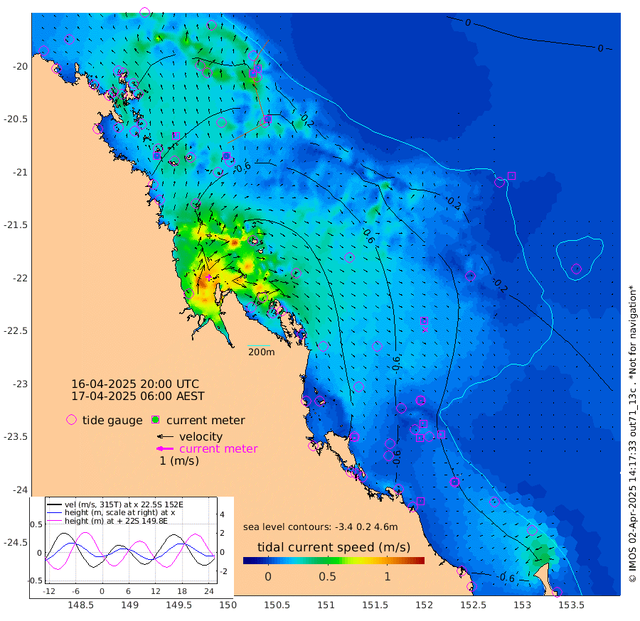 6cm/s 24T +10cm/s rms + 2cm/s 5T. Brampton I 18m 17cm/s -10T +9cm/s rms + 6cm/s 66T. Wigton I 38m 5cm/s -146T +7cm/s rms + 8cm/s 141T. Tern I 47m 10cm/s 6T +7cm/s rms + 12cm/s 54T. N Bugatti Rf 64m 10cm/s 33T +3cm/s rms + 13cm/s 178T. W Bugatti Rf 70m 6cm/s -68T +3cm/s rms + 3cm/s -130T. Creal Rf 69m 4cm/s 118T +7cm/s rms + 4cm/s 2T. North Rf 62m 8cm/s -179T +9cm/s rms + 2cm/s -56T. Cape Capricorn 26m 3cm/s -55T +5cm/s rms + 3cm/s 166T. L Musgrave I 42m 2cm/s -120T +9cm/s rms + 1cm/s -142T. Round Hill Hd 26m 1cm/s 122T +41cm/s rms + 48cm/s 116T. GBRELR 305m 10cm/s 136T +7cm/s rms + 6cm/s 123T. GBRCCH 92m 6cm/s -55T +8cm/s rms + 3cm/s -33T. GBRHIN 45m 8cm/s -92T +4cm/s rms + 2cm/s 41T. GBRHIS 46m 9cm/s -78T +16cm/s rms + 4cm/s -22T. GBROTE 59m -69cm Bell Cay -3cm Holbourne I -73cm Tern I -22cm Bugatti Rf -45cm Creal Rf -8cm White Tip I -44cm North Rf -63cm Rundle I -28cm L Musgrave I -9cm Saumarez Reef -4cm Kennedy Reef 1cm Unnamed Reef No. 2 3cm Abbot Point -2cm Bowen -12cm Tideway Reef -16cm Hayman Island -28cm Square Reef -2cm Double Bay -10cm Molle Island -32cm Cid Harbour -10cm Hook Island -25cm Border Island -27cm Haslewood Island -24cm Shute Harbour -44cm Thomas Island -50cm Credlin Reef -46cm East Repulse Island -58cm Blacksmith Island -51cm Laguna Quays -51cm Carlisle Island (Off) -62cm St. Bees Island -65cm Scawfell Island -74cm Penrith Island -78cm Mackay Outer Harbour -89cm Hay Point -83cm Prudhoe Island -111cm Middle Island (Percy Isles) -71cm Gannet Cay 0cm Elusive Reef -138cm Mcewin Islet -119cm Mumford Island -136cm Osborn Island -143cm Marquis Island -123cm Reef Point -90cm High Peak Island -89cm Port Clinton -79cm Peaked Island -40cm Karamea Bank -73cm Johnson Patch - NW -85cm Rosslyn Bay -81cm Middle Island (Keppel Isles) -102cm Port Alma -44cm Heron Island -44cm One Tree Islet -55cm Polmaise Reef -54cm Tryon Island -48cm Rock Cod Shoal -65cm Gatcombe Head -82cm Gladstone -74cm South Trees (Storm Surge) -47cm Clews Point -44cm Round Hill Head -24cm Lady Elliot Island -24cm Breaksea Spit -44cm Bundaberg (Burnett Heads) -50cm Elliot Heads -20cm Waddy Point (Fraser Island)