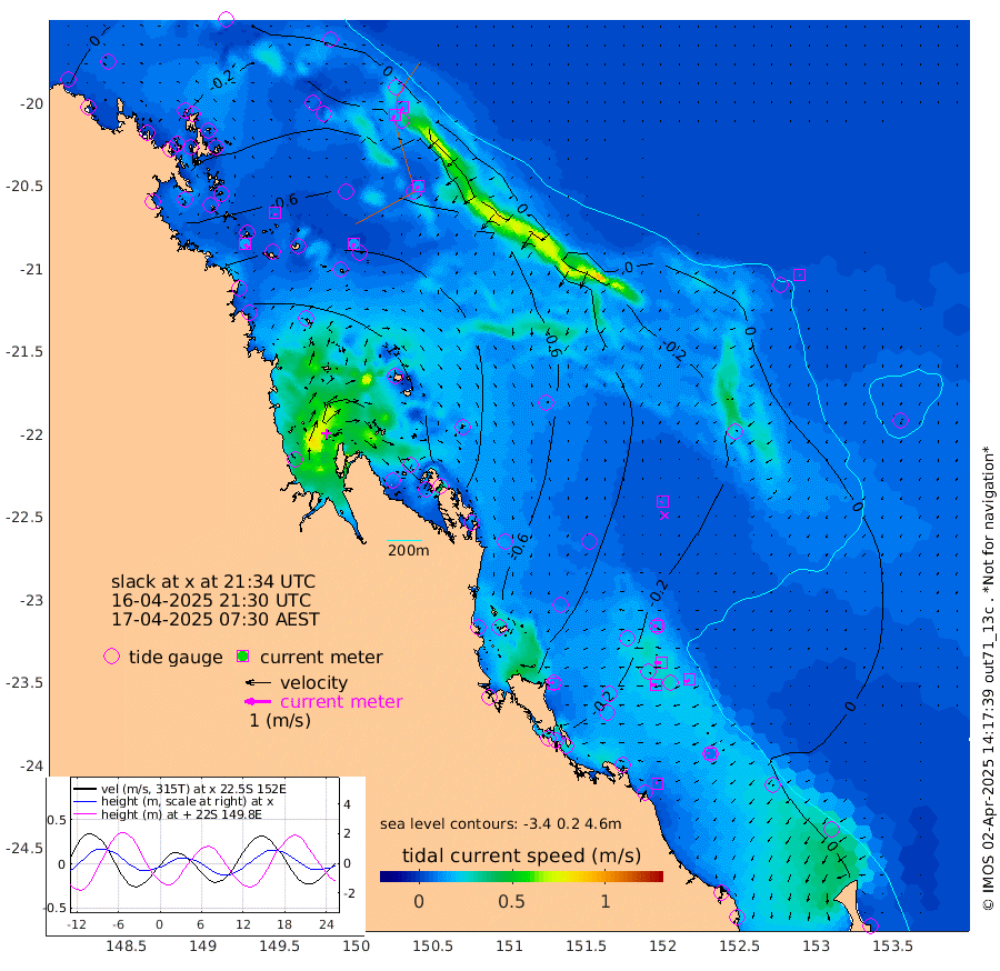 16cm/s 144T +10cm/s rms + 2cm/s 5T. Brampton I 18m 7cm/s 168T +9cm/s rms + 6cm/s 66T. Wigton I 38m 14cm/s -164T +7cm/s rms + 8cm/s 141T. Tern I 47m 15cm/s -155T +7cm/s rms + 12cm/s 54T. N Bugatti Rf 64m 17cm/s -152T +3cm/s rms + 13cm/s 178T. W Bugatti Rf 70m 13cm/s -157T +3cm/s rms + 3cm/s -130T. Creal Rf 69m 14cm/s -78T +7cm/s rms + 4cm/s 2T. North Rf 62m 11cm/s -61T +9cm/s rms + 2cm/s -56T. Cape Capricorn 26m 10cm/s -83T +5cm/s rms + 3cm/s 166T. L Musgrave I 42m 6cm/s -81T +9cm/s rms + 1cm/s -142T. Round Hill Hd 26m 4cm/s 168T +41cm/s rms + 48cm/s 116T. GBRELR 305m 7cm/s -118T +7cm/s rms + 6cm/s 123T. GBRCCH 92m 25cm/s -93T +8cm/s rms + 3cm/s -33T. GBRHIN 45m 18cm/s -96T +4cm/s rms + 2cm/s 41T. GBRHIS 46m 19cm/s -117T +16cm/s rms + 4cm/s -22T. GBROTE 59m -52cm Bell Cay -7cm Holbourne I -77cm Tern I -22cm Bugatti Rf -46cm Creal Rf -6cm White Tip I -12cm North Rf -19cm Rundle I -1cm L Musgrave I 18cm Saumarez Reef -2cm Kennedy Reef 7cm Unnamed Reef No. 2 3cm Abbot Point -5cm Bowen -21cm Tideway Reef -18cm Hayman Island -35cm Square Reef -18cm Double Bay -29cm Molle Island -33cm Cid Harbour -21cm Hook Island -33cm Border Island -32cm Haslewood Island -33cm Shute Harbour -57cm Thomas Island -54cm Credlin Reef -58cm East Repulse Island -66cm Blacksmith Island -73cm Laguna Quays -61cm Carlisle Island (Off) -68cm St. Bees Island -70cm Scawfell Island -79cm Penrith Island -96cm Mackay Outer Harbour -105cm Hay Point -99cm Prudhoe Island -108cm Middle Island (Percy Isles) -55cm Gannet Cay 10cm Elusive Reef -188cm Mcewin Islet -101cm Mumford Island -122cm Osborn Island -125cm Marquis Island -106cm Reef Point -71cm High Peak Island -60cm Port Clinton -37cm Peaked Island -5cm Karamea Bank -35cm Johnson Patch - NW -40cm Rosslyn Bay -33cm Middle Island (Keppel Isles) -53cm Port Alma -9cm Heron Island -11cm One Tree Islet -16cm Polmaise Reef -19cm Tryon Island -6cm Rock Cod Shoal -25cm Gatcombe Head -36cm Gladstone -28cm South Trees (Storm Surge) -8cm Clews Point -8cm Round Hill Head 3cm Lady Elliot Island -2cm Breaksea Spit -5cm Bundaberg (Burnett Heads) -4cm Elliot Heads -2cm Waddy Point (Fraser Island)
