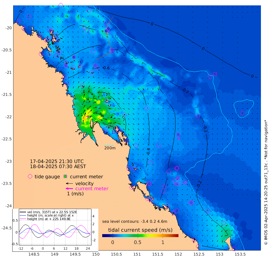 7cm/s 109T +10cm/s rms + 2cm/s 5T. Brampton I 18m 6cm/s 3T +9cm/s rms + 6cm/s 66T. Wigton I 38m 7cm/s -168T +7cm/s rms + 8cm/s 141T. Tern I 47m 1cm/s -26T +7cm/s rms + 12cm/s 54T. N Bugatti Rf 64m 2cm/s -176T +3cm/s rms + 13cm/s 178T. W Bugatti Rf 70m 5cm/s -143T +3cm/s rms + 3cm/s -130T. Creal Rf 69m 1cm/s -164T +7cm/s rms + 4cm/s 2T. North Rf 62m 5cm/s -150T +9cm/s rms + 2cm/s -56T. Cape Capricorn 26m 7cm/s -76T +5cm/s rms + 3cm/s 166T. L Musgrave I 42m 2cm/s -115T +9cm/s rms + 1cm/s -142T. Round Hill Hd 26m 3cm/s 145T +41cm/s rms + 48cm/s 116T. GBRELR 305m 7cm/s 162T +7cm/s rms + 6cm/s 123T. GBRCCH 92m 10cm/s -78T +8cm/s rms + 3cm/s -33T. GBRHIN 45m 9cm/s -98T +4cm/s rms + 2cm/s 41T. GBRHIS 46m 11cm/s -112T +16cm/s rms + 4cm/s -22T. GBROTE 59m -52cm Bell Cay 0cm Holbourne I -61cm Tern I -16cm Bugatti Rf -35cm Creal Rf -4cm White Tip I -27cm North Rf -39cm Rundle I -16cm L Musgrave I 9cm Saumarez Reef -1cm Kennedy Reef 5cm Unnamed Reef No. 2 7cm Abbot Point 1cm Bowen -9cm Tideway Reef -12cm Hayman Island -19cm Square Reef -2cm Double Bay -16cm Molle Island -25cm Cid Harbour -9cm Hook Island -22cm Border Island -21cm Haslewood Island -21cm Shute Harbour -39cm Thomas Island -41cm Credlin Reef -43cm East Repulse Island -50cm Blacksmith Island -49cm Laguna Quays -45cm Carlisle Island (Off) -47cm St. Bees Island -54cm Scawfell Island -64cm Penrith Island -72cm Mackay Outer Harbour -81cm Hay Point -70cm Prudhoe Island -93cm Middle Island (Percy Isles) -57cm Gannet Cay 2cm Elusive Reef -145cm Mcewin Islet -94cm Mumford Island -116cm Osborn Island -120cm Marquis Island -104cm Reef Point -70cm High Peak Island -66cm Port Clinton -46cm Peaked Island -23cm Karamea Bank -49cm Johnson Patch - NW -58cm Rosslyn Bay -51cm Middle Island (Keppel Isles) -71cm Port Alma -26cm Heron Island -27cm One Tree Islet -34cm Polmaise Reef -37cm Tryon Island -28cm Rock Cod Shoal -43cm Gatcombe Head -55cm Gladstone -48cm South Trees (Storm Surge) -28cm Clews Point -27cm Round Hill Head -12cm Lady Elliot Island -16cm Breaksea Spit -24cm Bundaberg (Burnett Heads) -26cm Elliot Heads -14cm Waddy Point (Fraser Island)