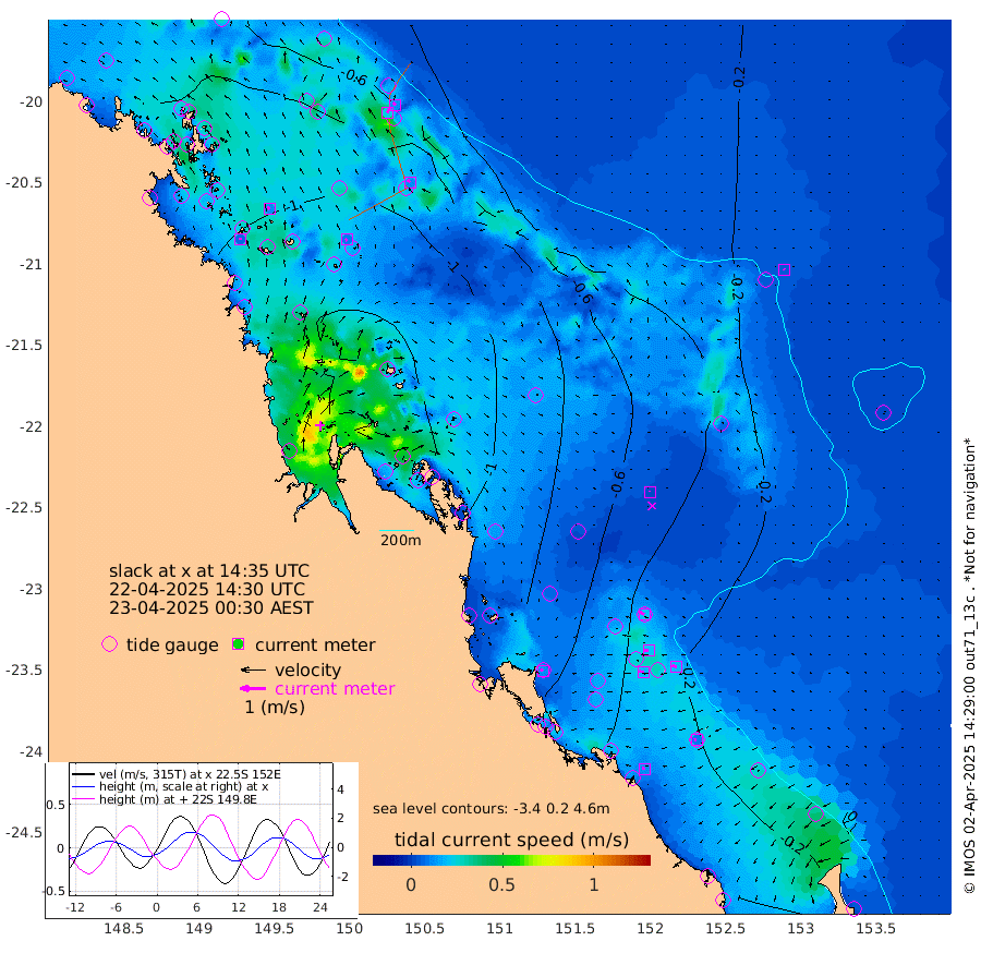 6cm/s -5T +10cm/s rms + 2cm/s 5T. Brampton I 18m 12cm/s -37T +9cm/s rms + 6cm/s 66T. Wigton I 38m 8cm/s -125T +7cm/s rms + 8cm/s 141T. Tern I 47m 12cm/s -37T +7cm/s rms + 12cm/s 54T. N Bugatti Rf 64m 24cm/s 26T +3cm/s rms + 13cm/s 178T. W Bugatti Rf 70m 12cm/s -47T +3cm/s rms + 3cm/s -130T. Creal Rf 69m 22cm/s -63T +7cm/s rms + 4cm/s 2T. North Rf 62m 13cm/s -60T +9cm/s rms + 2cm/s -56T. Cape Capricorn 26m 9cm/s -103T +5cm/s rms + 3cm/s 166T. L Musgrave I 42m 11cm/s -76T +9cm/s rms + 1cm/s -142T. Round Hill Hd 26m 4cm/s -52T +41cm/s rms + 48cm/s 116T. GBRELR 305m 3cm/s -2T +7cm/s rms + 6cm/s 123T. GBRCCH 92m 22cm/s -91T +8cm/s rms + 3cm/s -33T. GBRHIN 45m 19cm/s -87T +4cm/s rms + 2cm/s 41T. GBRHIS 46m 18cm/s -67T +16cm/s rms + 4cm/s -22T. GBROTE 59m -95cm Bell Cay -77cm Holbourne I -130cm Tern I -71cm Bugatti Rf -91cm Creal Rf -57cm White Tip I -43cm North Rf -63cm Rundle I -17cm L Musgrave I -20cm Saumarez Reef -67cm Kennedy Reef -53cm Unnamed Reef No. 2 -80cm Abbot Point -85cm Bowen -88cm Tideway Reef -95cm Hayman Island -111cm Square Reef -83cm Double Bay -94cm Molle Island -105cm Cid Harbour -81cm Hook Island -96cm Border Island -97cm Haslewood Island -100cm Shute Harbour -109cm Thomas Island -121cm Credlin Reef -125cm East Repulse Island -126cm Blacksmith Island -123cm Laguna Quays -127cm Carlisle Island (Off) -141cm St. Bees Island -132cm Scawfell Island -140cm Penrith Island -139cm Mackay Outer Harbour -148cm Hay Point -143cm Prudhoe Island -137cm Middle Island (Percy Isles) -82cm Gannet Cay -17cm Elusive Reef -170cm Mcewin Islet -168cm Mumford Island -177cm Osborn Island -180cm Marquis Island -163cm Reef Point -118cm High Peak Island -101cm Port Clinton -101cm Peaked Island -38cm Karamea Bank -63cm Johnson Patch - NW -91cm Rosslyn Bay -92cm Middle Island (Keppel Isles) -108cm Port Alma -35cm Heron Island -36cm One Tree Islet -45cm Polmaise Reef -45cm Tryon Island -45cm Rock Cod Shoal -59cm Gatcombe Head -75cm Gladstone -66cm South Trees (Storm Surge) -34cm Clews Point -27cm Round Hill Head -9cm Lady Elliot Island -4cm Breaksea Spit -33cm Bundaberg (Burnett Heads) -39cm Elliot Heads 1cm Waddy Point (Fraser Island)