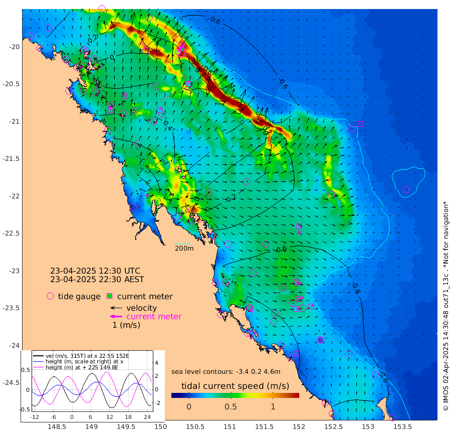 35cm/s -7T +10cm/s rms + 2cm/s 5T. Brampton I 18m 39cm/s -8T +9cm/s rms + 6cm/s 66T. Wigton I 38m 21cm/s 25T +7cm/s rms + 8cm/s 141T. Tern I 47m 50cm/s 18T +7cm/s rms + 12cm/s 54T. N Bugatti Rf 64m 64cm/s 35T +3cm/s rms + 13cm/s 178T. W Bugatti Rf 70m 27cm/s 16T +3cm/s rms + 3cm/s -130T. Creal Rf 69m 40cm/s 99T +7cm/s rms + 4cm/s 2T. North Rf 62m 38cm/s 146T +9cm/s rms + 2cm/s -56T. Cape Capricorn 26m 5cm/s 61T +5cm/s rms + 3cm/s 166T. L Musgrave I 42m 9cm/s 109T +9cm/s rms + 1cm/s -142T. Round Hill Hd 26m 5cm/s 45T +41cm/s rms + 48cm/s 116T. GBRELR 305m 29cm/s 106T +7cm/s rms + 6cm/s 123T. GBRCCH 92m 44cm/s 73T +8cm/s rms + 3cm/s -33T. GBRHIN 45m 25cm/s 84T +4cm/s rms + 2cm/s 41T. GBRHIS 46m 27cm/s 54T +16cm/s rms + 4cm/s -22T. GBROTE 59m -28cm Bell Cay -34cm Holbourne I 17cm Tern I -18cm Bugatti Rf 3cm Creal Rf -33cm White Tip I -71cm North Rf -90cm Rundle I -64cm L Musgrave I -50cm Saumarez Reef -43cm Kennedy Reef -52cm Unnamed Reef No. 2 -39cm Abbot Point -31cm Bowen -7cm Tideway Reef -26cm Hayman Island 6cm Square Reef -22cm Double Bay -9cm Molle Island -5cm Cid Harbour -13cm Hook Island -4cm Border Island 0cm Haslewood Island -3cm Shute Harbour 24cm Thomas Island 6cm Credlin Reef 17cm East Repulse Island 25cm Blacksmith Island 41cm Laguna Quays 12cm Carlisle Island (Off) 32cm St. Bees Island 26cm Scawfell Island 14cm Penrith Island 43cm Mackay Outer Harbour 44cm Hay Point 46cm Prudhoe Island 9cm Middle Island (Percy Isles) -33cm Gannet Cay -54cm Elusive Reef 105cm Mcewin Islet -13cm Mumford Island 0cm Osborn Island 1cm Marquis Island -9cm Reef Point -24cm High Peak Island -55cm Port Clinton -63cm Peaked Island -80cm Karamea Bank -69cm Johnson Patch - NW -84cm Rosslyn Bay -88cm Middle Island (Keppel Isles) -84cm Port Alma -75cm Heron Island -82cm One Tree Islet -80cm Polmaise Reef -69cm Tryon Island -92cm Rock Cod Shoal -79cm Gatcombe Head -82cm Gladstone -87cm South Trees (Storm Surge) -83cm Clews Point -74cm Round Hill Head -62cm Lady Elliot Island -60cm Breaksea Spit -82cm Bundaberg (Burnett Heads) -85cm Elliot Heads -44cm Waddy Point (Fraser Island)
