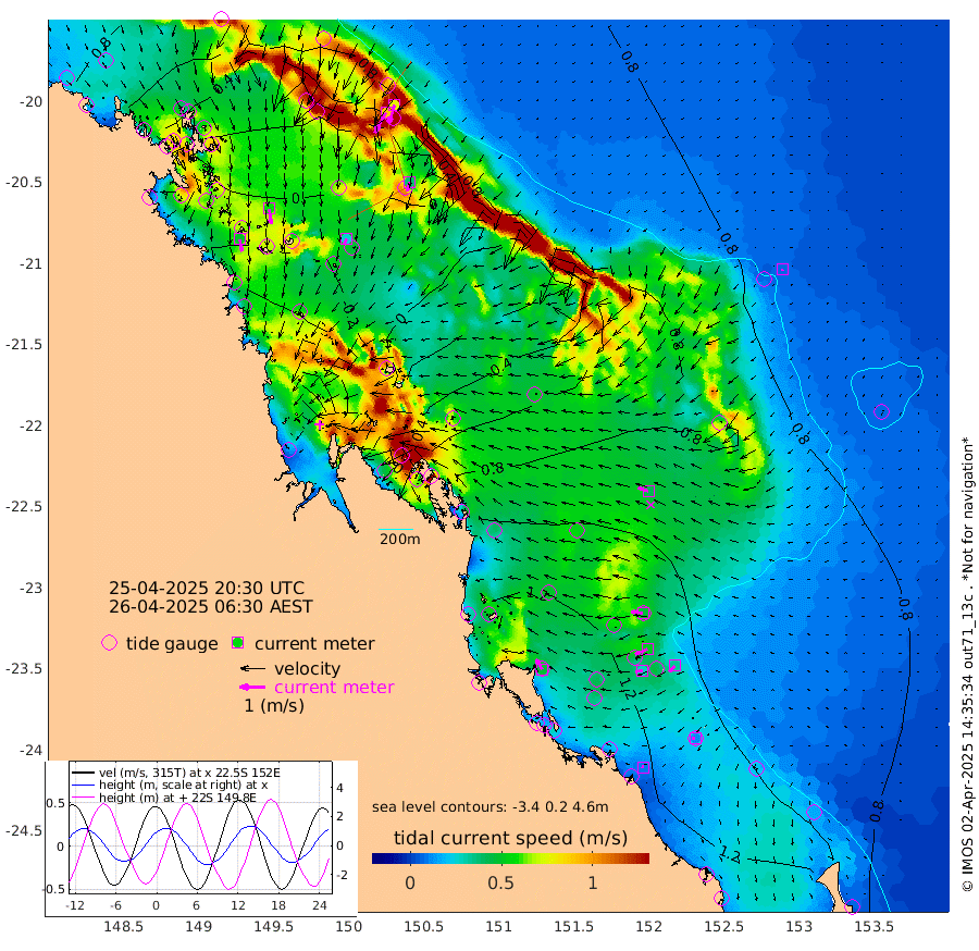 49cm/s 170T +10cm/s rms + 2cm/s 5T. Brampton I 18m 59cm/s 171T +9cm/s rms + 6cm/s 66T. Wigton I 38m 26cm/s -158T +7cm/s rms + 8cm/s 141T. Tern I 47m 76cm/s -163T +7cm/s rms + 12cm/s 54T. N Bugatti Rf 64m 90cm/s -150T +3cm/s rms + 13cm/s 178T. W Bugatti Rf 70m 37cm/s -170T +3cm/s rms + 3cm/s -130T. Creal Rf 69m 48cm/s -83T +7cm/s rms + 4cm/s 2T. North Rf 62m 47cm/s -31T +9cm/s rms + 2cm/s -56T. Cape Capricorn 26m 12cm/s -105T +5cm/s rms + 3cm/s 166T. L Musgrave I 42m 9cm/s -68T +9cm/s rms + 1cm/s -142T. Round Hill Hd 26m 6cm/s -148T +41cm/s rms + 48cm/s 116T. GBRELR 305m 42cm/s -72T +7cm/s rms + 6cm/s 123T. GBRCCH 92m 52cm/s -113T +8cm/s rms + 3cm/s -33T. GBRHIN 45m 29cm/s -98T +4cm/s rms + 2cm/s 41T. GBRHIS 46m 32cm/s -134T +16cm/s rms + 4cm/s -22T. GBROTE 59m 78cm Bell Cay 67cm Holbourne I 31cm Tern I 52cm Bugatti Rf 36cm Creal Rf 66cm White Tip I 116cm North Rf 148cm Rundle I 96cm L Musgrave I 81cm Saumarez Reef 73cm Kennedy Reef 85cm Unnamed Reef No. 2 72cm Abbot Point 63cm Bowen 38cm Tideway Reef 60cm Hayman Island 36cm Square Reef 61cm Double Bay 44cm Molle Island 35cm Cid Harbour 47cm Hook Island 25cm Border Island 27cm Haslewood Island 35cm Shute Harbour 10cm Thomas Island 32cm Credlin Reef 13cm East Repulse Island 2cm Blacksmith Island -11cm Laguna Quays 23cm Carlisle Island (Off) 8cm St. Bees Island 10cm Scawfell Island 32cm Penrith Island -3cm Mackay Outer Harbour 1cm Hay Point 12cm Prudhoe Island 56cm Middle Island (Percy Isles) 77cm Gannet Cay 75cm Elusive Reef -93cm Mcewin Islet 85cm Mumford Island 53cm Osborn Island 54cm Marquis Island 60cm Reef Point 79cm High Peak Island 124cm Port Clinton 140cm Peaked Island 126cm Karamea Bank 131cm Johnson Patch - NW 151cm Rosslyn Bay 158cm Middle Island (Keppel Isles) 155cm Port Alma 120cm Heron Island 130cm One Tree Islet 131cm Polmaise Reef 115cm Tryon Island 139cm Rock Cod Shoal 135cm Gatcombe Head 140cm Gladstone 144cm South Trees (Storm Surge) 129cm Clews Point 115cm Round Hill Head 94cm Lady Elliot Island 87cm Breaksea Spit 122cm Bundaberg (Burnett Heads) 128cm Elliot Heads 68cm Waddy Point (Fraser Island)