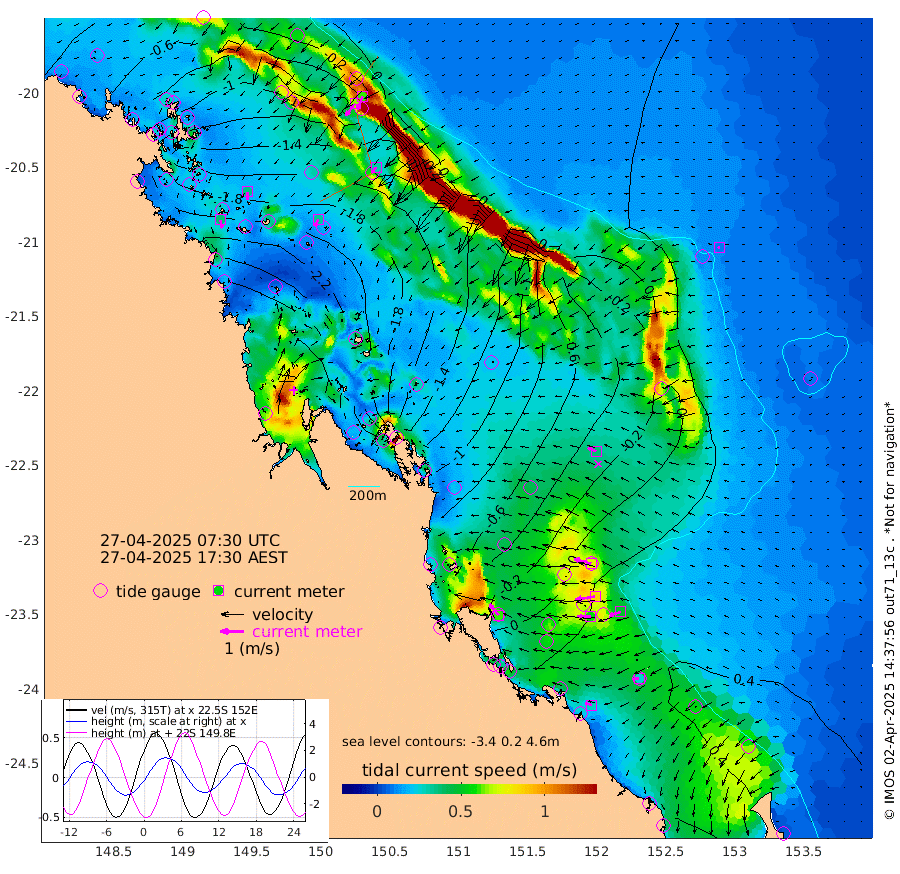 37cm/s 169T +10cm/s rms + 2cm/s 5T. Brampton I 18m 34cm/s 179T +9cm/s rms + 6cm/s 66T. Wigton I 38m 33cm/s -148T +7cm/s rms + 8cm/s 141T. Tern I 47m 60cm/s -156T +7cm/s rms + 12cm/s 54T. N Bugatti Rf 64m 65cm/s -142T +3cm/s rms + 13cm/s 178T. W Bugatti Rf 70m 30cm/s -145T +3cm/s rms + 3cm/s -130T. Creal Rf 69m 76cm/s -74T +7cm/s rms + 4cm/s 2T. North Rf 62m 61cm/s -39T +9cm/s rms + 2cm/s -56T. Cape Capricorn 26m 25cm/s -99T +5cm/s rms + 3cm/s 166T. L Musgrave I 42m 28cm/s -74T +9cm/s rms + 1cm/s -142T. Round Hill Hd 26m 8cm/s -110T +41cm/s rms + 48cm/s 116T. GBRELR 305m 38cm/s -67T +7cm/s rms + 6cm/s 123T. GBRCCH 92m 87cm/s -99T +8cm/s rms + 3cm/s -33T. GBRHIN 45m 56cm/s -91T +4cm/s rms + 2cm/s 41T. GBRHIS 46m 49cm/s -107T +16cm/s rms + 4cm/s -22T. GBROTE 59m -99cm Bell Cay -60cm Holbourne I -190cm Tern I -75cm Bugatti Rf -125cm Creal Rf -39cm White Tip I 15cm North Rf 11cm Rundle I 38cm L Musgrave I 28cm Saumarez Reef -31cm Kennedy Reef -13cm Unnamed Reef No. 2 -55cm Abbot Point -71cm Bowen -103cm Tideway Reef -85cm Hayman Island -141cm Square Reef -91cm Double Bay -128cm Molle Island -130cm Cid Harbour -96cm Hook Island -119cm Border Island -136cm Haslewood Island -127cm Shute Harbour -172cm Thomas Island -164cm Credlin Reef -194cm East Repulse Island -193cm Blacksmith Island -214cm Laguna Quays -193cm Carlisle Island (Off) -220cm St. Bees Island -201cm Scawfell Island -202cm Penrith Island -239cm Mackay Outer Harbour -252cm Hay Point -237cm Prudhoe Island -203cm Middle Island (Percy Isles) -85cm Gannet Cay 28cm Elusive Reef -378cm Mcewin Islet -187cm Mumford Island -232cm Osborn Island -248cm Marquis Island -211cm Reef Point -140cm High Peak Island -83cm Port Clinton -52cm Peaked Island 28cm Karamea Bank -18cm Johnson Patch - NW -34cm Rosslyn Bay -27cm Middle Island (Keppel Isles) -59cm Port Alma 22cm Heron Island 41cm One Tree Islet 25cm Polmaise Reef 7cm Tryon Island 27cm Rock Cod Shoal -3cm Gatcombe Head -22cm Gladstone -5cm South Trees (Storm Surge) 45cm Clews Point 35cm Round Hill Head 43cm Lady Elliot Island 48cm Breaksea Spit 33cm Bundaberg (Burnett Heads) 29cm Elliot Heads 39cm Waddy Point (Fraser Island)