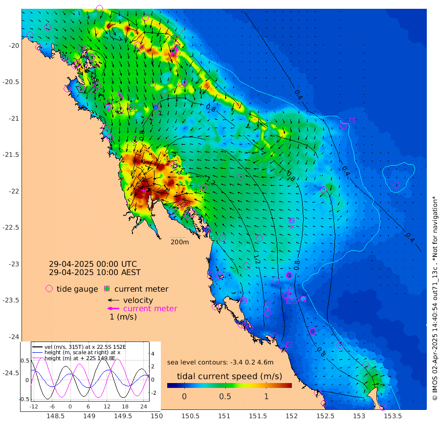 29cm/s 165T +10cm/s rms + 2cm/s 5T. Brampton I 18m 42cm/s 165T +9cm/s rms + 6cm/s 66T. Wigton I 38m 7cm/s 152T +7cm/s rms + 8cm/s 141T. Tern I 47m 39cm/s -169T +7cm/s rms + 12cm/s 54T. N Bugatti Rf 64m 49cm/s -156T +3cm/s rms + 13cm/s 178T. W Bugatti Rf 70m 21cm/s 159T +3cm/s rms + 3cm/s -130T. Creal Rf 69m 5cm/s -100T +7cm/s rms + 4cm/s 2T. North Rf 62m 15cm/s -10T +9cm/s rms + 2cm/s -56T. Cape Capricorn 26m 3cm/s -68T +5cm/s rms + 3cm/s 166T. L Musgrave I 42m 5cm/s 87T +9cm/s rms + 1cm/s -142T. Round Hill Hd 26m 5cm/s 156T +41cm/s rms + 48cm/s 116T. GBRELR 305m 17cm/s -75T +7cm/s rms + 6cm/s 123T. GBRCCH 92m 12cm/s 179T +8cm/s rms + 3cm/s -33T. GBRHIN 45m 6cm/s 108T +4cm/s rms + 2cm/s 41T. GBRHIS 46m 16cm/s 151T +16cm/s rms + 4cm/s -22T. GBROTE 59m 117cm Bell Cay 63cm Holbourne I 120cm Tern I 62cm Bugatti Rf 85cm Creal Rf 49cm White Tip I 86cm North Rf 122cm Rundle I 55cm L Musgrave I 46cm Saumarez Reef 52cm Kennedy Reef 50cm Unnamed Reef No. 2 56cm Abbot Point 59cm Bowen 58cm Tideway Reef 65cm Hayman Island 78cm Square Reef 74cm Double Bay 58cm Molle Island 71cm Cid Harbour 65cm Hook Island 56cm Border Island 69cm Haslewood Island 71cm Shute Harbour 80cm Thomas Island 94cm Credlin Reef 88cm East Repulse Island 84cm Blacksmith Island 84cm Laguna Quays 100cm Carlisle Island (Off) 115cm St. Bees Island 101cm Scawfell Island 115cm Penrith Island 113cm Mackay Outer Harbour 126cm Hay Point 136cm Prudhoe Island 165cm Middle Island (Percy Isles) 110cm Gannet Cay 26cm Elusive Reef 127cm Mcewin Islet 176cm Mumford Island 169cm Osborn Island 185cm Marquis Island 164cm Reef Point 143cm High Peak Island 161cm Port Clinton 158cm Peaked Island 88cm Karamea Bank 126cm Johnson Patch - NW 153cm Rosslyn Bay 155cm Middle Island (Keppel Isles) 176cm Port Alma 85cm Heron Island 84cm One Tree Islet 100cm Polmaise Reef 86cm Tryon Island 99cm Rock Cod Shoal 118cm Gatcombe Head 139cm Gladstone 131cm South Trees (Storm Surge) 85cm Clews Point 78cm Round Hill Head 50cm Lady Elliot Island 38cm Breaksea Spit 88cm Bundaberg (Burnett Heads) 95cm Elliot Heads 27cm Waddy Point (Fraser Island)