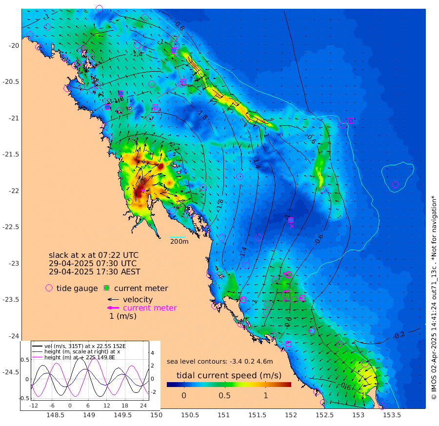 6cm/s 143T +10cm/s rms + 2cm/s 5T. Brampton I 18m 7cm/s -68T +9cm/s rms + 6cm/s 66T. Wigton I 38m 17cm/s -142T +7cm/s rms + 8cm/s 141T. Tern I 47m 18cm/s -130T +7cm/s rms + 12cm/s 54T. N Bugatti Rf 64m 10cm/s -103T +3cm/s rms + 13cm/s 178T. W Bugatti Rf 70m 14cm/s -103T +3cm/s rms + 3cm/s -130T. Creal Rf 69m 48cm/s -71T +7cm/s rms + 4cm/s 2T. North Rf 62m 31cm/s -48T +9cm/s rms + 2cm/s -56T. Cape Capricorn 26m 21cm/s -91T +5cm/s rms + 3cm/s 166T. L Musgrave I 42m 24cm/s -71T +9cm/s rms + 1cm/s -142T. Round Hill Hd 26m 5cm/s -86T +41cm/s rms + 48cm/s 116T. GBRELR 305m 10cm/s -47T +7cm/s rms + 6cm/s 123T. GBRCCH 92m 54cm/s -93T +8cm/s rms + 3cm/s -33T. GBRHIN 45m 39cm/s -88T +4cm/s rms + 2cm/s 41T. GBRHIS 46m 33cm/s -83T +16cm/s rms + 4cm/s -22T. GBROTE 59m -156cm Bell Cay -108cm Holbourne I -218cm Tern I -113cm Bugatti Rf -155cm Creal Rf -85cm White Tip I -66cm North Rf -92cm Rundle I -30cm L Musgrave I -29cm Saumarez Reef -87cm Kennedy Reef -73cm Unnamed Reef No. 2 -102cm Abbot Point -114cm Bowen -132cm Tideway Reef -124cm Hayman Island -166cm Square Reef -139cm Double Bay -154cm Molle Island -155cm Cid Harbour -133cm Hook Island -140cm Border Island -154cm Haslewood Island -154cm Shute Harbour -185cm Thomas Island -192cm Credlin Reef -208cm East Repulse Island -202cm Blacksmith Island -213cm Laguna Quays -213cm Carlisle Island (Off) -239cm St. Bees Island -209cm Scawfell Island -223cm Penrith Island -245cm Mackay Outer Harbour -261cm Hay Point -254cm Prudhoe Island -254cm Middle Island (Percy Isles) -142cm Gannet Cay -28cm Elusive Reef -343cm Mcewin Islet -247cm Mumford Island -275cm Osborn Island -294cm Marquis Island -261cm Reef Point -200cm High Peak Island -176cm Port Clinton -152cm Peaked Island -61cm Karamea Bank -113cm Johnson Patch - NW -141cm Rosslyn Bay -138cm Middle Island (Keppel Isles) -172cm Port Alma -62cm Heron Island -50cm One Tree Islet -68cm Polmaise Reef -76cm Tryon Island -71cm Rock Cod Shoal -96cm Gatcombe Head -124cm Gladstone -108cm South Trees (Storm Surge) -46cm Clews Point -47cm Round Hill Head -23cm Lady Elliot Island -17cm Breaksea Spit -56cm Bundaberg (Burnett Heads) -61cm Elliot Heads -8cm Waddy Point (Fraser Island)
