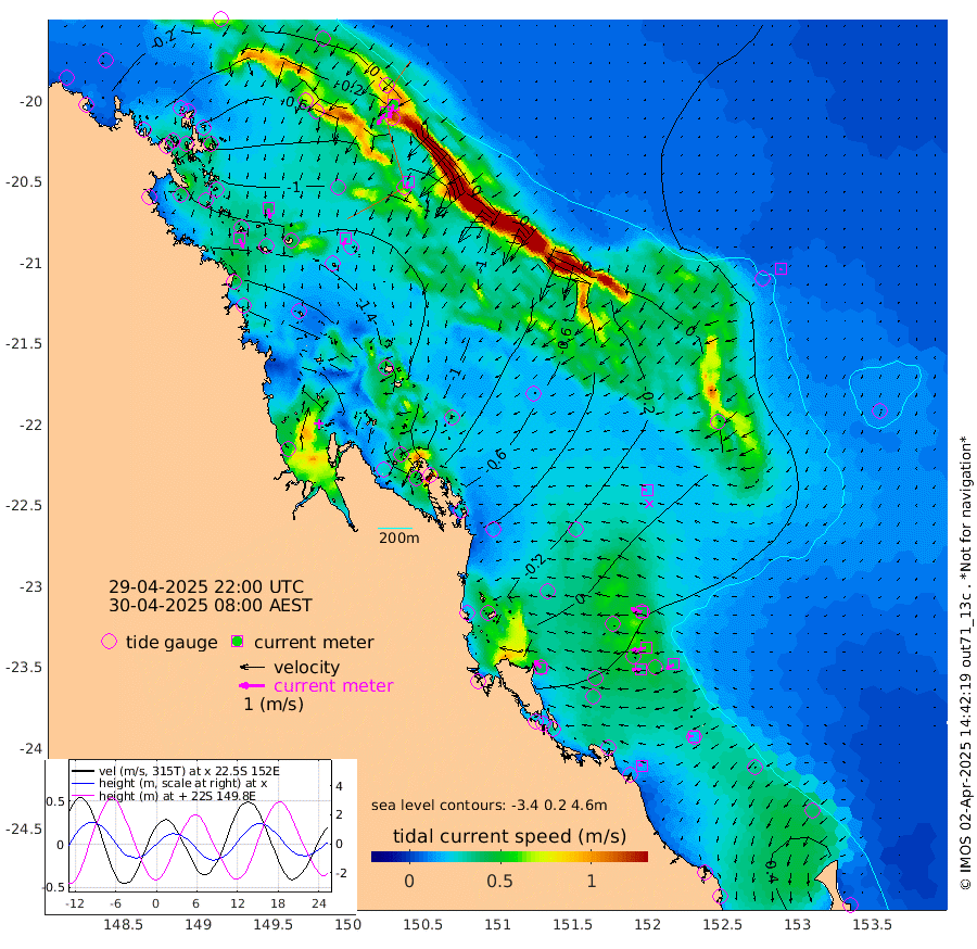 40cm/s 156T +10cm/s rms + 2cm/s 5T. Brampton I 18m 39cm/s 171T +9cm/s rms + 6cm/s 66T. Wigton I 38m 28cm/s -162T +7cm/s rms + 8cm/s 141T. Tern I 47m 54cm/s -156T +7cm/s rms + 12cm/s 54T. N Bugatti Rf 64m 56cm/s -147T +3cm/s rms + 13cm/s 178T. W Bugatti Rf 70m 28cm/s -162T +3cm/s rms + 3cm/s -130T. Creal Rf 69m 44cm/s -74T +7cm/s rms + 4cm/s 2T. North Rf 62m 39cm/s -41T +9cm/s rms + 2cm/s -56T. Cape Capricorn 26m 19cm/s -87T +5cm/s rms + 3cm/s 166T. L Musgrave I 42m 16cm/s -74T +9cm/s rms + 1cm/s -142T. Round Hill Hd 26m 6cm/s -161T +41cm/s rms + 48cm/s 116T. GBRELR 305m 21cm/s -83T +7cm/s rms + 6cm/s 123T. GBRCCH 92m 56cm/s -101T +8cm/s rms + 3cm/s -33T. GBRHIN 45m 36cm/s -94T +4cm/s rms + 2cm/s 41T. GBRHIS 46m 35cm/s -122T +16cm/s rms + 4cm/s -22T. GBROTE 59m -50cm Bell Cay -22cm Holbourne I -111cm Tern I -38cm Bugatti Rf -69cm Creal Rf -16cm White Tip I 18cm North Rf 24cm Rundle I 28cm L Musgrave I 35cm Saumarez Reef -3cm Kennedy Reef 1cm Unnamed Reef No. 2 -20cm Abbot Point -32cm Bowen -58cm Tideway Reef -45cm Hayman Island -73cm Square Reef -49cm Double Bay -71cm Molle Island -70cm Cid Harbour -53cm Hook Island -70cm Border Island -76cm Haslewood Island -72cm Shute Harbour -104cm Thomas Island -100cm Credlin Reef -126cm East Repulse Island -112cm Blacksmith Island -134cm Laguna Quays -120cm Carlisle Island (Off) -129cm St. Bees Island -118cm Scawfell Island -118cm Penrith Island -151cm Mackay Outer Harbour -158cm Hay Point -142cm Prudhoe Island -110cm Middle Island (Percy Isles) -45cm Gannet Cay 15cm Elusive Reef -270cm Mcewin Islet -93cm Mumford Island -138cm Osborn Island -148cm Marquis Island -124cm Reef Point -73cm High Peak Island -34cm Port Clinton -5cm Peaked Island 26cm Karamea Bank 10cm Johnson Patch - NW 0cm Rosslyn Bay 5cm Middle Island (Keppel Isles) -11cm Port Alma 25cm Heron Island 35cm One Tree Islet 32cm Polmaise Reef 11cm Tryon Island 25cm Rock Cod Shoal 16cm Gatcombe Head 7cm Gladstone 17cm South Trees (Storm Surge) 40cm Clews Point 31cm Round Hill Head 30cm Lady Elliot Island 27cm Breaksea Spit 38cm Bundaberg (Burnett Heads) 43cm Elliot Heads 17cm Waddy Point (Fraser Island)
