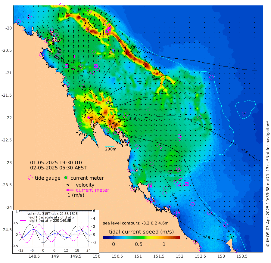 28cm/s -6T +10cm/s rms + 2cm/s 5T. Brampton I 18m 40cm/s -8T +9cm/s rms + 6cm/s 66T. Wigton I 38m 13cm/s 28T +7cm/s rms + 8cm/s 141T. Tern I 47m 47cm/s 20T +7cm/s rms + 12cm/s 54T. N Bugatti Rf 64m 48cm/s 31T +3cm/s rms + 13cm/s 178T. W Bugatti Rf 70m 16cm/s 9T +3cm/s rms + 3cm/s -130T. Creal Rf 69m 40cm/s 107T +7cm/s rms + 4cm/s 2T. North Rf 62m 37cm/s 151T +9cm/s rms + 2cm/s -56T. Cape Capricorn 26m 14cm/s 84T +5cm/s rms + 3cm/s 166T. L Musgrave I 42m 11cm/s 114T +9cm/s rms + 1cm/s -142T. Round Hill Hd 26m 4cm/s 73T +41cm/s rms + 48cm/s 116T. GBRELR 305m 28cm/s 120T +7cm/s rms + 6cm/s 123T. GBRCCH 92m 37cm/s 68T +8cm/s rms + 3cm/s -33T. GBRHIN 45m 18cm/s 86T +4cm/s rms + 2cm/s 41T. GBRHIS 46m 15cm/s 45T +16cm/s rms + 4cm/s -22T. GBROTE 59m -38cm Bell Cay 13cm Holbourne I 2cm Tern I 7cm Bugatti Rf 4cm Creal Rf 5cm White Tip I -62cm North Rf -85cm Rundle I -52cm L Musgrave I -25cm Saumarez Reef 7cm Kennedy Reef 1cm Unnamed Reef No. 2 24cm Abbot Point 27cm Bowen 32cm Tideway Reef 21cm Hayman Island 34cm Square Reef 13cm Double Bay 46cm Molle Island 33cm Cid Harbour 20cm Hook Island 38cm Border Island 35cm Haslewood Island 30cm Shute Harbour 29cm Thomas Island 23cm Credlin Reef 41cm East Repulse Island 36cm Blacksmith Island 43cm Laguna Quays 31cm Carlisle Island (Off) 23cm St. Bees Island 22cm Scawfell Island 15cm Penrith Island 22cm Mackay Outer Harbour 15cm Hay Point 1cm Prudhoe Island -46cm Middle Island (Percy Isles) -45cm Gannet Cay -14cm Elusive Reef 29cm Mcewin Islet -48cm Mumford Island -29cm Osborn Island -37cm Marquis Island -30cm Reef Point -41cm High Peak Island -82cm Port Clinton -82cm Peaked Island -66cm Karamea Bank -85cm Johnson Patch - NW -90cm Rosslyn Bay -90cm Middle Island (Keppel Isles) -97cm Port Alma -66cm Heron Island -75cm One Tree Islet -80cm Polmaise Reef -63cm Tryon Island -71cm Rock Cod Shoal -80cm Gatcombe Head -89cm Gladstone -89cm South Trees (Storm Surge) -77cm Clews Point -69cm Round Hill Head -52cm Lady Elliot Island -50cm Breaksea Spit -70cm Bundaberg (Burnett Heads) -73cm Elliot Heads -40cm Waddy Point (Fraser Island)