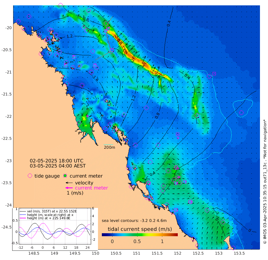 23cm/s -29T +10cm/s rms + 2cm/s 5T. Brampton I 18m 23cm/s -5T +9cm/s rms + 6cm/s 66T. Wigton I 38m 18cm/s 19T +7cm/s rms + 8cm/s 141T. Tern I 47m 33cm/s 32T +7cm/s rms + 12cm/s 54T. N Bugatti Rf 64m 23cm/s 39T +3cm/s rms + 13cm/s 178T. W Bugatti Rf 70m 12cm/s 27T +3cm/s rms + 3cm/s -130T. Creal Rf 69m 45cm/s 114T +7cm/s rms + 4cm/s 2T. North Rf 62m 33cm/s 137T +9cm/s rms + 2cm/s -56T. Cape Capricorn 26m 24cm/s 96T +5cm/s rms + 3cm/s 166T. L Musgrave I 42m 21cm/s 112T +9cm/s rms + 1cm/s -142T. Round Hill Hd 26m 4cm/s 48T +41cm/s rms + 48cm/s 116T. GBRELR 305m 10cm/s 121T +7cm/s rms + 6cm/s 123T. GBRCCH 92m 45cm/s 77T +8cm/s rms + 3cm/s -33T. GBRHIN 45m 28cm/s 91T +4cm/s rms + 2cm/s 41T. GBRHIS 46m 20cm/s 76T +16cm/s rms + 4cm/s -22T. GBROTE 59m 93cm Bell Cay 100cm Holbourne I 151cm Tern I 95cm Bugatti Rf 113cm Creal Rf 80cm White Tip I 31cm North Rf 35cm Rundle I 12cm L Musgrave I 16cm Saumarez Reef 79cm Kennedy Reef 75cm Unnamed Reef No. 2 102cm Abbot Point 110cm Bowen 123cm Tideway Reef 115cm Hayman Island 140cm Square Reef 128cm Double Bay 150cm Molle Island 127cm Cid Harbour 122cm Hook Island 125cm Border Island 130cm Haslewood Island 133cm Shute Harbour 146cm Thomas Island 152cm Credlin Reef 172cm East Repulse Island 150cm Blacksmith Island 170cm Laguna Quays 170cm Carlisle Island (Off) 169cm St. Bees Island 150cm Scawfell Island 164cm Penrith Island 180cm Mackay Outer Harbour 185cm Hay Point 176cm Prudhoe Island 147cm Middle Island (Percy Isles) 82cm Gannet Cay 39cm Elusive Reef 243cm Mcewin Islet 139cm Mumford Island 165cm Osborn Island 171cm Marquis Island 154cm Reef Point 116cm High Peak Island 89cm Port Clinton 69cm Peaked Island 28cm Karamea Bank 44cm Johnson Patch - NW 61cm Rosslyn Bay 60cm Middle Island (Keppel Isles) 72cm Port Alma 24cm Heron Island 19cm One Tree Islet 20cm Polmaise Reef 34cm Tryon Island 33cm Rock Cod Shoal 37cm Gatcombe Head 47cm Gladstone 38cm South Trees (Storm Surge) 9cm Clews Point 12cm Round Hill Head 8cm Lady Elliot Island 8cm Breaksea Spit 13cm Bundaberg (Burnett Heads) 9cm Elliot Heads 7cm Waddy Point (Fraser Island)
