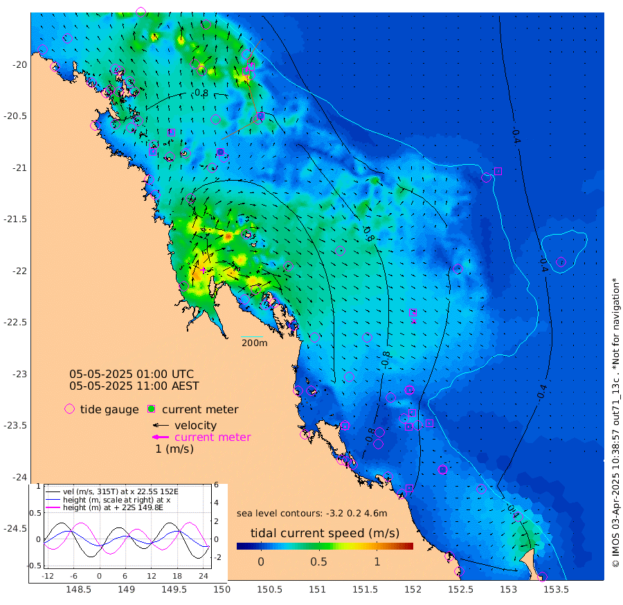 11cm/s 39T +10cm/s rms + 2cm/s 5T. Brampton I 18m 14cm/s -10T +9cm/s rms + 6cm/s 66T. Wigton I 38m 2cm/s 153T +7cm/s rms + 8cm/s 141T. Tern I 47m 26cm/s 9T +7cm/s rms + 12cm/s 54T. N Bugatti Rf 64m 35cm/s 23T +3cm/s rms + 13cm/s 178T. W Bugatti Rf 70m 6cm/s -12T +3cm/s rms + 3cm/s -130T. Creal Rf 69m 7cm/s 71T +7cm/s rms + 4cm/s 2T. North Rf 62m 10cm/s -173T +9cm/s rms + 2cm/s -56T. Cape Capricorn 26m 2cm/s -18T +5cm/s rms + 3cm/s 166T. L Musgrave I 42m 5cm/s -72T +9cm/s rms + 1cm/s -142T. Round Hill Hd 26m 2cm/s 126T +41cm/s rms + 48cm/s 116T. GBRELR 305m 18cm/s 120T +7cm/s rms + 6cm/s 123T. GBRCCH 92m 8cm/s -20T +8cm/s rms + 3cm/s -33T. GBRHIN 45m 5cm/s -84T +4cm/s rms + 2cm/s 41T. GBRHIS 46m 7cm/s -82T +16cm/s rms + 4cm/s -22T. GBROTE 59m -96cm Bell Cay -77cm Holbourne I -111cm Tern I -73cm Bugatti Rf -83cm Creal Rf -67cm White Tip I -73cm North Rf -93cm Rundle I -50cm L Musgrave I -29cm Saumarez Reef -66cm Kennedy Reef -70cm Unnamed Reef No. 2 -76cm Abbot Point -78cm Bowen -79cm Tideway Reef -87cm Hayman Island -87cm Square Reef -104cm Double Bay -95cm Molle Island -77cm Cid Harbour -84cm Hook Island -69cm Border Island -75cm Haslewood Island -86cm Shute Harbour -91cm Thomas Island -99cm Credlin Reef -101cm East Repulse Island -85cm Blacksmith Island -95cm Laguna Quays -103cm Carlisle Island (Off) -104cm St. Bees Island -93cm Scawfell Island -113cm Penrith Island -114cm Mackay Outer Harbour -123cm Hay Point -129cm Prudhoe Island -137cm Middle Island (Percy Isles) -91cm Gannet Cay -47cm Elusive Reef -132cm Mcewin Islet -140cm Mumford Island -136cm Osborn Island -140cm Marquis Island -131cm Reef Point -114cm High Peak Island -125cm Port Clinton -115cm Peaked Island -75cm Karamea Bank -95cm Johnson Patch - NW -113cm Rosslyn Bay -115cm Middle Island (Keppel Isles) -122cm Port Alma -69cm Heron Island -75cm One Tree Islet -77cm Polmaise Reef -77cm Tryon Island -81cm Rock Cod Shoal -87cm Gatcombe Head -95cm Gladstone -91cm South Trees (Storm Surge) -68cm Clews Point -59cm Round Hill Head -45cm Lady Elliot Island -47cm Breaksea Spit -58cm Bundaberg (Burnett Heads) -56cm Elliot Heads -38cm Waddy Point (Fraser Island)