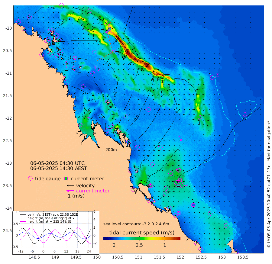 24cm/s 167T +10cm/s rms + 2cm/s 5T. Brampton I 18m 23cm/s 178T +9cm/s rms + 6cm/s 66T. Wigton I 38m 19cm/s -150T +7cm/s rms + 8cm/s 141T. Tern I 47m 34cm/s -154T +7cm/s rms + 12cm/s 54T. N Bugatti Rf 64m 33cm/s -136T +3cm/s rms + 13cm/s 178T. W Bugatti Rf 70m 18cm/s -141T +3cm/s rms + 3cm/s -130T. Creal Rf 69m 40cm/s -71T +7cm/s rms + 4cm/s 2T. North Rf 62m 37cm/s -39T +9cm/s rms + 2cm/s -56T. Cape Capricorn 26m 8cm/s -83T +5cm/s rms + 3cm/s 166T. L Musgrave I 42m 18cm/s -68T +9cm/s rms + 1cm/s -142T. Round Hill Hd 26m 4cm/s -117T +41cm/s rms + 48cm/s 116T. GBRELR 305m 14cm/s -68T +7cm/s rms + 6cm/s 123T. GBRCCH 92m 46cm/s -99T +8cm/s rms + 3cm/s -33T. GBRHIN 45m 28cm/s -91T +4cm/s rms + 2cm/s 41T. GBRHIS 46m 24cm/s -114T +16cm/s rms + 4cm/s -22T. GBROTE 59m -71cm Bell Cay -63cm Holbourne I -129cm Tern I -71cm Bugatti Rf -96cm Creal Rf -52cm White Tip I -10cm North Rf -10cm Rundle I 4cm L Musgrave I -11cm Saumarez Reef -37cm Kennedy Reef -40cm Unnamed Reef No. 2 -68cm Abbot Point -76cm Bowen -94cm Tideway Reef -80cm Hayman Island -119cm Square Reef -94cm Double Bay -107cm Molle Island -104cm Cid Harbour -84cm Hook Island -94cm Border Island -108cm Haslewood Island -104cm Shute Harbour -126cm Thomas Island -126cm Credlin Reef -142cm East Repulse Island -131cm Blacksmith Island -147cm Laguna Quays -139cm Carlisle Island (Off) -155cm St. Bees Island -137cm Scawfell Island -136cm Penrith Island -156cm Mackay Outer Harbour -162cm Hay Point -161cm Prudhoe Island -120cm Middle Island (Percy Isles) -54cm Gannet Cay -10cm Elusive Reef -198cm Mcewin Islet -113cm Mumford Island -130cm Osborn Island -140cm Marquis Island -124cm Reef Point -92cm High Peak Island -58cm Port Clinton -54cm Peaked Island -6cm Karamea Bank -21cm Johnson Patch - NW -32cm Rosslyn Bay -35cm Middle Island (Keppel Isles) -41cm Port Alma -5cm Heron Island 6cm One Tree Islet 1cm Polmaise Reef -13cm Tryon Island -7cm Rock Cod Shoal -12cm Gatcombe Head -19cm Gladstone -11cm South Trees (Storm Surge) 13cm Clews Point 7cm Round Hill Head 6cm Lady Elliot Island 12cm Breaksea Spit 10cm Bundaberg (Burnett Heads) 10cm Elliot Heads 4cm Waddy Point (Fraser Island)