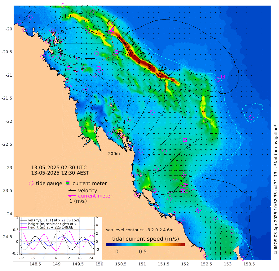 27cm/s -7T +10cm/s rms + 2cm/s 5T. Brampton I 18m 28cm/s -4T +9cm/s rms + 6cm/s 66T. Wigton I 38m 22cm/s 34T +7cm/s rms + 8cm/s 141T. Tern I 47m 40cm/s 18T +7cm/s rms + 12cm/s 54T. N Bugatti Rf 64m 48cm/s 35T +3cm/s rms + 13cm/s 178T. W Bugatti Rf 70m 24cm/s 22T +3cm/s rms + 3cm/s -130T. Creal Rf 69m 36cm/s 96T +7cm/s rms + 4cm/s 2T. North Rf 62m 31cm/s 140T +9cm/s rms + 2cm/s -56T. Cape Capricorn 26m 11cm/s 64T +5cm/s rms + 3cm/s 166T. L Musgrave I 42m 9cm/s 82T +9cm/s rms + 1cm/s -142T. Round Hill Hd 26m 5cm/s 61T +41cm/s rms + 48cm/s 116T. GBRELR 305m 28cm/s 105T +7cm/s rms + 6cm/s 123T. GBRCCH 92m 46cm/s 73T +8cm/s rms + 3cm/s -33T. GBRHIN 45m 29cm/s 88T +4cm/s rms + 2cm/s 41T. GBRHIS 46m 28cm/s 69T +16cm/s rms + 4cm/s -22T. GBROTE 59m -6cm Bell Cay -27cm Holbourne I 39cm Tern I -21cm Bugatti Rf 7cm Creal Rf -41cm White Tip I -63cm North Rf -67cm Rundle I -64cm L Musgrave I -61cm Saumarez Reef -44cm Kennedy Reef -55cm Unnamed Reef No. 2 -40cm Abbot Point -31cm Bowen -9cm Tideway Reef -25cm Hayman Island 1cm Square Reef -14cm Double Bay -9cm Molle Island -5cm Cid Harbour -11cm Hook Island -1cm Border Island 5cm Haslewood Island 2cm Shute Harbour 31cm Thomas Island 15cm Credlin Reef 29cm East Repulse Island 29cm Blacksmith Island 52cm Laguna Quays 29cm Carlisle Island (Off) 30cm St. Bees Island 29cm Scawfell Island 33cm Penrith Island 65cm Mackay Outer Harbour 71cm Hay Point 72cm Prudhoe Island 50cm Middle Island (Percy Isles) -5cm Gannet Cay -62cm Elusive Reef 163cm Mcewin Islet 22cm Mumford Island 44cm Osborn Island 48cm Marquis Island 33cm Reef Point 10cm High Peak Island -15cm Port Clinton -39cm Peaked Island -69cm Karamea Bank -51cm Johnson Patch - NW -50cm Rosslyn Bay -56cm Middle Island (Keppel Isles) -41cm Port Alma -69cm Heron Island -74cm One Tree Islet -66cm Polmaise Reef -68cm Tryon Island -75cm Rock Cod Shoal -56cm Gatcombe Head -50cm Gladstone -59cm South Trees (Storm Surge) -74cm Clews Point -67cm Round Hill Head -66cm Lady Elliot Island -68cm Breaksea Spit -68cm Bundaberg (Burnett Heads) -75cm Elliot Heads -55cm Waddy Point (Fraser Island)