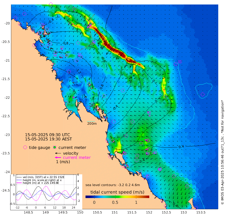 24cm/s 174T +10cm/s rms + 2cm/s 5T. Brampton I 18m 27cm/s 177T +9cm/s rms + 6cm/s 66T. Wigton I 38m 20cm/s -150T +7cm/s rms + 8cm/s 141T. Tern I 47m 42cm/s -156T +7cm/s rms + 12cm/s 54T. N Bugatti Rf 64m 46cm/s -146T +3cm/s rms + 13cm/s 178T. W Bugatti Rf 70m 19cm/s -158T +3cm/s rms + 3cm/s -130T. Creal Rf 69m 53cm/s -74T +7cm/s rms + 4cm/s 2T. North Rf 62m 40cm/s -37T +9cm/s rms + 2cm/s -56T. Cape Capricorn 26m 23cm/s -100T +5cm/s rms + 3cm/s 166T. L Musgrave I 42m 18cm/s -75T +9cm/s rms + 1cm/s -142T. Round Hill Hd 26m 6cm/s -104T +41cm/s rms + 48cm/s 116T. GBRELR 305m 30cm/s -64T +7cm/s rms + 6cm/s 123T. GBRCCH 92m 54cm/s -102T +8cm/s rms + 3cm/s -33T. GBRHIN 45m 33cm/s -92T +4cm/s rms + 2cm/s 41T. GBRHIS 46m 28cm/s -107T +16cm/s rms + 4cm/s -22T. GBROTE 59m -31cm Bell Cay -27cm Holbourne I -86cm Tern I -27cm Bugatti Rf -52cm Creal Rf -8cm White Tip I 37cm North Rf 38cm Rundle I 45cm L Musgrave I 38cm Saumarez Reef -14cm Kennedy Reef 8cm Unnamed Reef No. 2 -17cm Abbot Point -26cm Bowen -44cm Tideway Reef -33cm Hayman Island -63cm Square Reef -39cm Double Bay -63cm Molle Island -52cm Cid Harbour -46cm Hook Island -55cm Border Island -57cm Haslewood Island -57cm Shute Harbour -78cm Thomas Island -68cm Credlin Reef -83cm East Repulse Island -88cm Blacksmith Island -105cm Laguna Quays -86cm Carlisle Island (Off) -95cm St. Bees Island -89cm Scawfell Island -94cm Penrith Island -115cm Mackay Outer Harbour -120cm Hay Point -114cm Prudhoe Island -97cm Middle Island (Percy Isles) -30cm Gannet Cay 31cm Elusive Reef -211cm Mcewin Islet -82cm Mumford Island -103cm Osborn Island -106cm Marquis Island -86cm Reef Point -52cm High Peak Island -22cm Port Clinton 6cm Peaked Island 47cm Karamea Bank 17cm Johnson Patch - NW 15cm Rosslyn Bay 23cm Middle Island (Keppel Isles) 1cm Port Alma 41cm Heron Island 47cm One Tree Islet 41cm Polmaise Reef 38cm Tryon Island 51cm Rock Cod Shoal 26cm Gatcombe Head 17cm Gladstone 28cm South Trees (Storm Surge) 50cm Clews Point 45cm Round Hill Head 49cm Lady Elliot Island 49cm Breaksea Spit 41cm Bundaberg (Burnett Heads) 43cm Elliot Heads 44cm Waddy Point (Fraser Island)