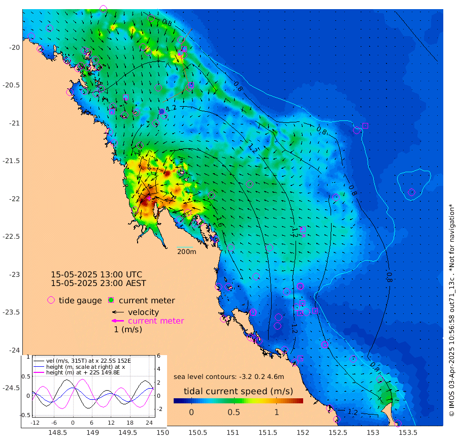 13cm/s -150T +10cm/s rms + 2cm/s 5T. Brampton I 18m 24cm/s 170T +9cm/s rms + 6cm/s 66T. Wigton I 38m 3cm/s -47T +7cm/s rms + 8cm/s 141T. Tern I 47m 16cm/s 176T +7cm/s rms + 12cm/s 54T. N Bugatti Rf 64m 27cm/s -149T +3cm/s rms + 13cm/s 178T. W Bugatti Rf 70m 10cm/s 153T +3cm/s rms + 3cm/s -130T. Creal Rf 69m 7cm/s -163T +7cm/s rms + 4cm/s 2T. North Rf 62m 8cm/s 10T +9cm/s rms + 2cm/s -56T. Cape Capricorn 26m 11cm/s 130T +5cm/s rms + 3cm/s 166T. L Musgrave I 42m 10cm/s 123T +9cm/s rms + 1cm/s -142T. Round Hill Hd 26m 2cm/s -62T +41cm/s rms + 48cm/s 116T. GBRELR 305m 20cm/s -66T +7cm/s rms + 6cm/s 123T. GBRCCH 92m 11cm/s 141T +8cm/s rms + 3cm/s -33T. GBRHIN 45m 8cm/s 97T +4cm/s rms + 2cm/s 41T. GBRHIS 46m 7cm/s 125T +16cm/s rms + 4cm/s -22T. GBROTE 59m 141cm Bell Cay 87cm Holbourne I 152cm Tern I 100cm Bugatti Rf 119cm Creal Rf 88cm White Tip I 114cm North Rf 138cm Rundle I 86cm L Musgrave I 69cm Saumarez Reef 83cm Kennedy Reef 82cm Unnamed Reef No. 2 85cm Abbot Point 90cm Bowen 97cm Tideway Reef 101cm Hayman Island 123cm Square Reef 94cm Double Bay 108cm Molle Island 117cm Cid Harbour 95cm Hook Island 104cm Border Island 105cm Haslewood Island 108cm Shute Harbour 121cm Thomas Island 138cm Credlin Reef 130cm East Repulse Island 139cm Blacksmith Island 128cm Laguna Quays 137cm Carlisle Island (Off) 155cm St. Bees Island 147cm Scawfell Island 159cm Penrith Island 155cm Mackay Outer Harbour 166cm Hay Point 161cm Prudhoe Island 189cm Middle Island (Percy Isles) 132cm Gannet Cay 67cm Elusive Reef 188cm Mcewin Islet 207cm Mumford Island 216cm Osborn Island 226cm Marquis Island 204cm Reef Point 165cm High Peak Island 168cm Port Clinton 164cm Peaked Island 111cm Karamea Bank 150cm Johnson Patch - NW 167cm Rosslyn Bay 166cm Middle Island (Keppel Isles) 186cm Port Alma 115cm Heron Island 119cm One Tree Islet 124cm Polmaise Reef 131cm Tryon Island 122cm Rock Cod Shoal 134cm Gatcombe Head 155cm Gladstone 146cm South Trees (Storm Surge) 111cm Clews Point 106cm Round Hill Head 82cm Lady Elliot Island 83cm Breaksea Spit 107cm Bundaberg (Burnett Heads) 116cm Elliot Heads 68cm Waddy Point (Fraser Island)
