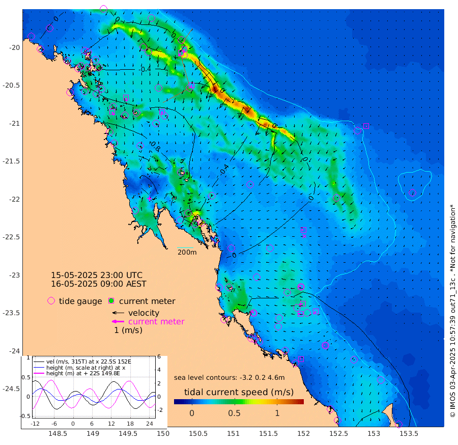 30cm/s 153T +10cm/s rms + 2cm/s 5T. Brampton I 18m 30cm/s 168T +9cm/s rms + 6cm/s 66T. Wigton I 38m 17cm/s -168T +7cm/s rms + 8cm/s 141T. Tern I 47m 30cm/s -160T +7cm/s rms + 12cm/s 54T. N Bugatti Rf 64m 32cm/s -150T +3cm/s rms + 13cm/s 178T. W Bugatti Rf 70m 19cm/s -174T +3cm/s rms + 3cm/s -130T. Creal Rf 69m 20cm/s -73T +7cm/s rms + 4cm/s 2T. North Rf 62m 21cm/s -43T +9cm/s rms + 2cm/s -56T. Cape Capricorn 26m 10cm/s -80T +5cm/s rms + 3cm/s 166T. L Musgrave I 42m 7cm/s -72T +9cm/s rms + 1cm/s -142T. Round Hill Hd 26m 5cm/s 172T +41cm/s rms + 48cm/s 116T. GBRELR 305m 11cm/s -95T +7cm/s rms + 6cm/s 123T. GBRCCH 92m 30cm/s -102T +8cm/s rms + 3cm/s -33T. GBRHIN 45m 18cm/s -98T +4cm/s rms + 2cm/s 41T. GBRHIS 46m 21cm/s -137T +16cm/s rms + 4cm/s -22T. GBROTE 59m -15cm Bell Cay -12cm Holbourne I -48cm Tern I -18cm Bugatti Rf -30cm Creal Rf -9cm White Tip I 16cm North Rf 25cm Rundle I 17cm L Musgrave I 26cm Saumarez Reef -4cm Kennedy Reef 1cm Unnamed Reef No. 2 -7cm Abbot Point -13cm Bowen -30cm Tideway Reef -22cm Hayman Island -36cm Square Reef -28cm Double Bay -41cm Molle Island -25cm Cid Harbour -27cm Hook Island -32cm Border Island -28cm Haslewood Island -33cm Shute Harbour -50cm Thomas Island -41cm Credlin Reef -49cm East Repulse Island -47cm Blacksmith Island -63cm Laguna Quays -45cm Carlisle Island (Off) -41cm St. Bees Island -42cm Scawfell Island -52cm Penrith Island -70cm Mackay Outer Harbour -73cm Hay Point -71cm Prudhoe Island -53cm Middle Island (Percy Isles) -14cm Gannet Cay 4cm Elusive Reef -135cm Mcewin Islet -36cm Mumford Island -50cm Osborn Island -45cm Marquis Island -39cm Reef Point -22cm High Peak Island -5cm Port Clinton 13cm Peaked Island 22cm Karamea Bank 12cm Johnson Patch - NW 17cm Rosslyn Bay 22cm Middle Island (Keppel Isles) 17cm Port Alma 22cm Heron Island 17cm One Tree Islet 22cm Polmaise Reef 13cm Tryon Island 27cm Rock Cod Shoal 21cm Gatcombe Head 22cm Gladstone 26cm South Trees (Storm Surge) 25cm Clews Point 24cm Round Hill Head 18cm Lady Elliot Island 10cm Breaksea Spit 31cm Bundaberg (Burnett Heads) 39cm Elliot Heads 5cm Waddy Point (Fraser Island)